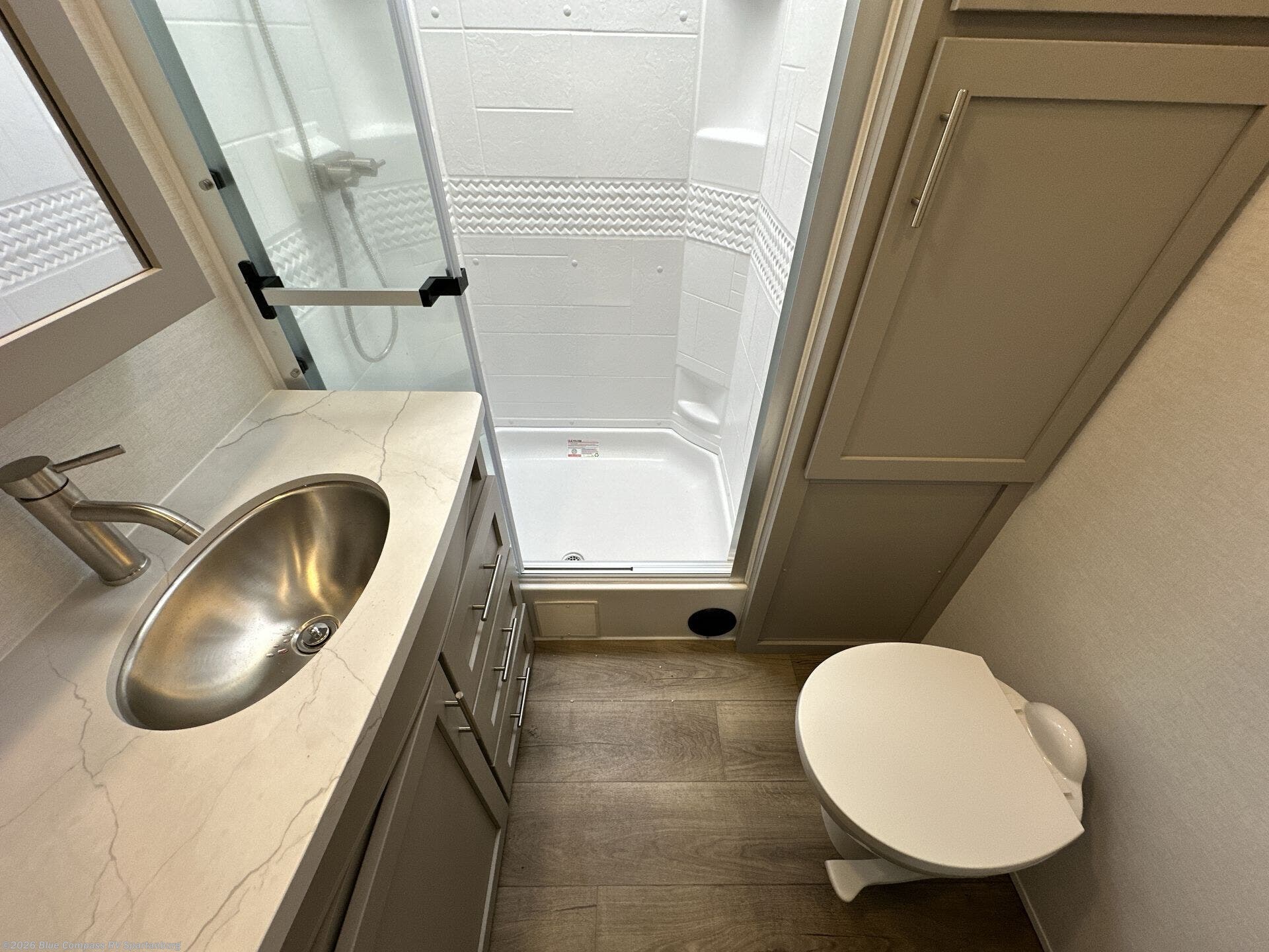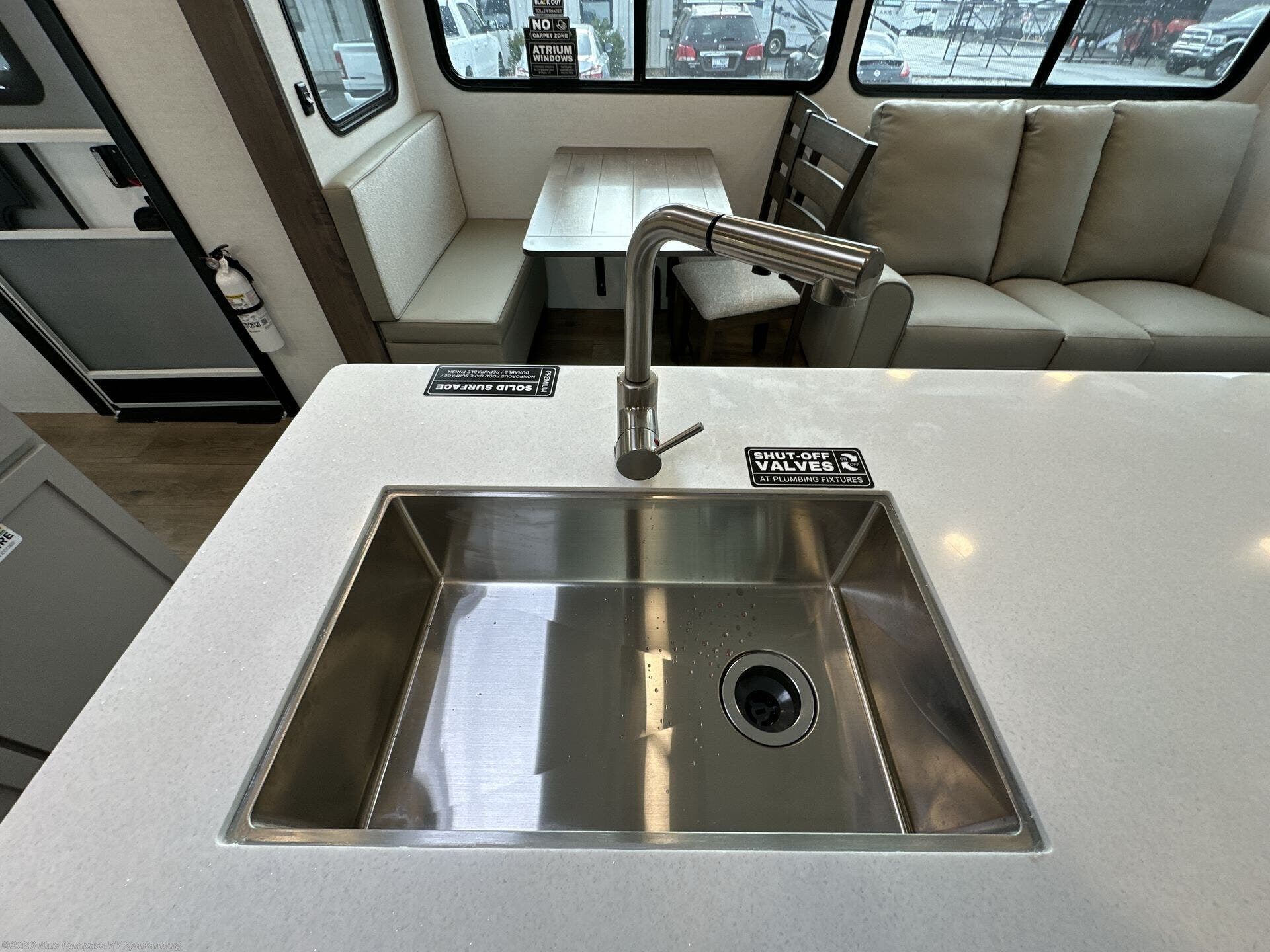 With any Avenue fifth wheel or travel trailer by Alliance RV, you will enjoy more interior space provided by the 8' 5" wide-body construction, and a long list of luxury features. Each is built with Azdel composite sidewalls both inside and out, along with a PVC roof for added strength. There are innovative storage solutions that include hidden storage behind the TV, within end tables and ottomans, and more. Since these units feature no carpet throughout, cleaning will be easier than ever, and there are flush floor slides throughout for seamless living spaces. The Avenue also comes with the OTG Solar Package with a 400 watt solar panel, inverter prep, multiple outlets, and more to keep you charged up!