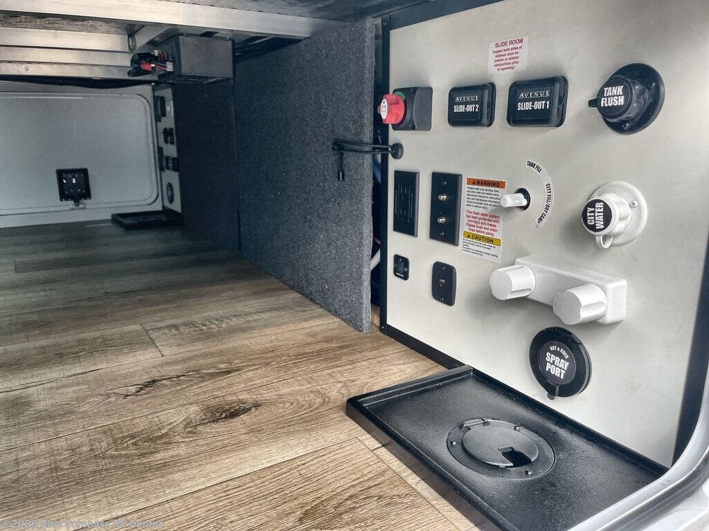 With any Avenue fifth wheel or travel trailer by Alliance RV, you will enjoy more interior space provided by the 8' 5" wide-body construction, and a long list of luxury features. Each is built with Azdel composite sidewalls both inside and out, along with a PVC roof for added strength. There are innovative storage solutions that include hidden storage behind the TV, within end tables and ottomans, and more. Since these units feature no carpet throughout, cleaning will be easier than ever, and there are flush floor slides throughout for seamless living spaces. The Avenue also comes with the OTG Solar Package with a 400 watt solar panel, inverter prep, multiple outlets, and more to keep you charged up!
