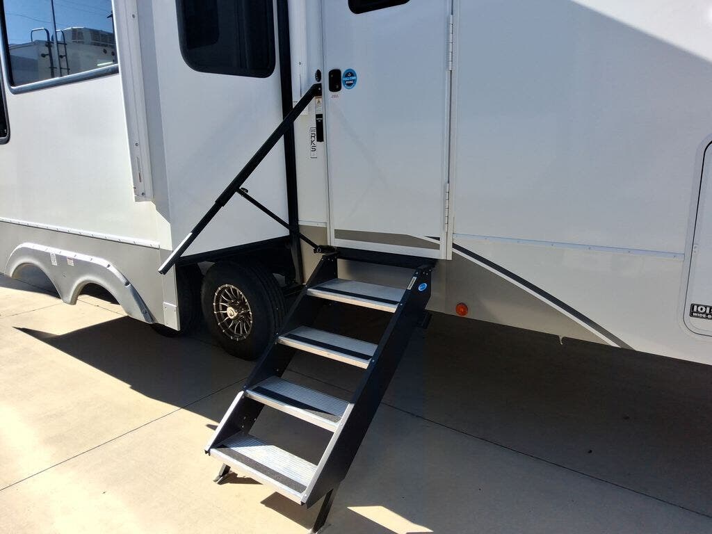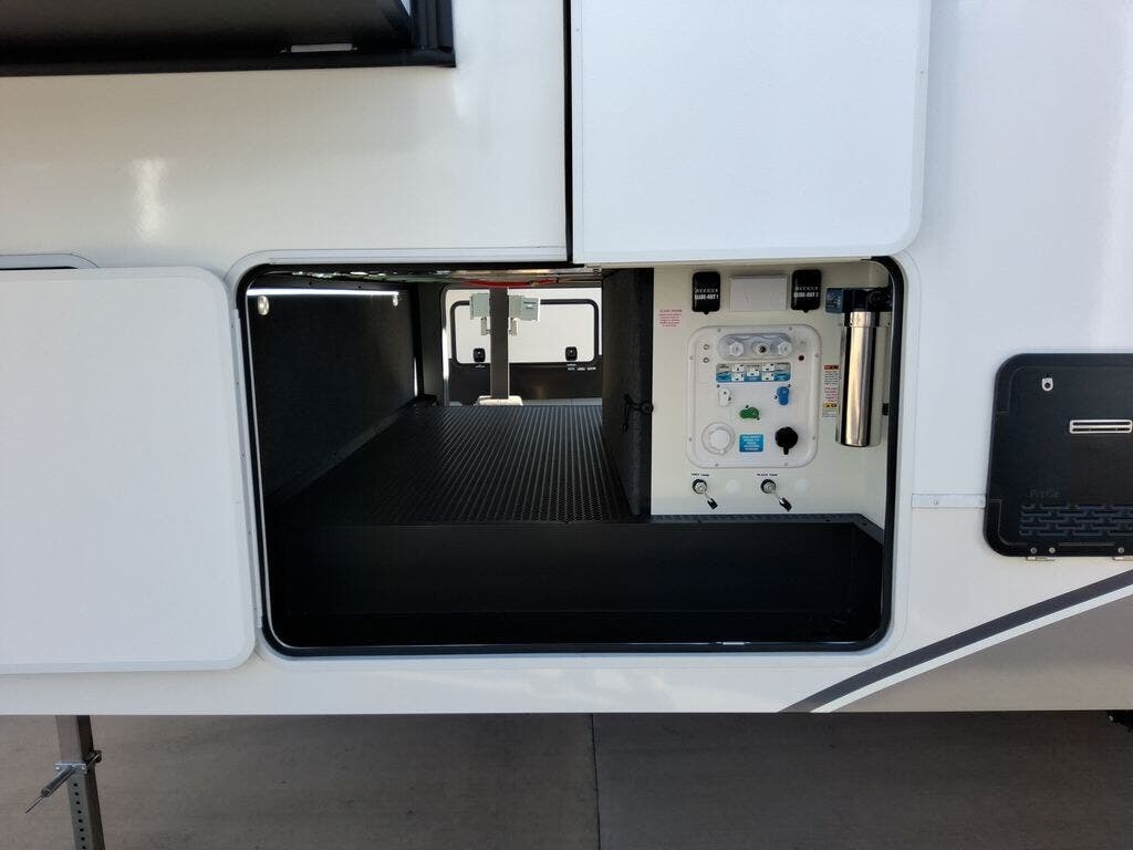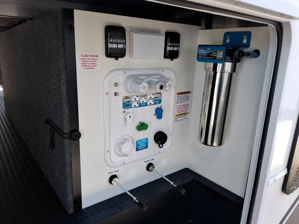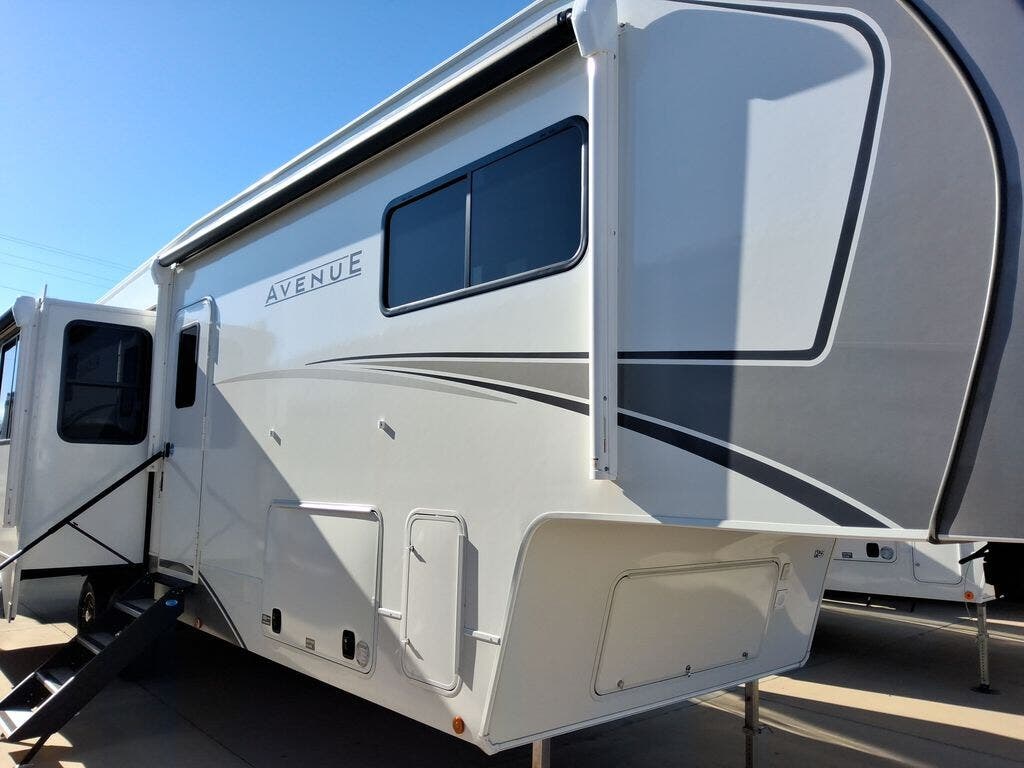 With any Avenue fifth wheel or travel trailer by Alliance RV, you will enjoy more interior space provided by the 8' 5" wide-body construction, and a long list of luxury features. Each is built with Azdel composite sidewalls both inside and out, along with a PVC roof for added strength. There are innovative storage solutions that include hidden storage behind the TV, within end tables and ottomans, and more. Since these units feature no carpet throughout, cleaning will be easier than ever, and there are flush floor slides throughout for seamless living spaces. The Avenue also comes with the OTG Solar Package with a 400 watt solar panel, inverter prep, multiple outlets, and more to keep you charged up!