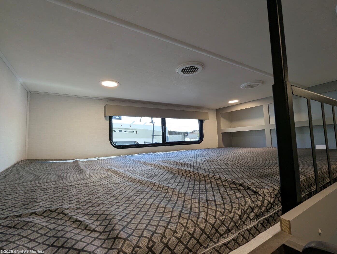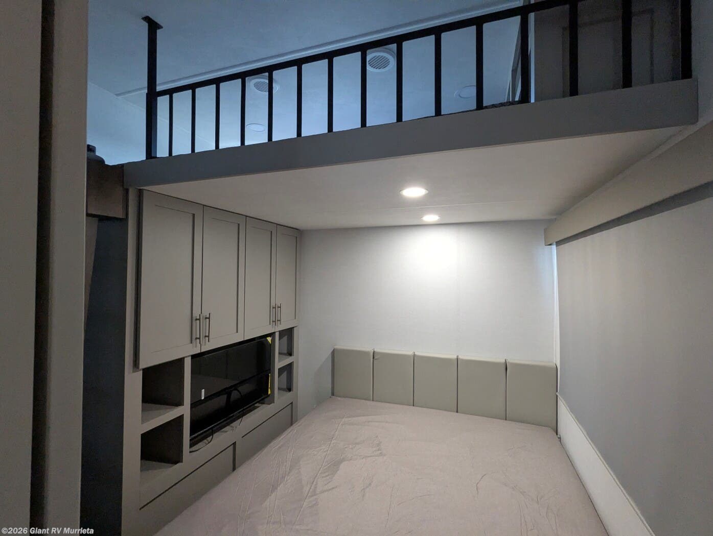 - Family Loft Bunkhouse: The 2026 Alliance RV Avenue includes a rear 54"x74" loft bed over a 60"x70" lower bed with storage and TV, plus a private half bath with outdoor entry, perfect for kids or guests in the 38DBL.