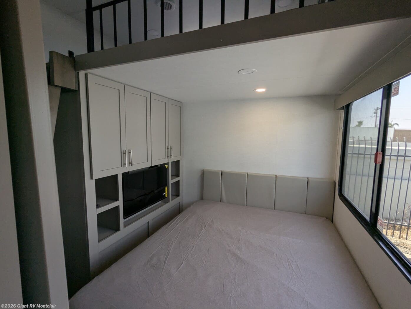 - Rear Loft & Bunk: 54" x 74" loft bed above a 60" x 70" bed, with a half bath and private entry for family-friendly sleeping.