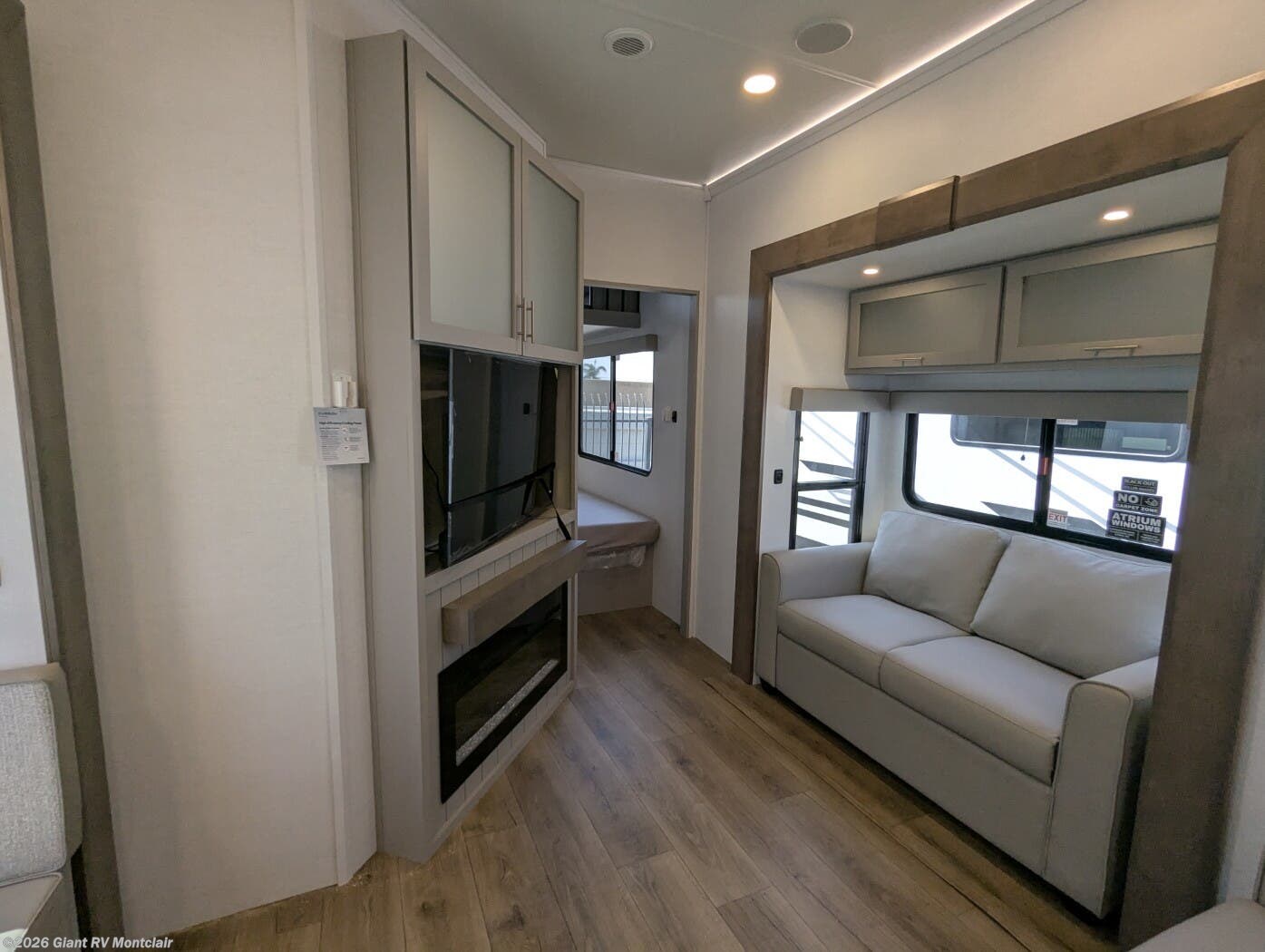 - Spacious Living Area: Dual recliner theater seating, 50" HDTV, and floating dinette for a cozy, residential feel.