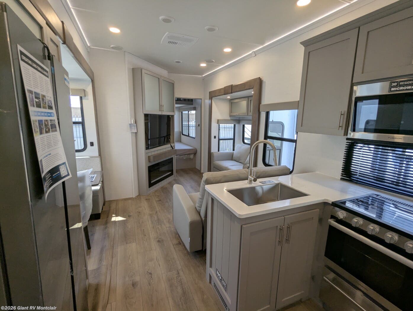 - Gourmet Kitchen: Equipped with a 16 cu. ft. 12V refrigerator, 3-burner cooktop, and outdoor kitchen with griddle.