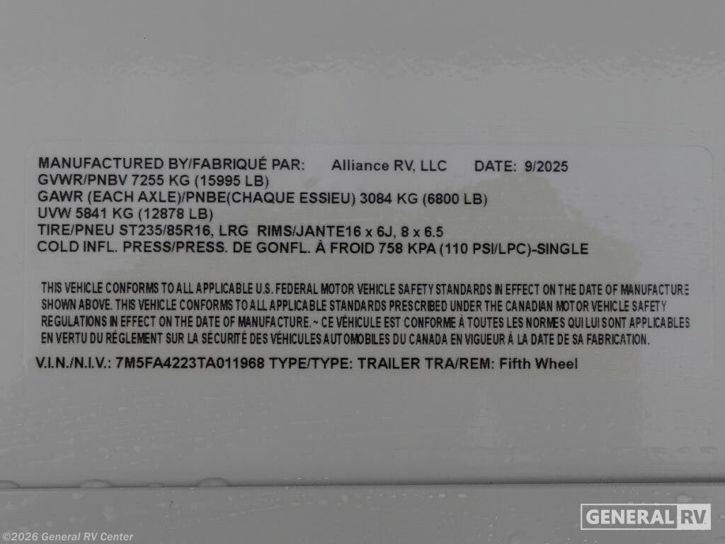Looking to buy a 2026 Alliance RV Avenue Fifth Wheel RV?