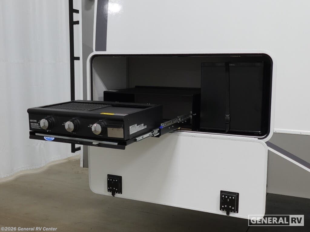 Experience the ultimate in luxury and versatility with the 2026 Alliance RV Avenue 38DBL. This exceptional fifth wheel is designed to accommodate up to ten guests comfortably, making it the perfect choice for family adventures and gatherings with friends. Its spacious interior features a variety of sleeping arrangements, including a king bed in the master suite, a cozy queen bed, and two double beds, ensuring everyone has their own space to relax. The convertible seating options add even more flexibility, allowing the living area to transform as needed. The Avenue 38DBL boasts a thoughtfully designed floorplan with a center kitchen and living area, providing a welcoming space for cooking and entertainment. The full-size electric refrigerator and three-burner cooktop offer all the conveniences of home, while the dual lavatory setup in the bath area ensures privacy and efficiency. With a total of three slides, the interior feels open and inviting, and the powered retractable awnings provide shade and comfort outdoors. The ample storage and loft area make it ideal for extended trips, while the durable Goodyear Endurance tires ensure a smooth journey. Visit your nearest General RV Dealership to explore this remarkable RV and start planning your next adventure!