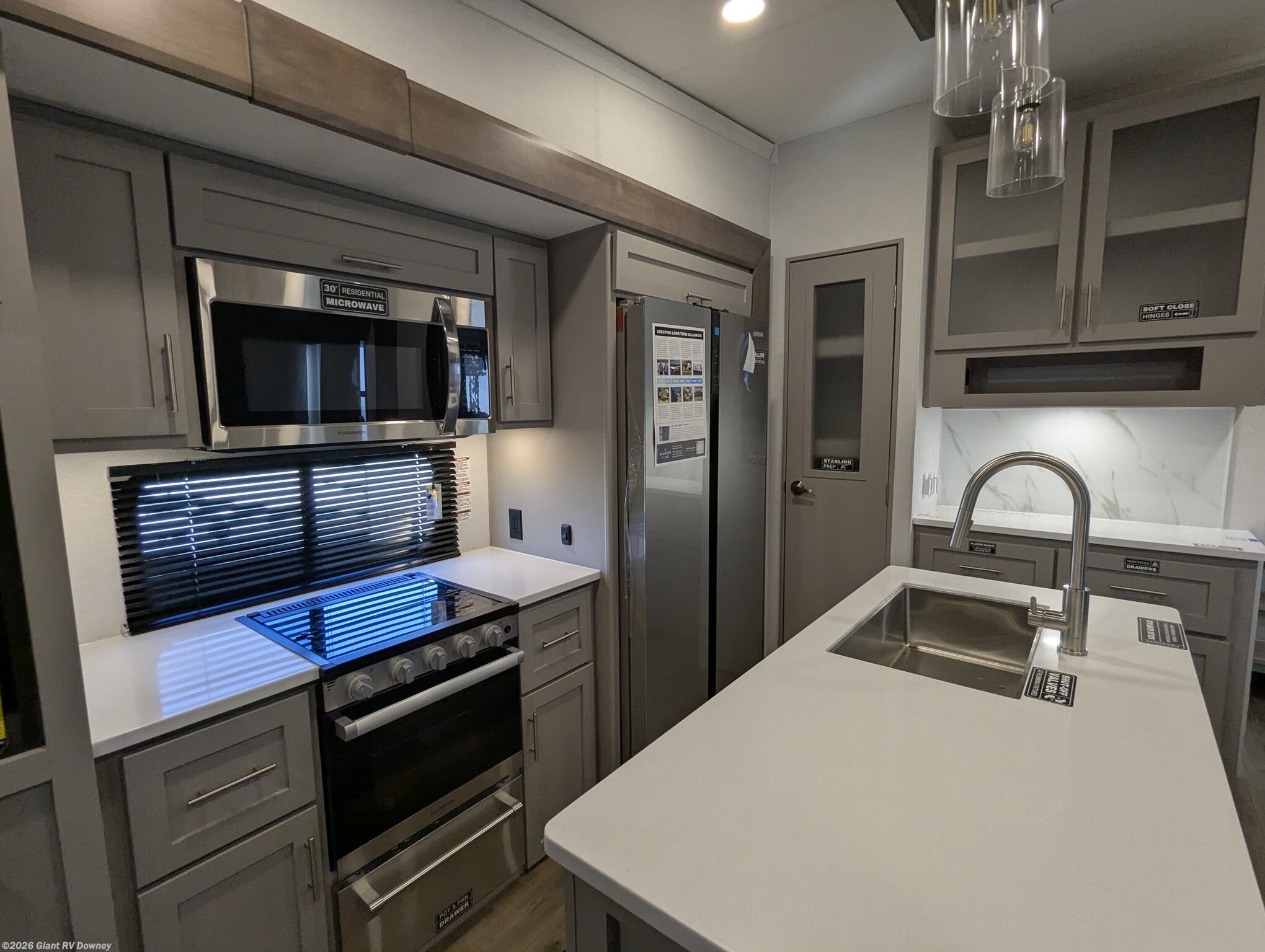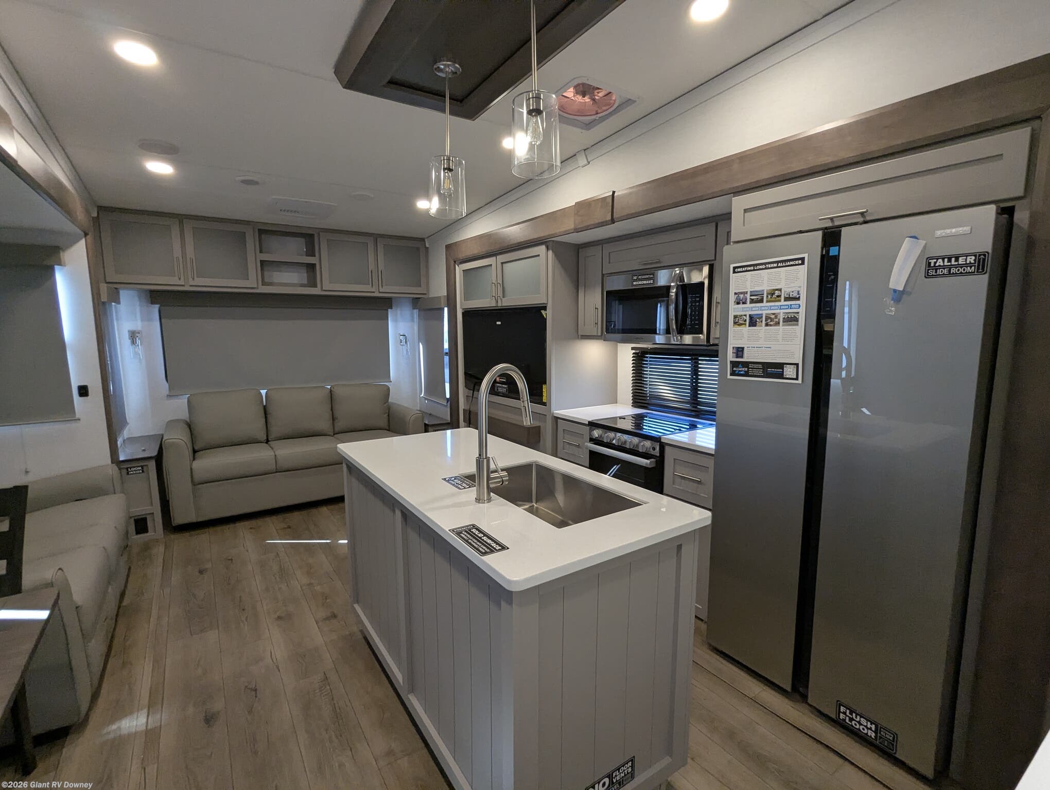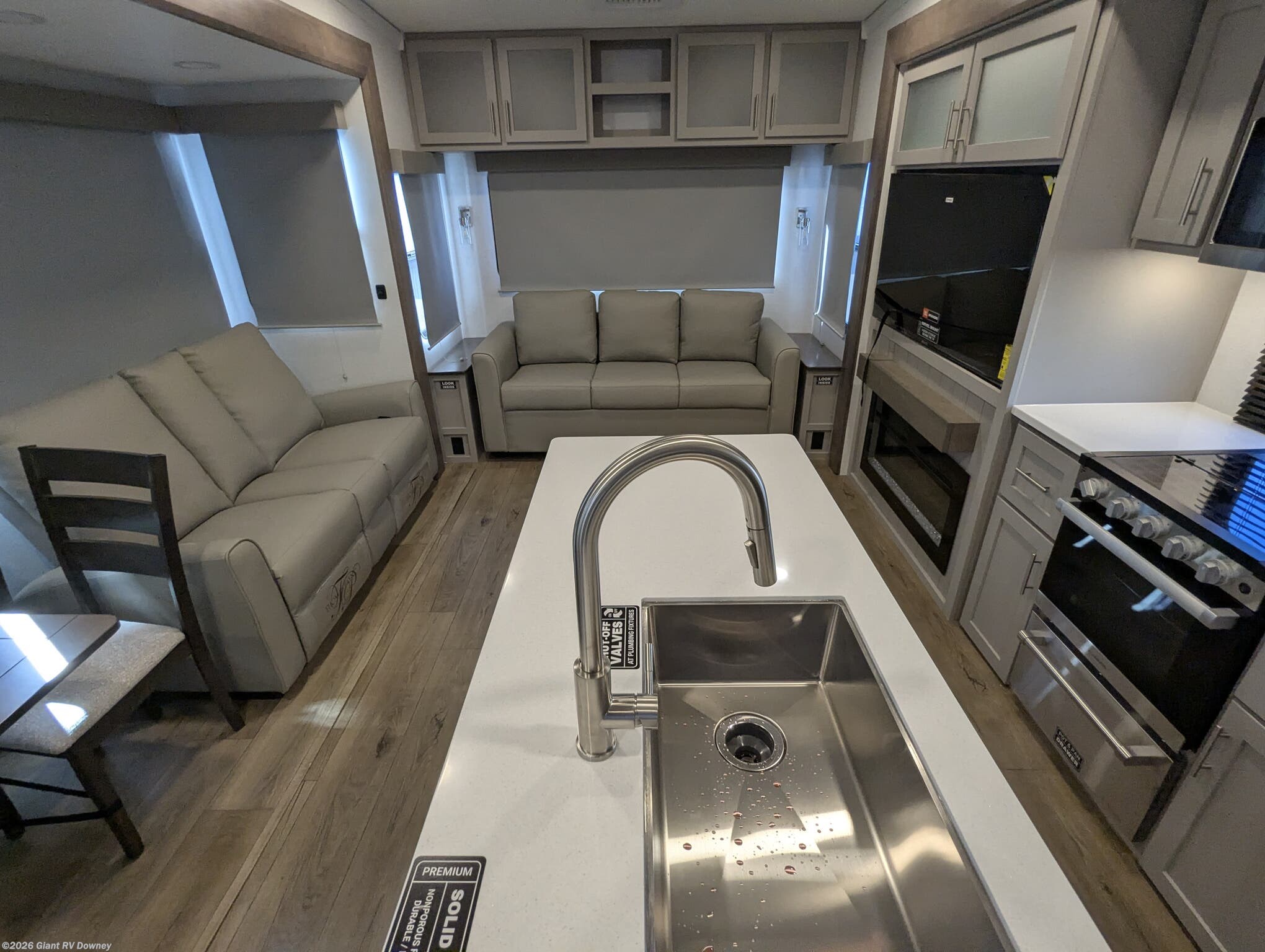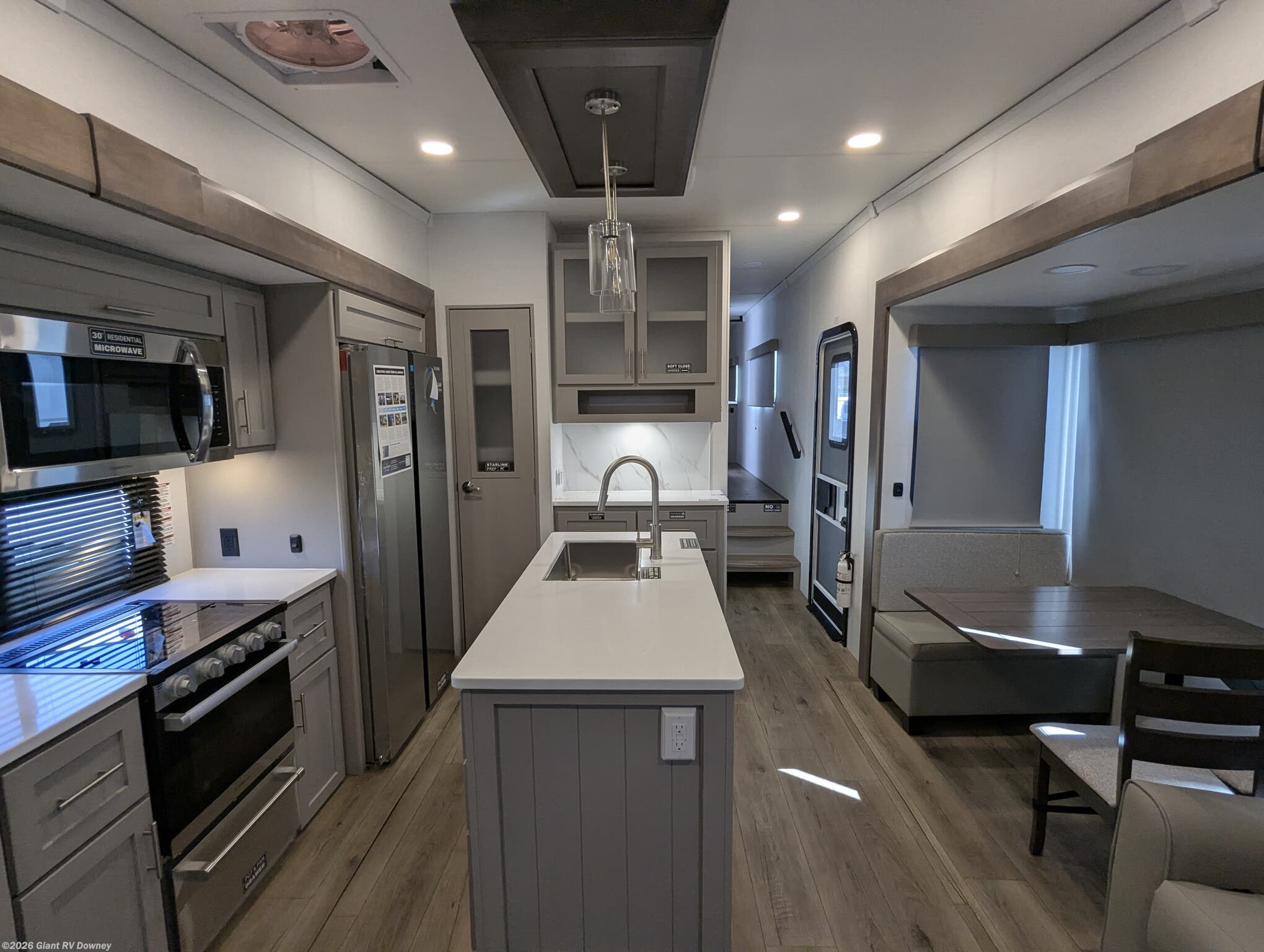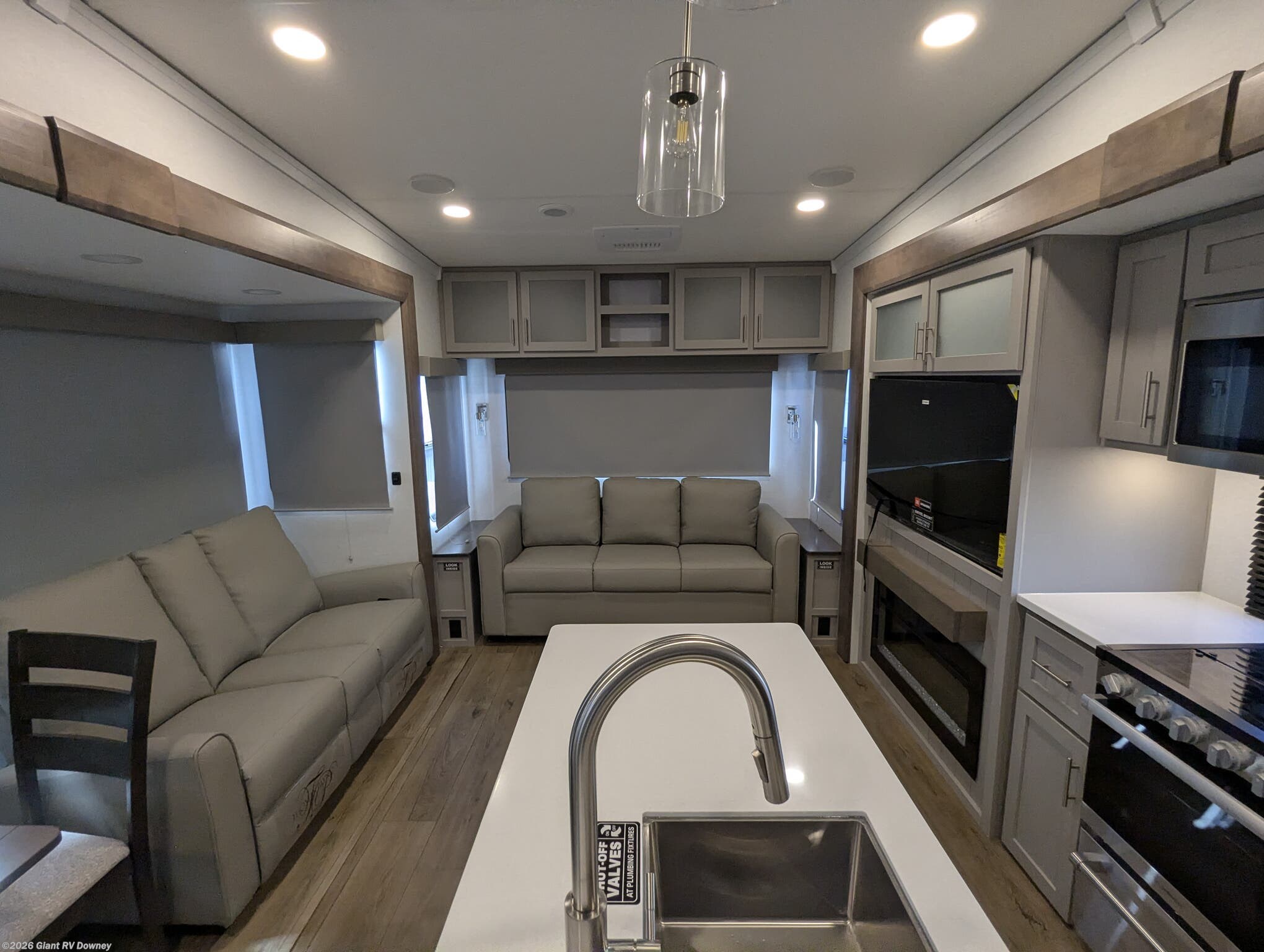 Discover upscale comfort and smart design with the 2026 Alliance RV Avenue 39MBR, a premium fifth-wheel travel trailer built for families, full-time travelers, or luxury seekers on the road. This spacious model features a mid-bonus room (MBR) that adapts to your lifestyle—office, guest space, or extra storage—without sacrificing premium amenities. The rear living layout offers theater seating and a sleeper sofa facing an entertainment center, while the front private bedroom ensures restful nights away from the hustle. With wide-body construction and modern touches throughout, the Avenue 39MBR delivers both flexibility and comfort in one exceptional package.