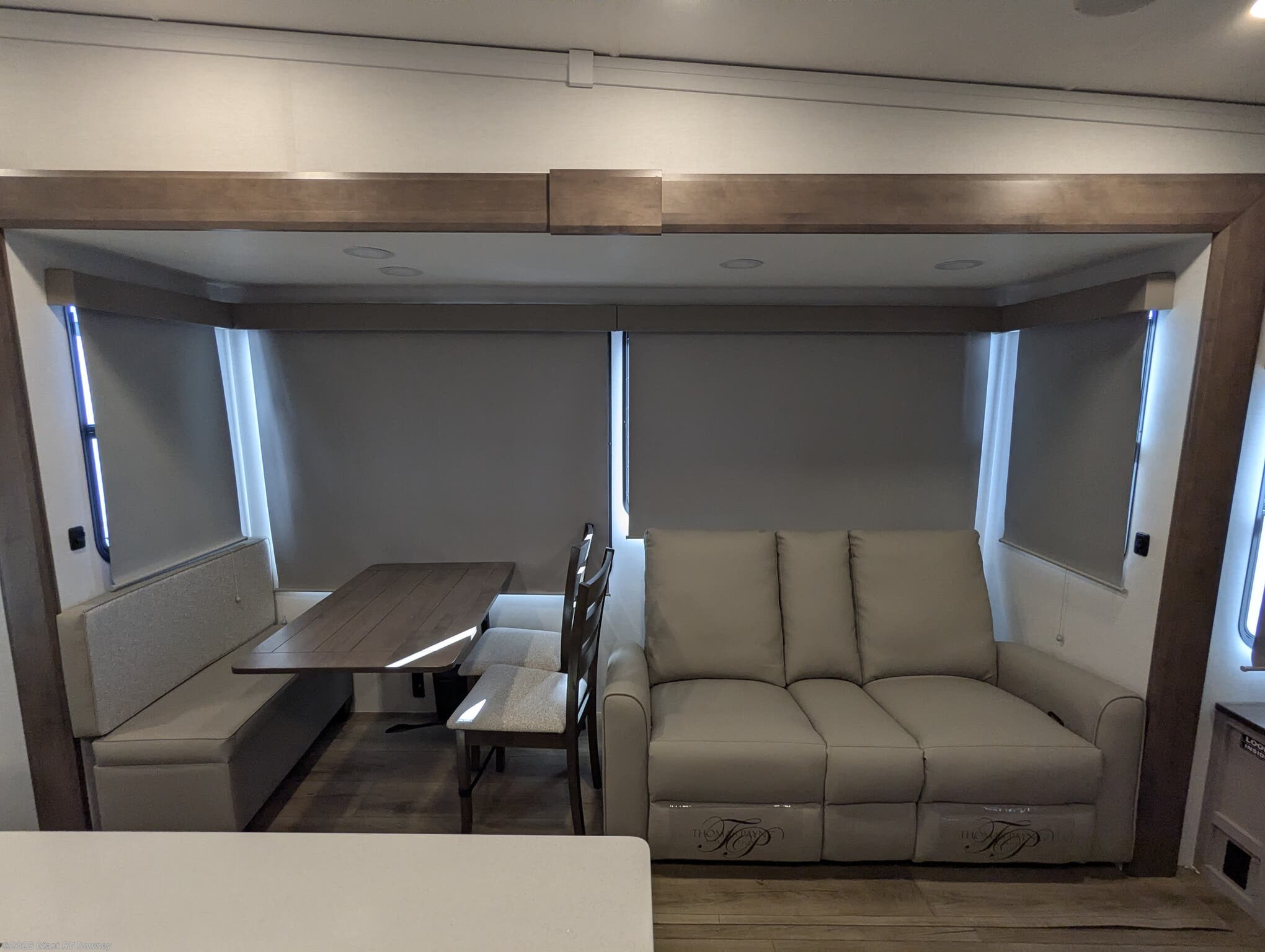 - Rear Living Layout: Comfortable lounge area with theater seats and sleeper sofa for relaxation or socializing.