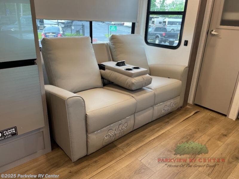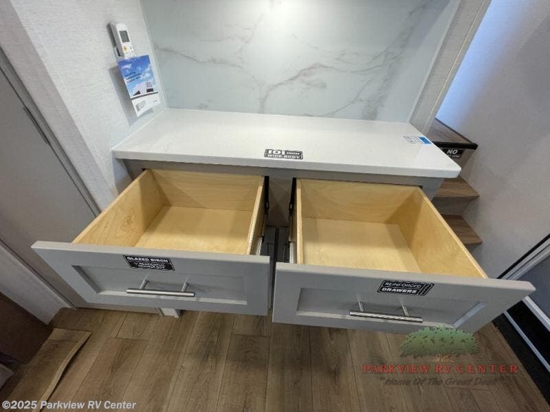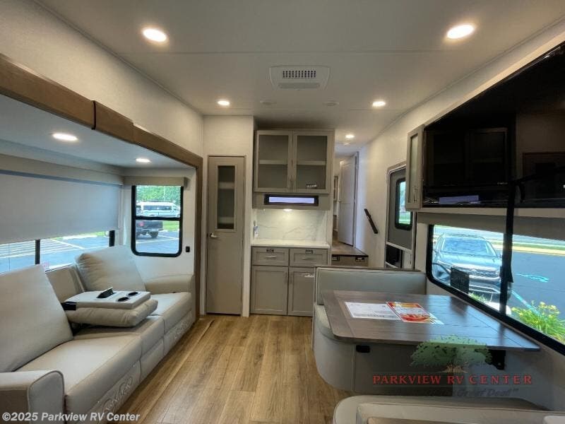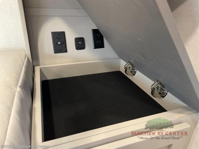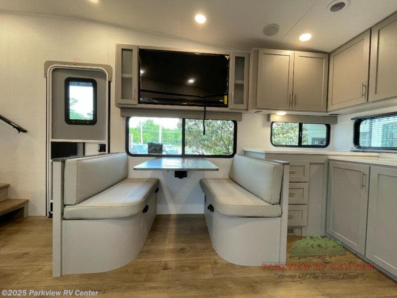 A benchmark chassis creates a space saver upper deck with each one of these Avenue All-Access fifth wheels by Alliance RV! The 101 in. wide-body construction gives you more room to walk around and the flush slide out floors throughout prevent any tripping. There are Azdel composite sidewalls inside and out, and a seamless fully walkable PVC roof for extreme durability and zero maintenance. You are sure to love no carpet throughout making each Avenue All-Access easy to clean and allergen free, not to mention pet friendly. You can maximize your space throughout with innovative storage solutions like the hidden storage behind the TV, inside the end tables, ottoman, and dinette chairs. These units also include the OTG Solar Package with a 200 watt solar panel, 15 amp MPPT charger, multiple outlets, and more to keep you powered up!