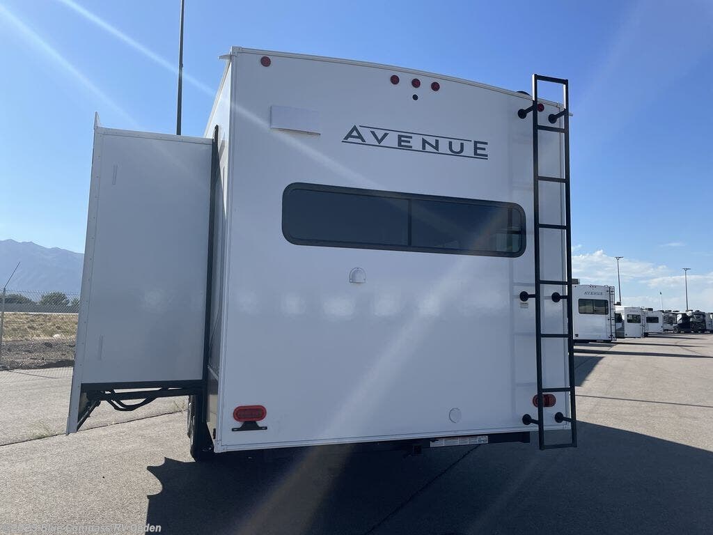 A benchmark chassis creates a space saver upper deck with each one of these Avenue All-Access fifth wheels by Alliance RV! The 101 in. wide-body construction gives you more room to walk around and the flush slide out floors throughout prevent any tripping. There are Azdel composite sidewalls inside and out, and a seamless fully walkable PVC roof for extreme durability and zero maintenance. You are sure to love no carpet throughout making each Avenue All-Access easy to clean and allergen free, not to mention pet friendly. You can maximize your space throughout with innovative storage solutions like the hidden storage behind the TV, inside the end tables, ottoman, and dinette chairs. These units also include the OTG Solar Package with a 200 watt solar panel, 15 amp MPPT charger, multiple outlets, and more to keep you powered up!