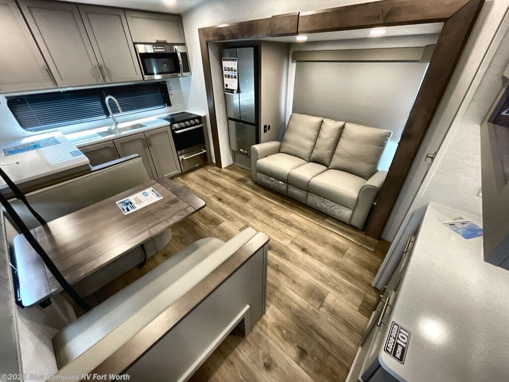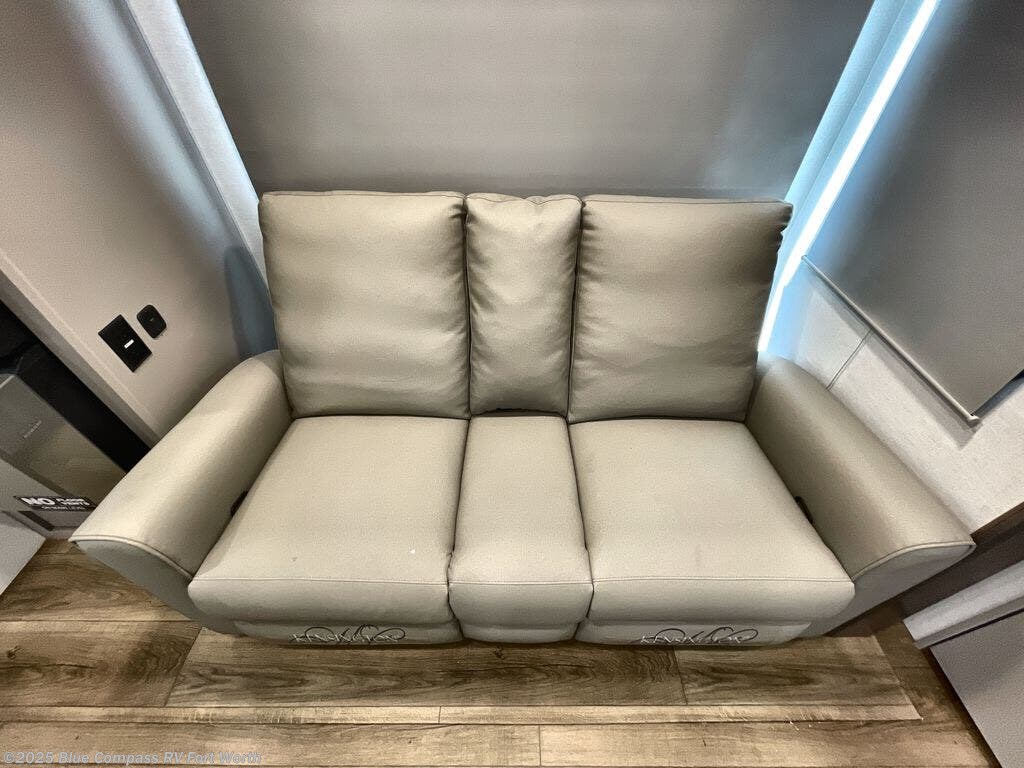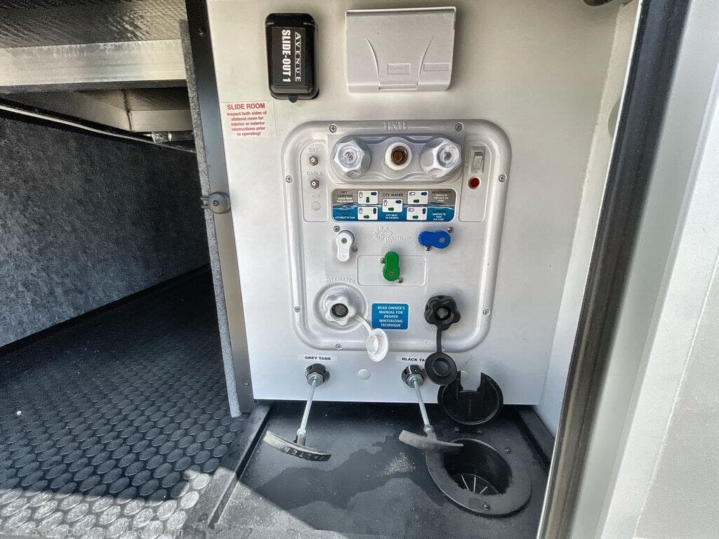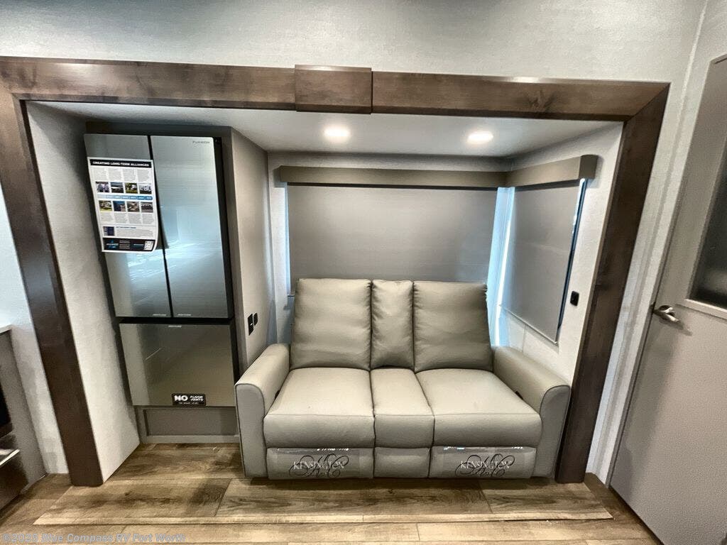 A benchmark chassis creates a space saver upper deck with each one of these Avenue All-Access fifth wheels by Alliance RV! The 101 in. wide-body construction gives you more room to walk around and the flush slide out floors throughout prevent any tripping. There are Azdel composite sidewalls inside and out, and a seamless fully walkable PVC roof for extreme durability and zero maintenance. You are sure to love no carpet throughout making each Avenue All-Access easy to clean and allergen free, not to mention pet friendly. You can maximize your space throughout with innovative storage solutions like the hidden storage behind the TV, inside the end tables, ottoman, and dinette chairs. These units also include the OTG Solar Package with a 200 watt solar panel, 15 amp MPPT charger, multiple outlets, and more to keep you powered up!