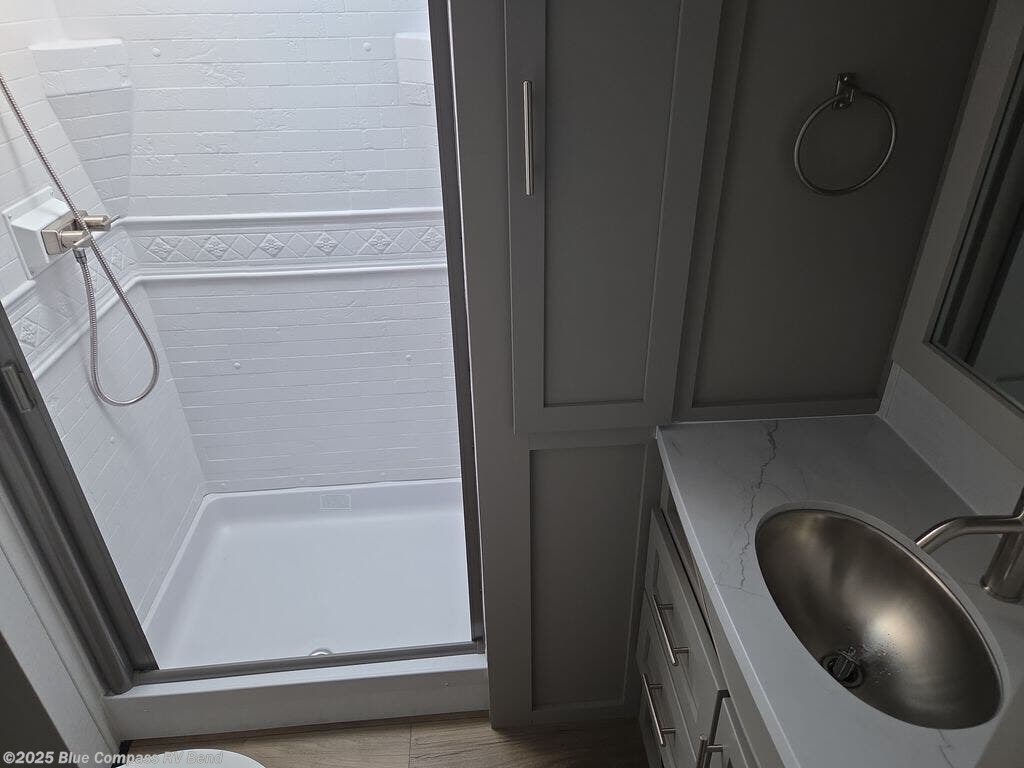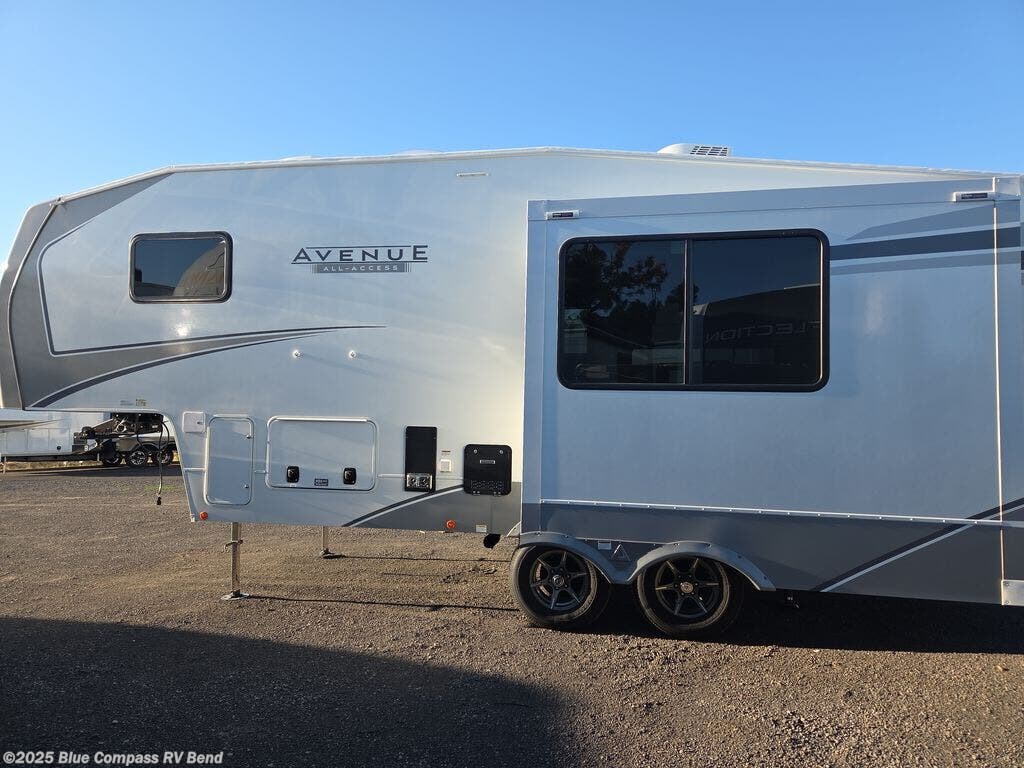 A benchmark chassis creates a space saver upper deck with each one of these Avenue All-Access fifth wheels by Alliance RV! The 101 in. wide-body construction gives you more room to walk around and the flush slide out floors throughout prevent any tripping. There are Azdel composite sidewalls inside and out, and a seamless fully walkable PVC roof for extreme durability and zero maintenance. You are sure to love no carpet throughout making each Avenue All-Access easy to clean and allergen free, not to mention pet friendly. You can maximize your space throughout with innovative storage solutions like the hidden storage behind the TV, inside the end tables, ottoman, and dinette chairs. These units also include the OTG Solar Package with a 200 watt solar panel, 15 amp MPPT charger, multiple outlets, and more to keep you powered up!