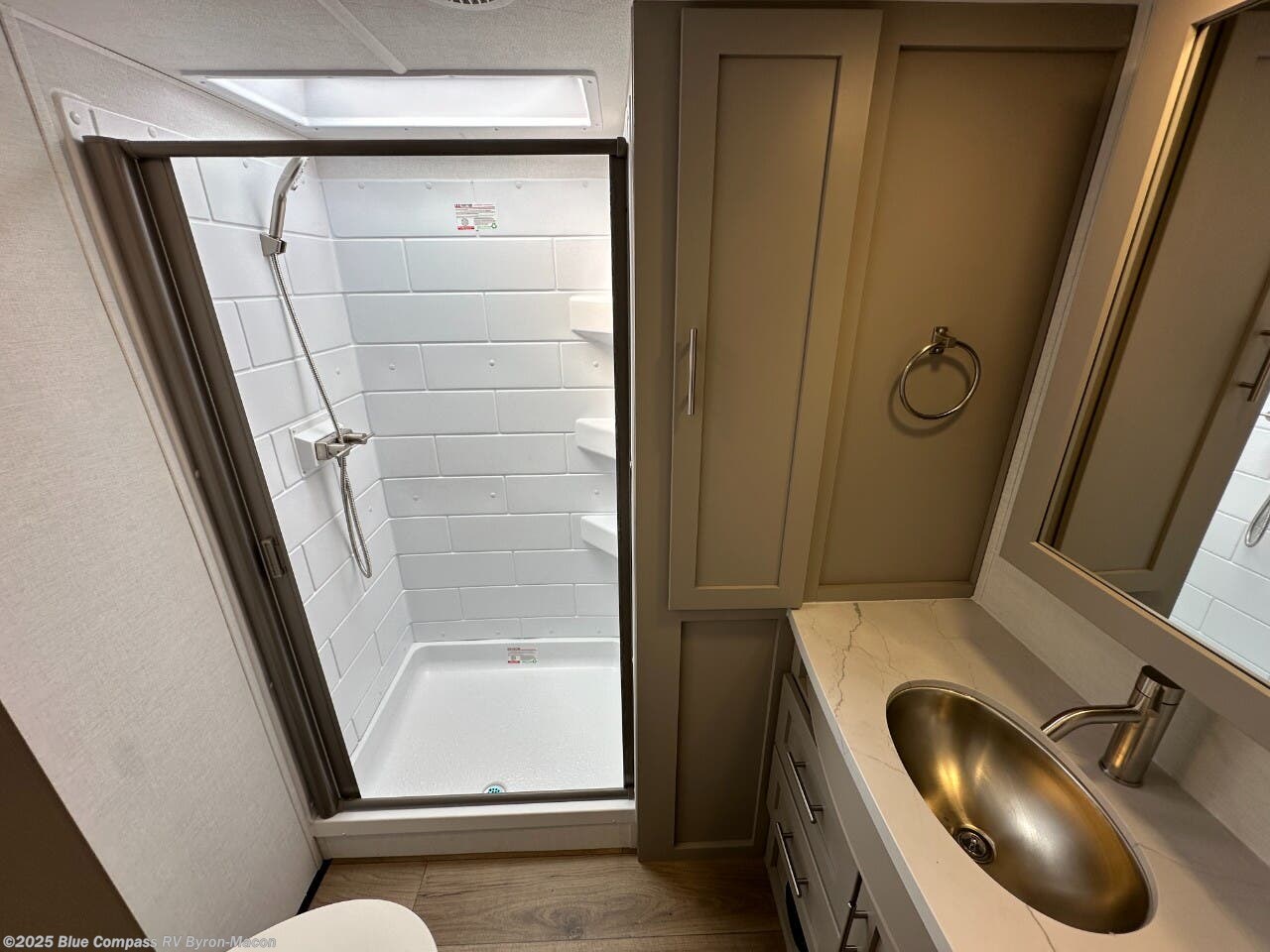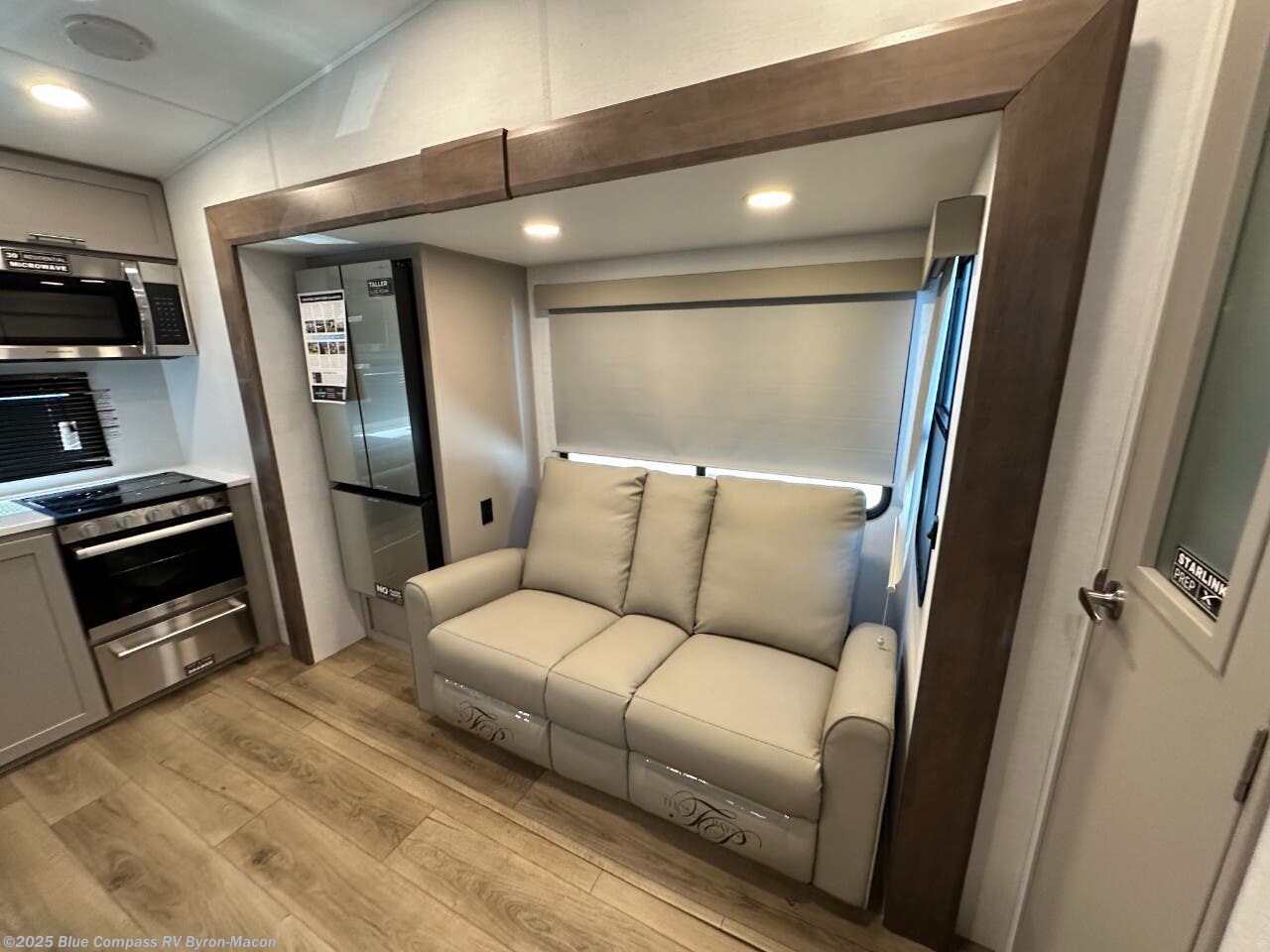 A benchmark chassis creates a space saver upper deck with each one of these Avenue All-Access fifth wheels by Alliance RV! The 101 in. wide-body construction gives you more room to walk around and the flush slide out floors throughout prevent any tripping. There are Azdel composite sidewalls inside and out, and a seamless fully walkable PVC roof for extreme durability and zero maintenance. You are sure to love no carpet throughout making each Avenue All-Access easy to clean and allergen free, not to mention pet friendly. You can maximize your space throughout with innovative storage solutions like the hidden storage behind the TV, inside the end tables, ottoman, and dinette chairs. These units also include the OTG Solar Package with a 200 watt solar panel, 15 amp MPPT charger, multiple outlets, and more to keep you powered up!