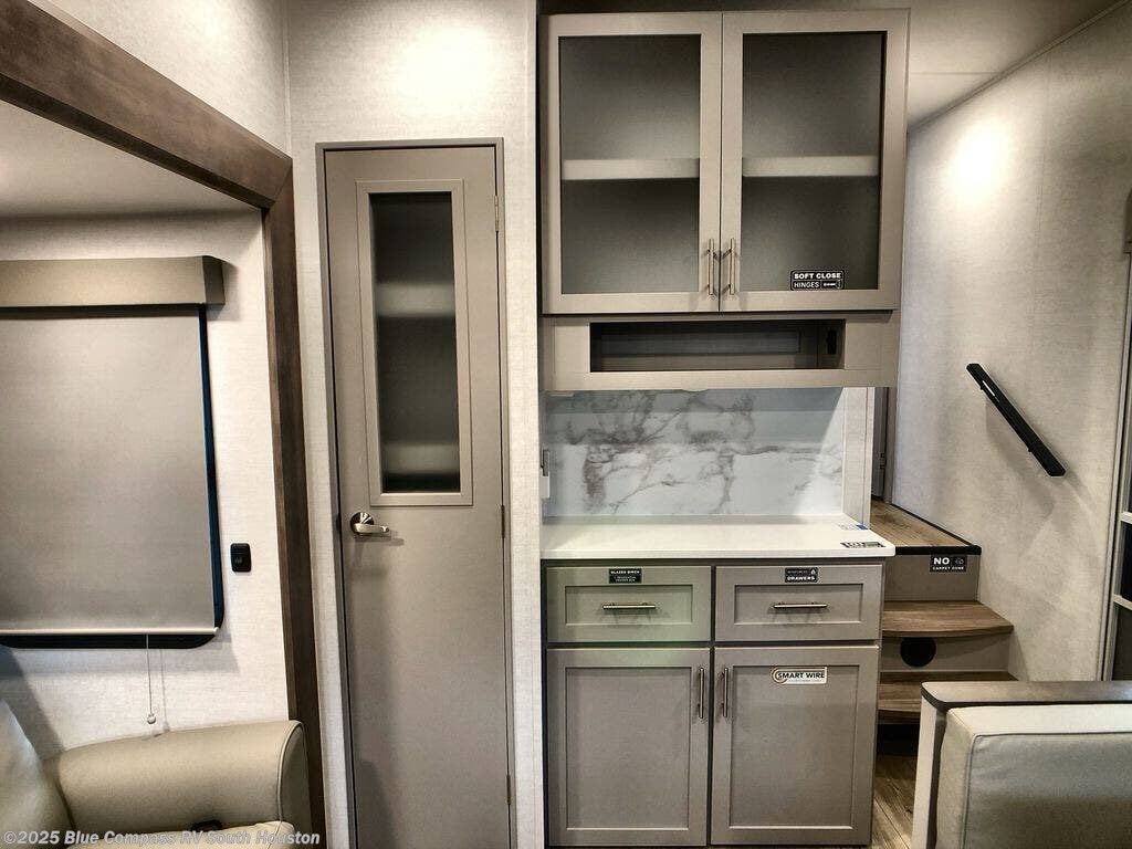 A benchmark chassis creates a space saver upper deck with each one of these Avenue All-Access fifth wheels by Alliance RV! The 101 in. wide-body construction gives you more room to walk around and the flush slide out floors throughout prevent any tripping. There are composite sidewalls inside and out, and PVC roof for extreme durability. You are sure to love no carpet throughout making each Avenue All-Access easy to clean and allergen free, not to mention pet friendly. You can maximize your space throughout with innovative storage solutions like the hidden storage behind the TV, inside the end tables, ottoman, and dinette chairs. These units also include the OTG Solar Package with a 200 watt solar panel, 15 amp MPPT charger, multiple outlets, and more to keep you powered up!