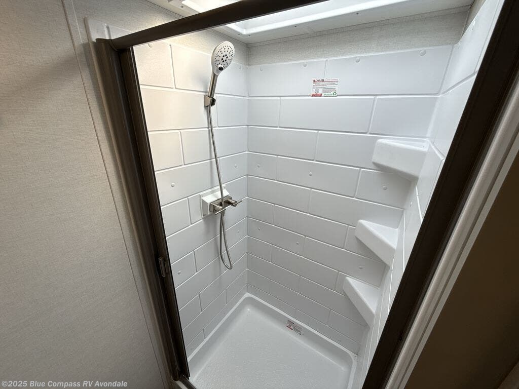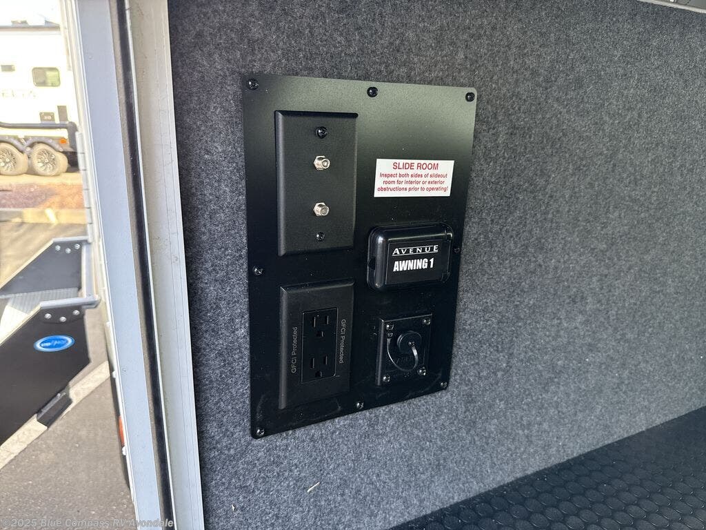 A benchmark chassis creates a space saver upper deck with each one of these Avenue All-Access fifth wheels by Alliance RV! The 101 in. wide-body construction gives you more room to walk around and the flush slide out floors throughout prevent any tripping. There are composite sidewalls inside and out, and PVC roof for extreme durability. You are sure to love no carpet throughout making each Avenue All-Access easy to clean and allergen free, not to mention pet friendly. You can maximize your space throughout with innovative storage solutions like the hidden storage behind the TV, inside the end tables, ottoman, and dinette chairs. These units also include the OTG Solar Package with a 200 watt solar panel, 15 amp MPPT charger, multiple outlets, and more to keep you powered up!