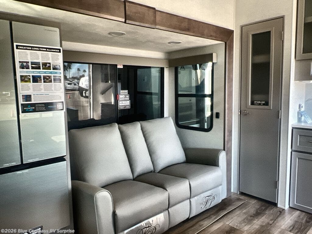 A benchmark chassis creates a space saver upper deck with each one of these Avenue All-Access fifth wheels by Alliance RV! The 101 in. wide-body construction gives you more room to walk around and the flush slide out floors throughout prevent any tripping. There are composite sidewalls inside and out, and PVC roof for extreme durability. You are sure to love no carpet throughout making each Avenue All-Access easy to clean and allergen free, not to mention pet friendly. You can maximize your space throughout with innovative storage solutions like the hidden storage behind the TV, inside the end tables, ottoman, and dinette chairs. These units also include the OTG Solar Package with a 200 watt solar panel, 15 amp MPPT charger, multiple outlets, and more to keep you powered up!