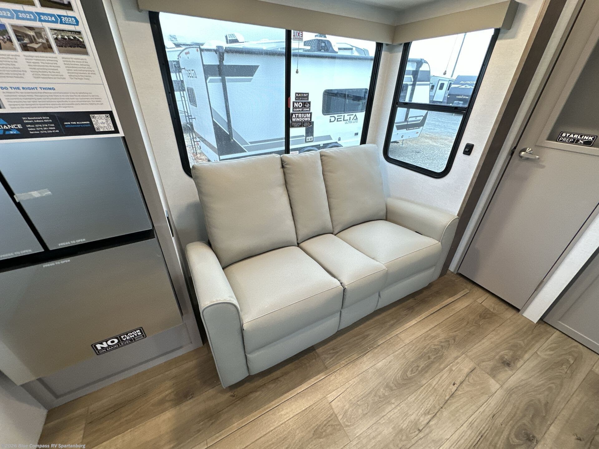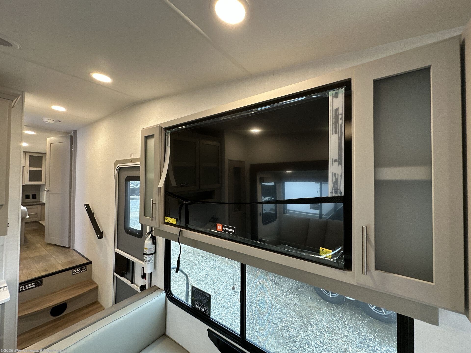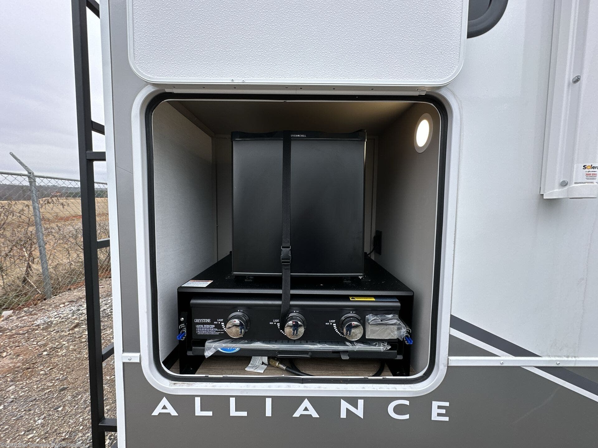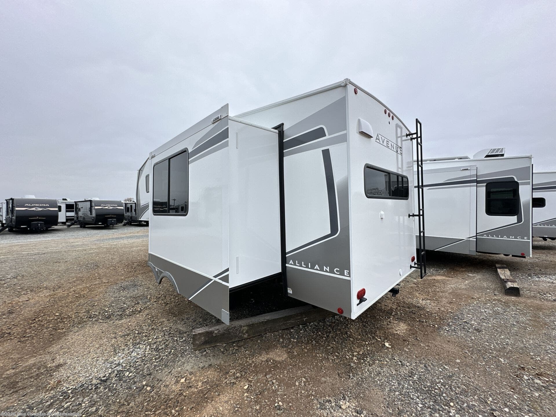 A benchmark chassis creates a space saver upper deck with each one of these Avenue All-Access fifth wheels by Alliance RV! The 101 in. wide-body construction gives you more room to walk around and the flush slide out floors throughout prevent any tripping. There are composite sidewalls inside and out, and PVC roof for extreme durability. You are sure to love no carpet throughout making each Avenue All-Access easy to clean and allergen free, not to mention pet friendly. You can maximize your space throughout with innovative storage solutions like the hidden storage behind the TV, inside the end tables, ottoman, and dinette chairs. These units also include the OTG Solar Package with a 200 watt solar panel, 15 amp MPPT charger, multiple outlets, and more to keep you powered up!