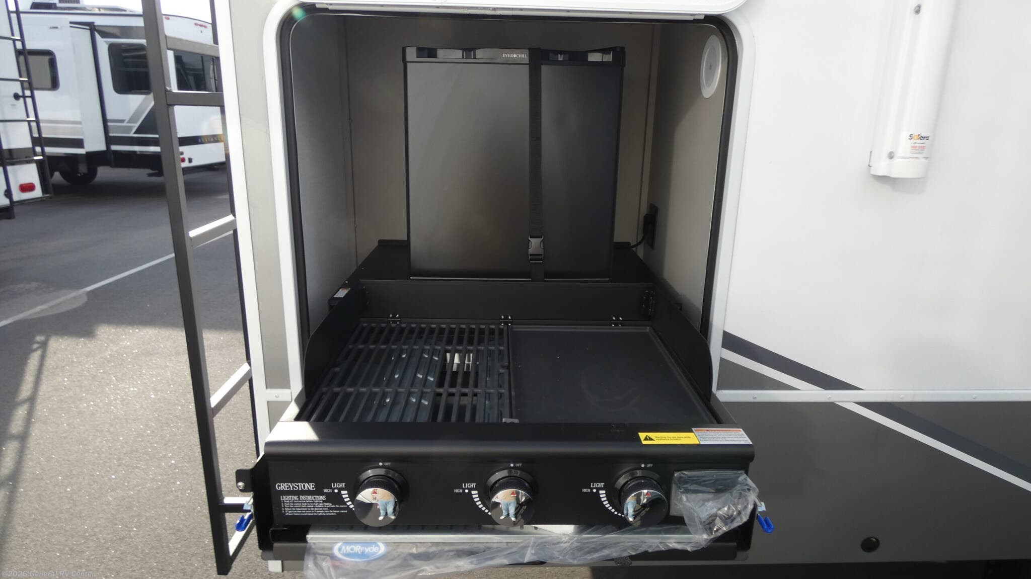 Alliance RV Avenue All-Access fifth wheel 23ML highlights: Rear Kitchen Spacious Full Bath Queen Bed Exterior Griddle Grill and Refrigerator This fifth wheel is ready for adventure when you are! Once you arrive at the campground, you can put out the 16' awning, then start lunch on the exterior griddle. A booth dinette and theater sofa provide seating space inside, and there is a 50" Class HDTV to enjoy movies. The chef will also love the interior kitchen with its ample counter space, and there is plenty of storage with a hutch/pantry, second pantry, and 10 cu. ft. 12V refrigerator. Freshen up in the full bath before heading off to bed in the front private bedroom. Here, you'll find a queen bed, dual nightstands and overhead storage, plus a wardrobe with washer and dryer prep if you choose to add those appliances! A benchmark chassis creates a space saver upper deck with each one of these Avenue All-Access fifth wheels by Alliance RV! The 101 in. wide-body construction gives you more room to walk around and the flush slide out floors throughout prevent any tripping. There are Azdel composite sidewalls inside and out, and a seamless fully walkable PVC roof for extreme durability and zero maintenance. You are sure to love no carpet throughout making each Avenue All-Access easy to clean and allergen free, not to mention pet friendly. You can maximize your space throughout with innovative storage solutions like the hidden storage behind the TV, inside the end tables, ottoman, and dinette chairs. These units also include the OTG Solar Package with a 200 watt solar panel, 15 amp MPPT charger, multiple outlets, and more to keep you powered up!