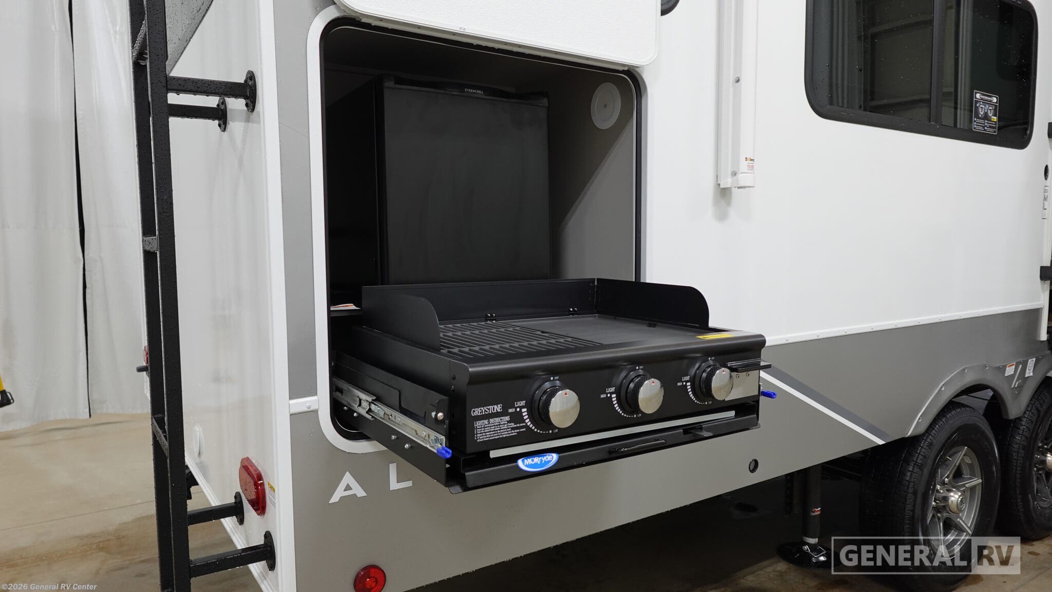 **Alliance RV Avenue All-Access fifth wheel 23ML highlights:** - Rear Kitchen - Spacious Full Bath - Exterior Griddle Grill and Refrigerator This fifth wheel is ready for adventure when you are! Once you arrive at the campground, you can put out the 16' awning, then start lunch on the exterior griddle. A booth dinette and theater sofa provide seating space inside, and there is a 50" Class HDTV to enjoy movies. The chef will also love the interior kitchen with its ample counter space, and there is plenty of storage with a hutch/pantry, second pantry, and 10 cu. ft. 12V refrigerator. Freshen up in the full bath before heading off to bed in the front private bedroom. Here, you'll find an Olympic queen bed, dual nightstands and overhead storage, plus a wardrobe with washer and dryer prep if you choose to add those appliances! A benchmark chassis creates a space saver upper deck with each one of these Avenue All-Access fifth wheels by Alliance RV! The 101 in. wide-body construction gives you more room to walk around and the flush slide out floors throughout prevent any tripping. There are Azdel composite sidewalls inside and out, and a seamless fully walkable PVC roof for extreme durability and zero maintenance. You are sure to love no carpet throughout making each Avenue All-Access easy to clean and allergen free, not to mention pet friendly. You can maximize your space throughout with innovative storage solutions like the hidden storage behind the TV, inside the end tables, ottoman, and dinette chairs. These units also include the OTG Solar Package with a 200 watt solar panel, 15 amp MPPT charger, multiple outlets, and more to keep you powered up!