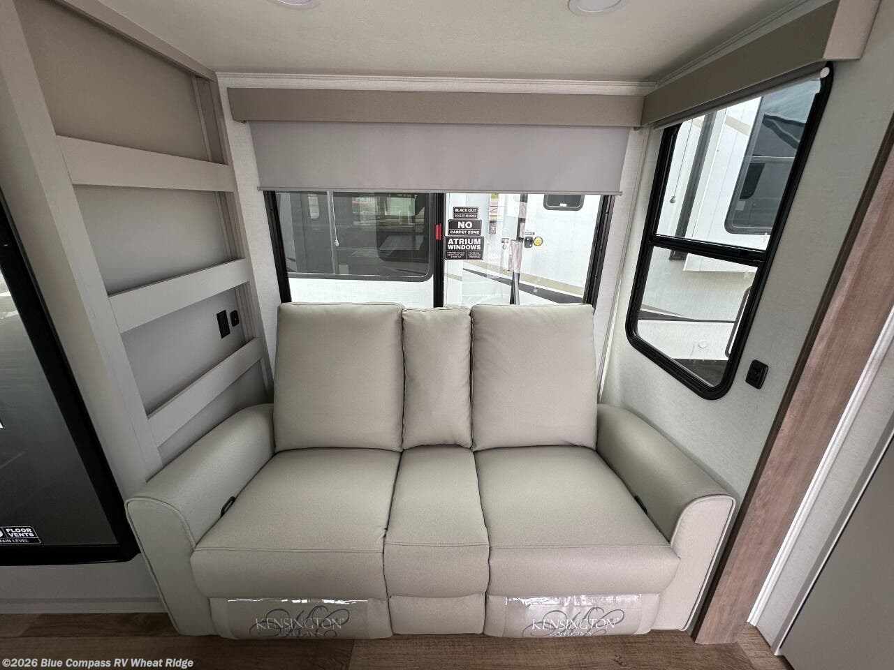 A benchmark chassis creates a space saver upper deck with each one of these Avenue All-Access fifth wheels by Alliance RV! The 101 in. wide-body construction gives you more room to walk around and the flush slide out floors throughout prevent any tripping. There are composite sidewalls inside and out, and PVC roof for extreme durability. You are sure to love no carpet throughout making each Avenue All-Access easy to clean and allergen free, not to mention pet friendly. You can maximize your space throughout with innovative storage solutions like the hidden storage behind the TV, inside the end tables, ottoman, and dinette chairs. These units also include the OTG Solar Package with a 200 watt solar panel, 15 amp MPPT charger, multiple outlets, and more to keep you powered up!