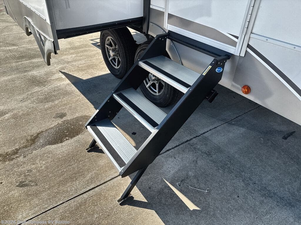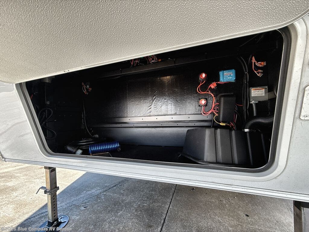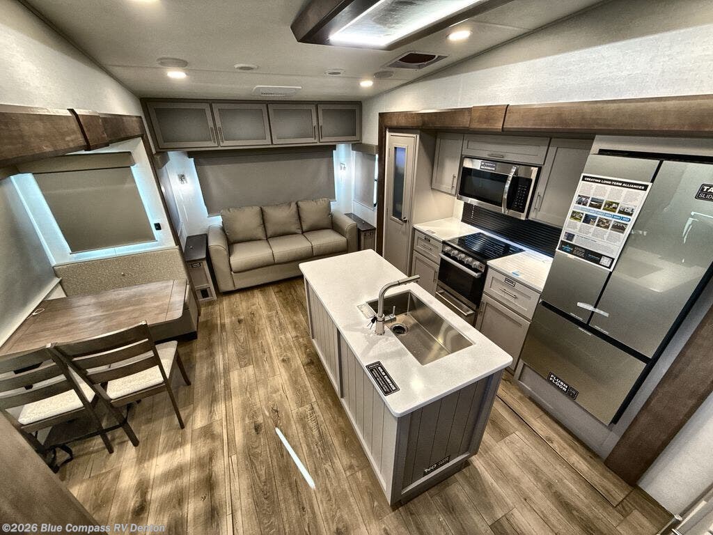 A benchmark chassis creates a space saver upper deck with each one of these Avenue All-Access fifth wheels by Alliance RV! The 101 in. wide-body construction gives you more room to walk around and the flush slide out floors throughout prevent any tripping. There are composite sidewalls inside and out, and PVC roof for extreme durability. You are sure to love no carpet throughout making each Avenue All-Access easy to clean and allergen free, not to mention pet friendly. You can maximize your space throughout with innovative storage solutions like the hidden storage behind the TV, inside the end tables, ottoman, and dinette chairs. These units also include the OTG Solar Package with a 200 watt solar panel, 15 amp MPPT charger, multiple outlets, and more to keep you powered up!