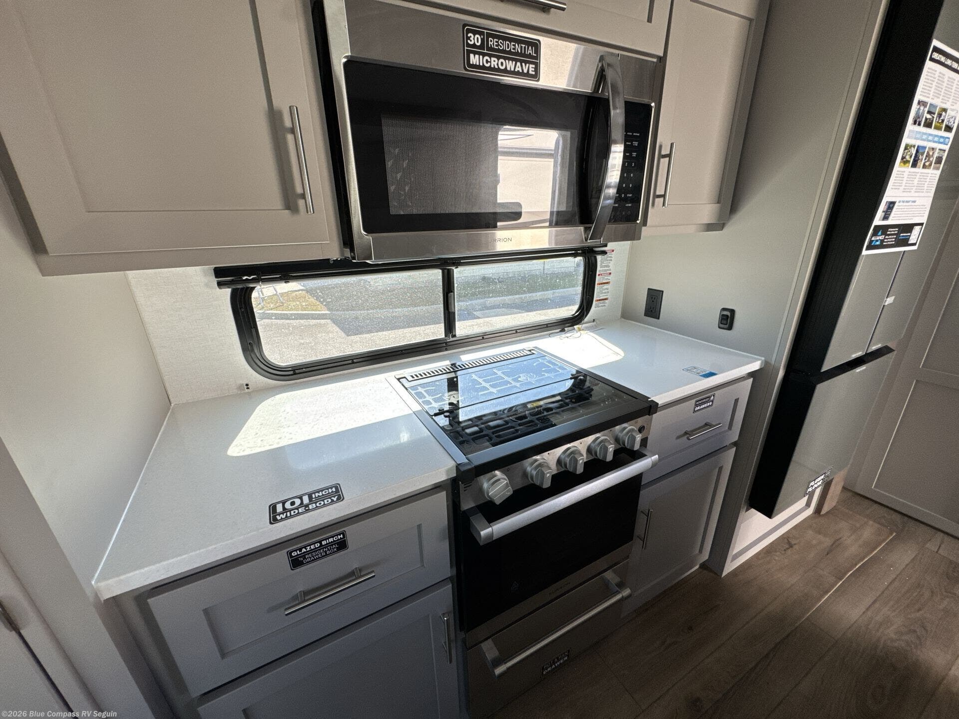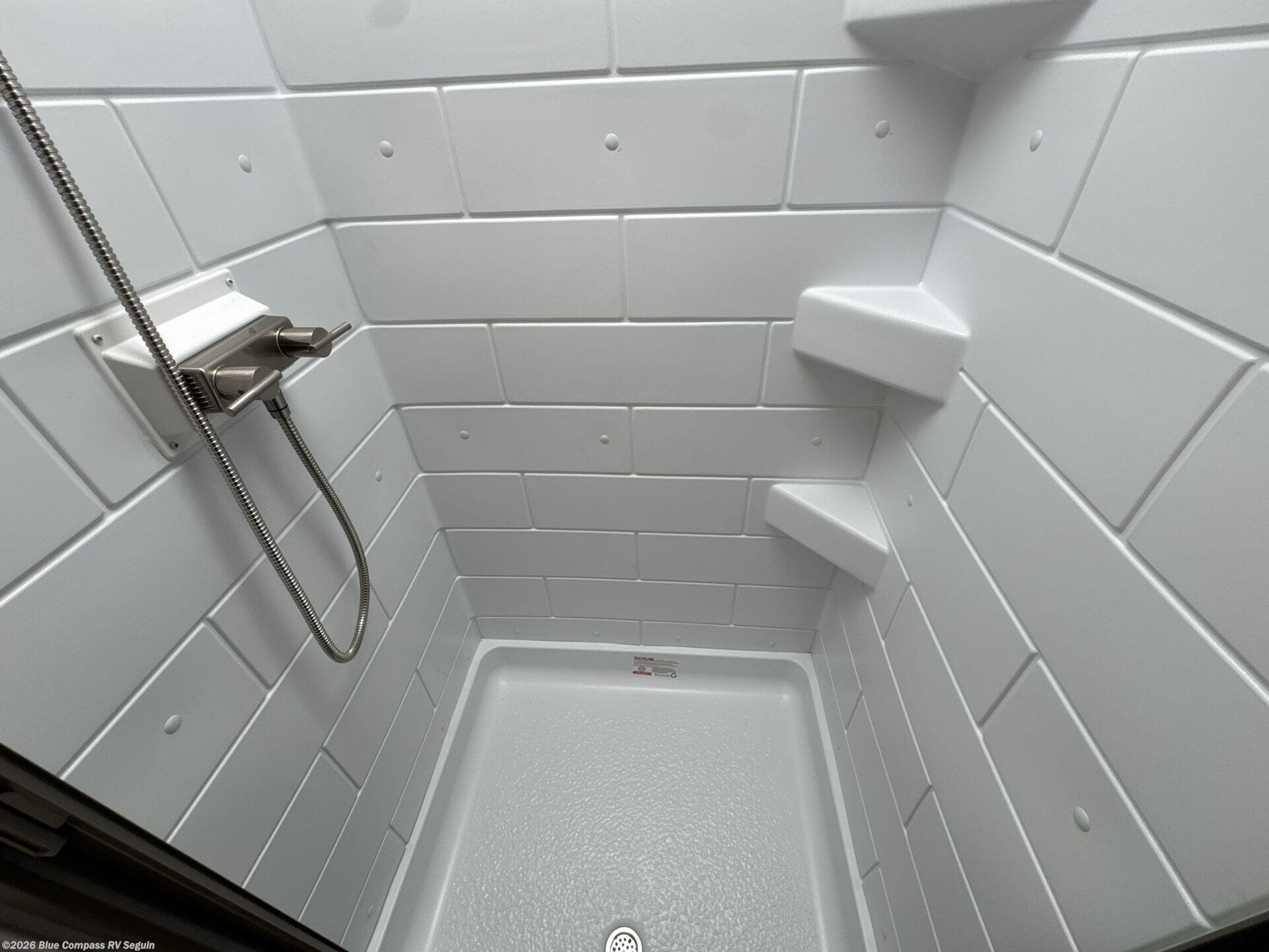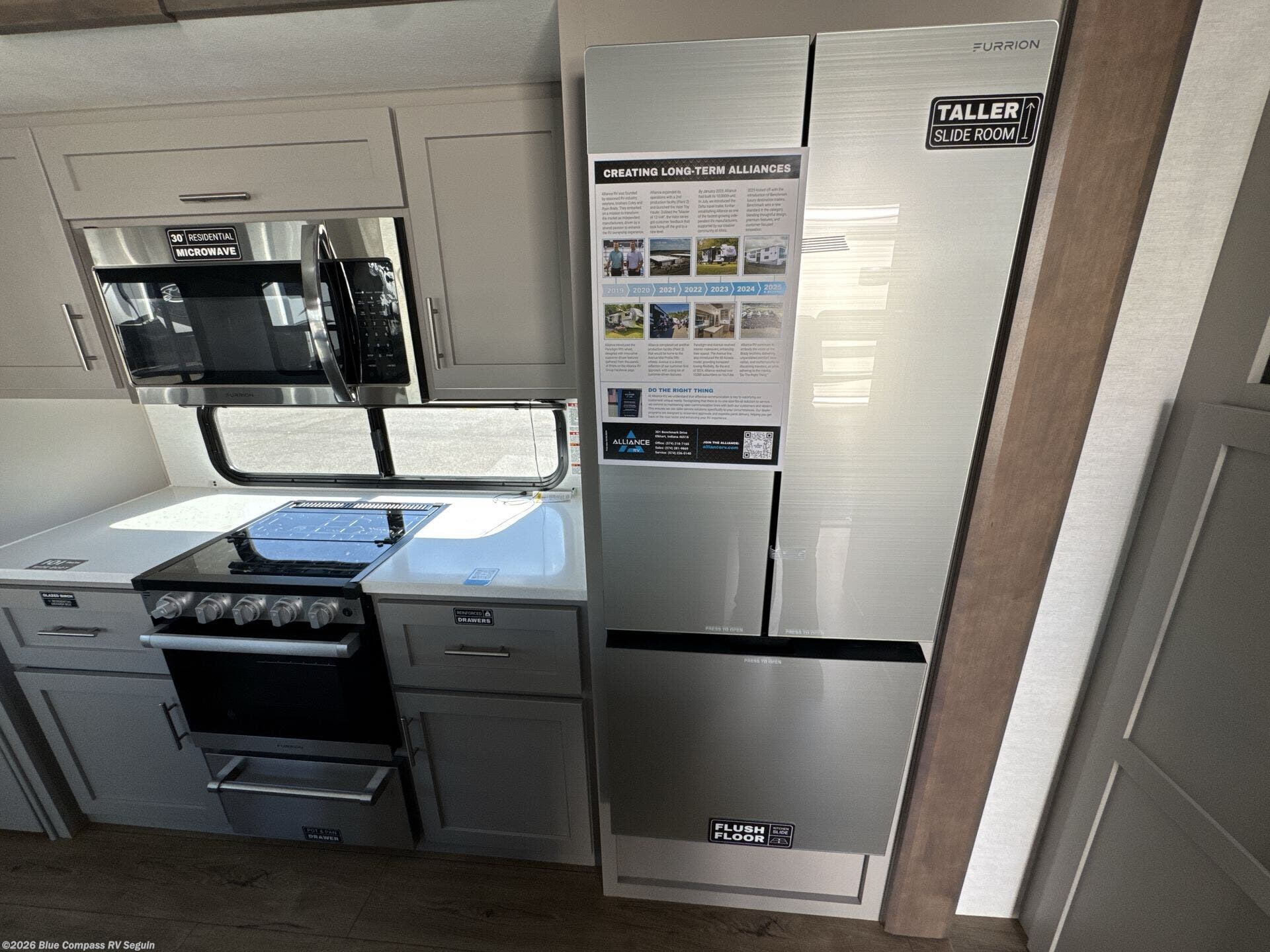 A benchmark chassis creates a space saver upper deck with each one of these Avenue All-Access fifth wheels by Alliance RV! The 101 in. wide-body construction gives you more room to walk around and the flush slide out floors throughout prevent any tripping. There are composite sidewalls inside and out, and PVC roof for extreme durability. You are sure to love no carpet throughout making each Avenue All-Access easy to clean and allergen free, not to mention pet friendly. You can maximize your space throughout with innovative storage solutions like the hidden storage behind the TV, inside the end tables, ottoman, and dinette chairs. These units also include the OTG Solar Package with a 200 watt solar panel, 15 amp MPPT charger, multiple outlets, and more to keep you powered up!