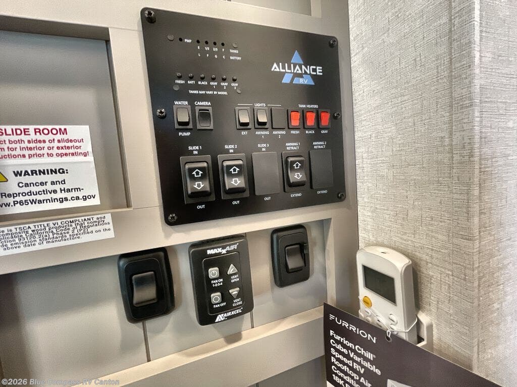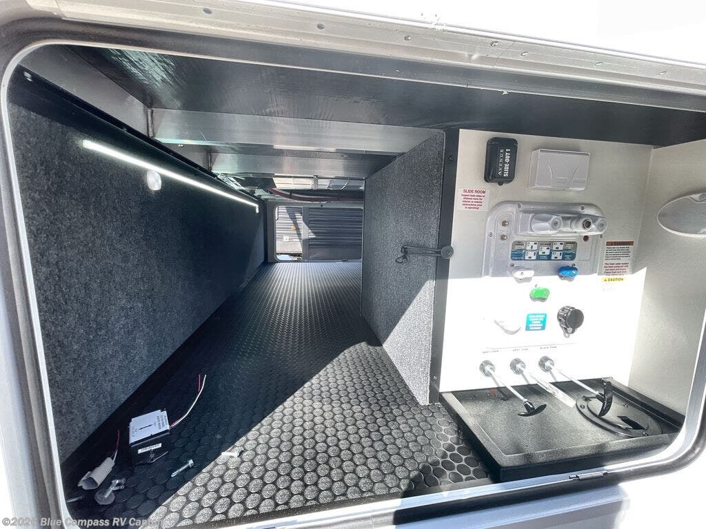 A benchmark chassis creates a space saver upper deck with each one of these Avenue All-Access fifth wheels by Alliance RV! The 101 in. wide-body construction gives you more room to walk around and the flush slide out floors throughout prevent any tripping. There are composite sidewalls inside and out, and PVC roof for extreme durability. You are sure to love no carpet throughout making each Avenue All-Access easy to clean and allergen free, not to mention pet friendly. You can maximize your space throughout with innovative storage solutions like the hidden storage behind the TV, inside the end tables, ottoman, and dinette chairs. These units also include the OTG Solar Package with a 200 watt solar panel, 15 amp MPPT charger, multiple outlets, and more to keep you powered up!