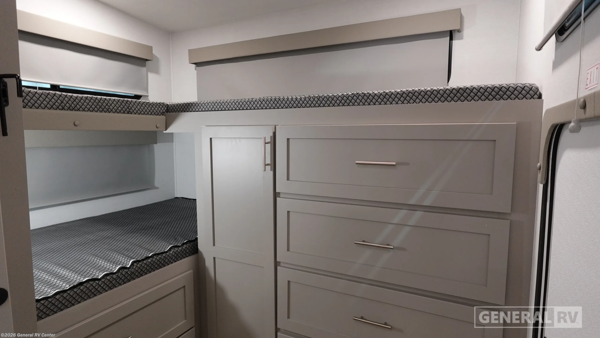 **Alliance RV Avenue All-Access fifth wheel 29BH highlights:** - Rear Bunkhouse - L-Shaped Dinette - Olympic Queen Bed - Full Bathroom Your kiddos will love this trailer’s rear bunk beds! These bunk beds are perfect for them (or kids at heart!), providing a cozy and comfortable sleeping space. The kitchen is equipped with a refrigerator, microwave, and overhead cabinets, making meal preparation and storage easy. The sink is conveniently located for food prep and cleanup. The L-dinette provide a comfortable spot for meals and socializing. The 68” theater seating is perfect for relaxing and enjoying your favorite shows or movies. The full bathroom provides a private space for personal care, and the front bedroom features an Olympic queen bed and nightstands. This serene space is perfect for recharging after a day of adventure! A benchmark chassis creates a space saver upper deck with each one of these Avenue All-Access fifth wheels by Alliance RV! The 101 in. wide-body construction gives you more room to walk around and the flush slide out floors throughout prevent any tripping. There are composite sidewalls inside and out, and PVC roof for extreme durability. You are sure to love no carpet throughout making each Avenue All-Access easy to clean and allergen free, not to mention pet friendly. You can maximize your space throughout with innovative storage solutions like the hidden storage behind the TV, inside the end tables, ottoman, and dinette chairs. These units also include the OTG Solar Package with a 200 watt solar panel, 15 amp MPPT charger, multiple outlets, and more to keep you powered up!