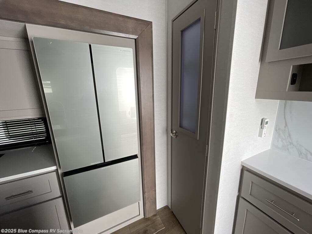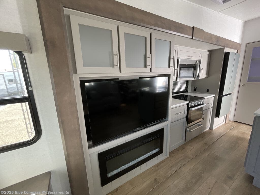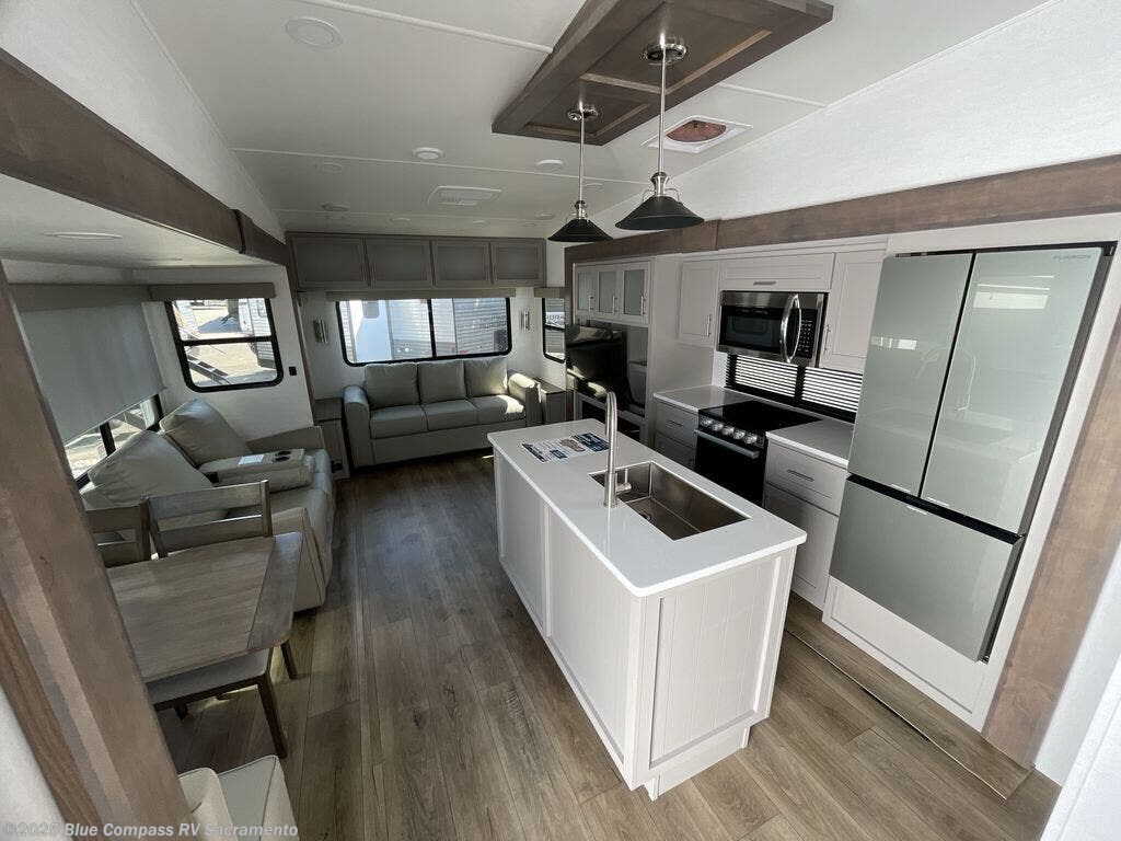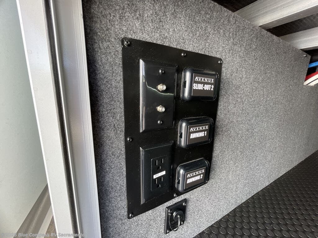 A benchmark chassis creates a space saver upper deck with each one of these Avenue All-Access fifth wheels by Alliance RV! The 101 in. wide-body construction gives you more room to walk around and the flush slide out floors throughout prevent any tripping. There are Azdel composite sidewalls inside and out, and a seamless fully walkable PVC roof for extreme durability and zero maintenance. You are sure to love no carpet throughout making each Avenue All-Access easy to clean and allergen free, not to mention pet friendly. You can maximize your space throughout with innovative storage solutions like the hidden storage behind the TV, inside the end tables, ottoman, and dinette chairs. These units also include the OTG Solar Package with a 200 watt solar panel, 15 amp MPPT charger, multiple outlets, and more to keep you powered up!