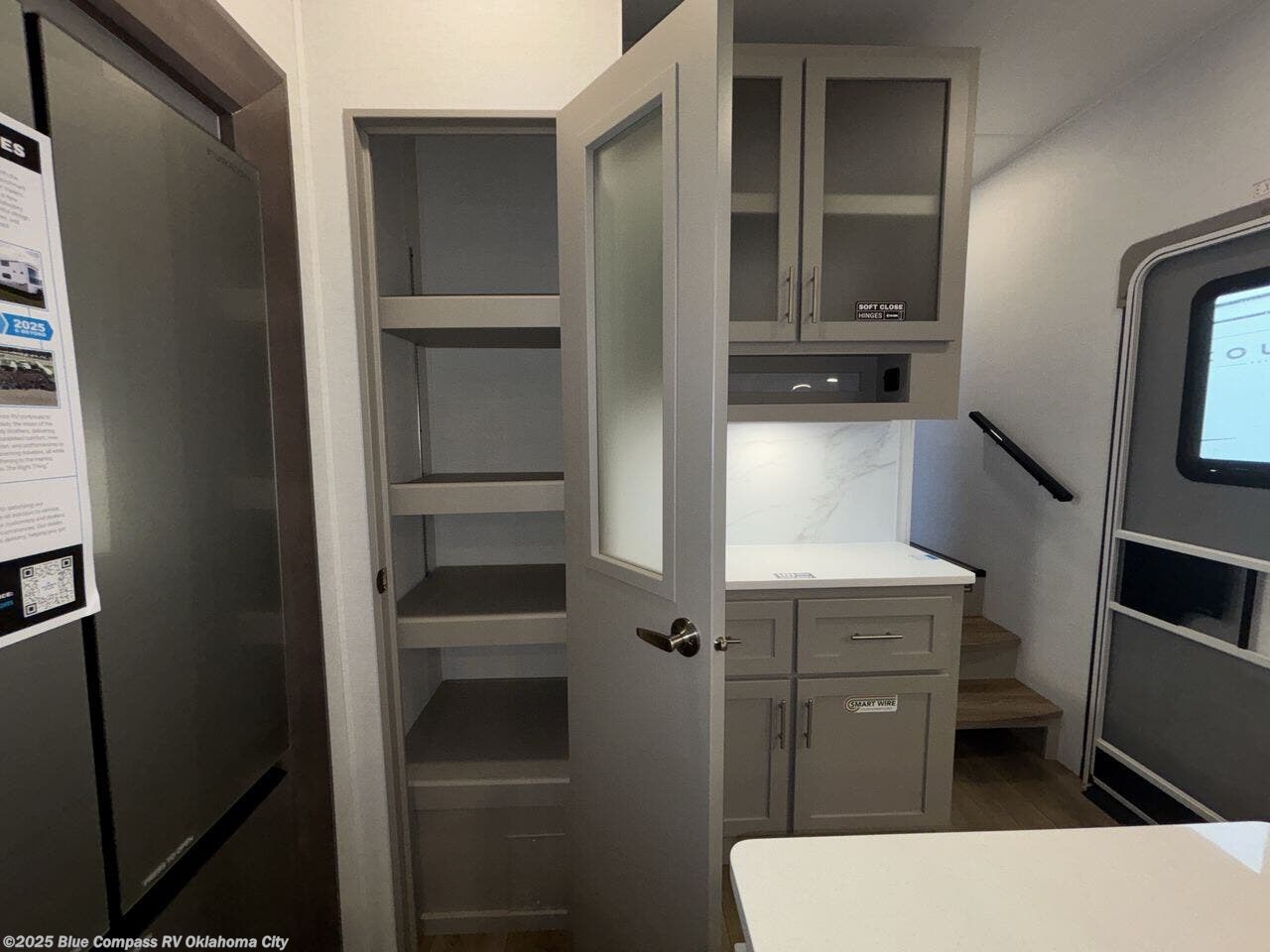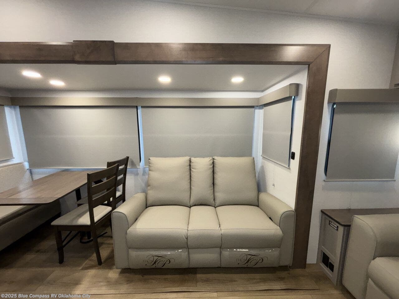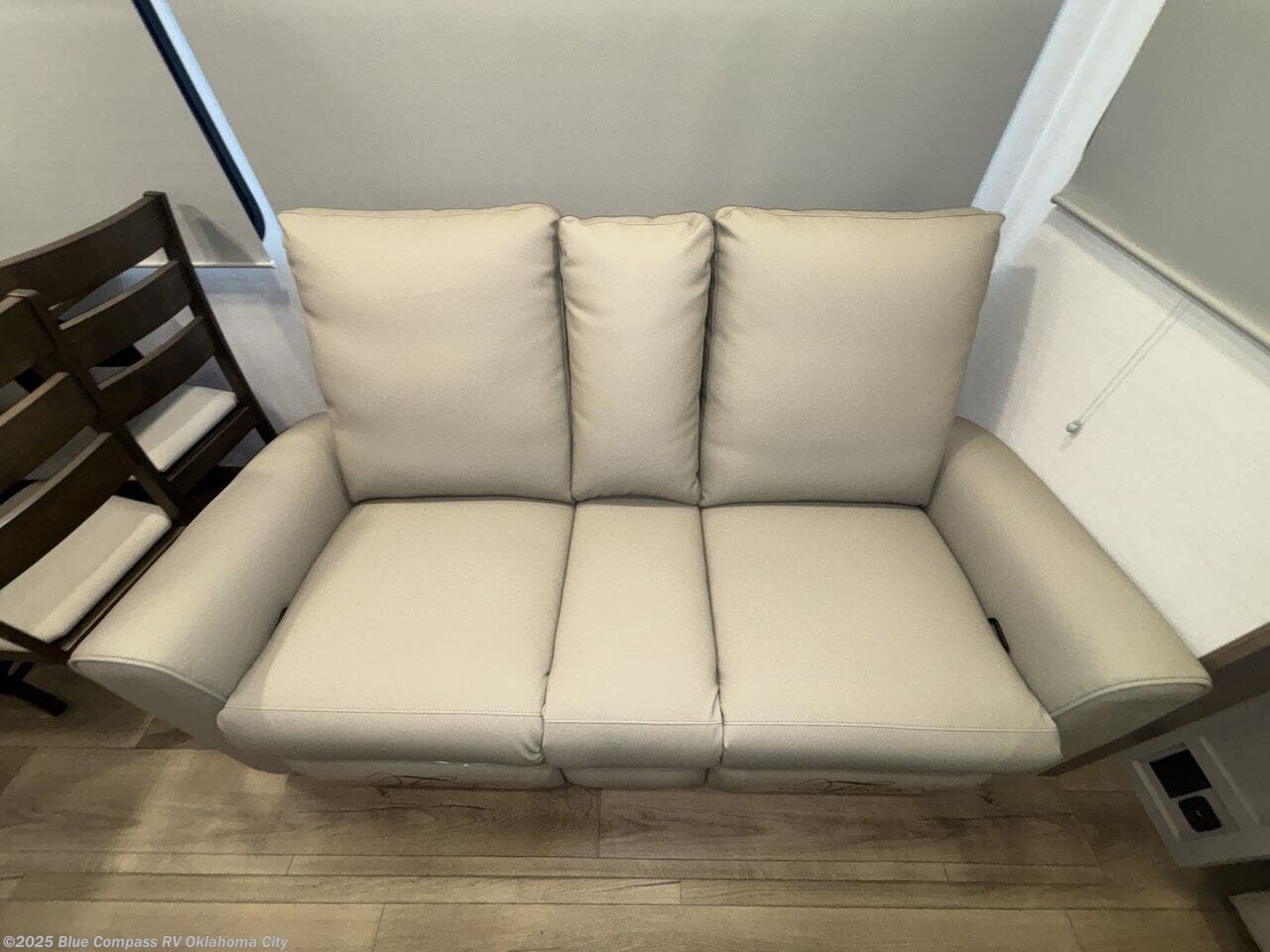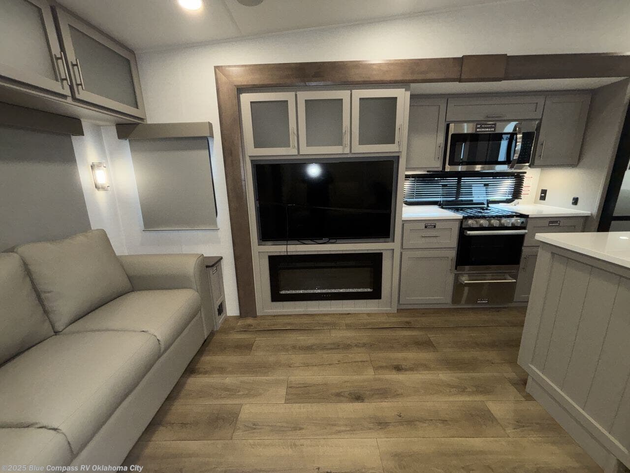 A benchmark chassis creates a space saver upper deck with each one of these Avenue All-Access fifth wheels by Alliance RV! The 101 in. wide-body construction gives you more room to walk around and the flush slide out floors throughout prevent any tripping. There are Azdel composite sidewalls inside and out, and a seamless fully walkable PVC roof for extreme durability and zero maintenance. You are sure to love no carpet throughout making each Avenue All-Access easy to clean and allergen free, not to mention pet friendly. You can maximize your space throughout with innovative storage solutions like the hidden storage behind the TV, inside the end tables, ottoman, and dinette chairs. These units also include the OTG Solar Package with a 200 watt solar panel, 15 amp MPPT charger, multiple outlets, and more to keep you powered up!