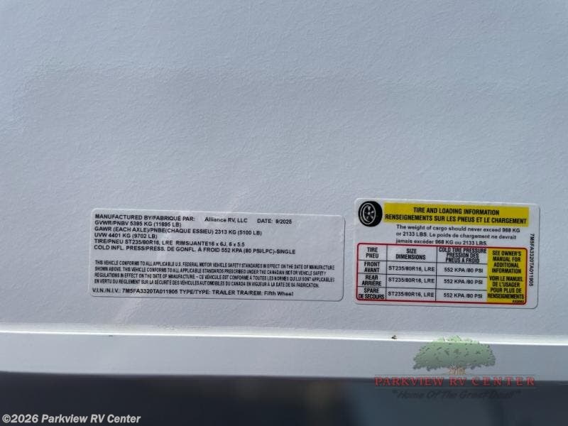 Request More Info on this 2026 Alliance RV Avenue All-Access 29RL Offered for sale by Parkview RV Center
