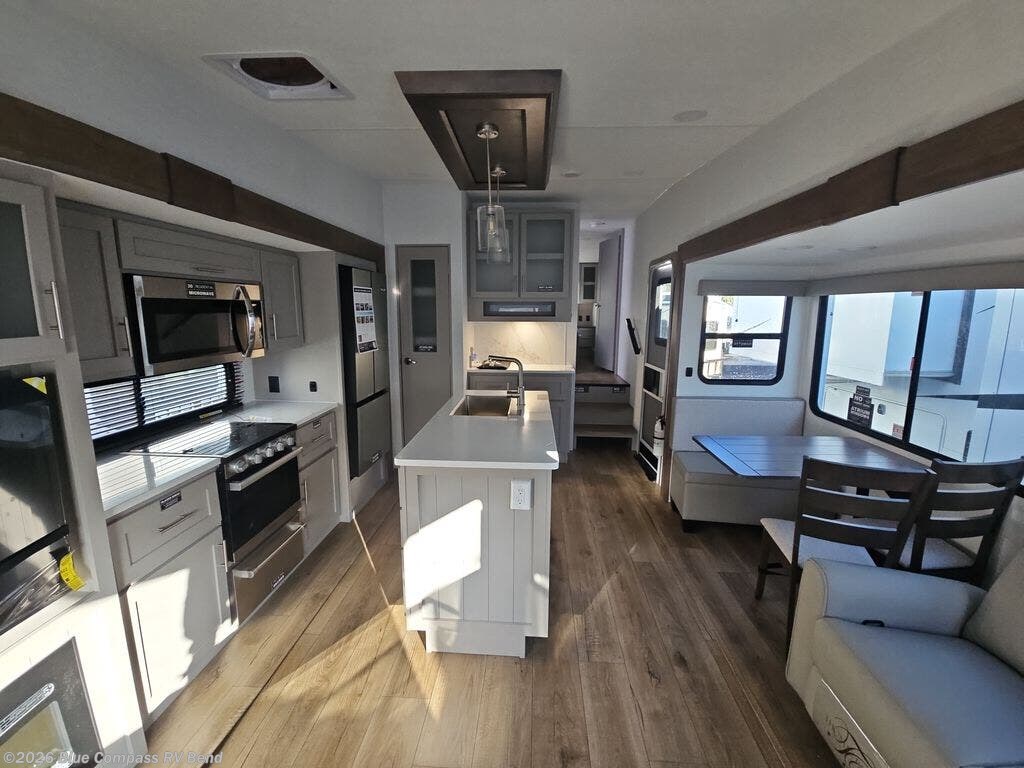 A benchmark chassis creates a space saver upper deck with each one of these Avenue All-Access fifth wheels by Alliance RV! The 101 in. wide-body construction gives you more room to walk around and the flush slide out floors throughout prevent any tripping. There are composite sidewalls inside and out, and PVC roof for extreme durability. You are sure to love no carpet throughout making each Avenue All-Access easy to clean and allergen free, not to mention pet friendly. You can maximize your space throughout with innovative storage solutions like the hidden storage behind the TV, inside the end tables, ottoman, and dinette chairs. These units also include the OTG Solar Package with a 200 watt solar panel, 15 amp MPPT charger, multiple outlets, and more to keep you powered up!
