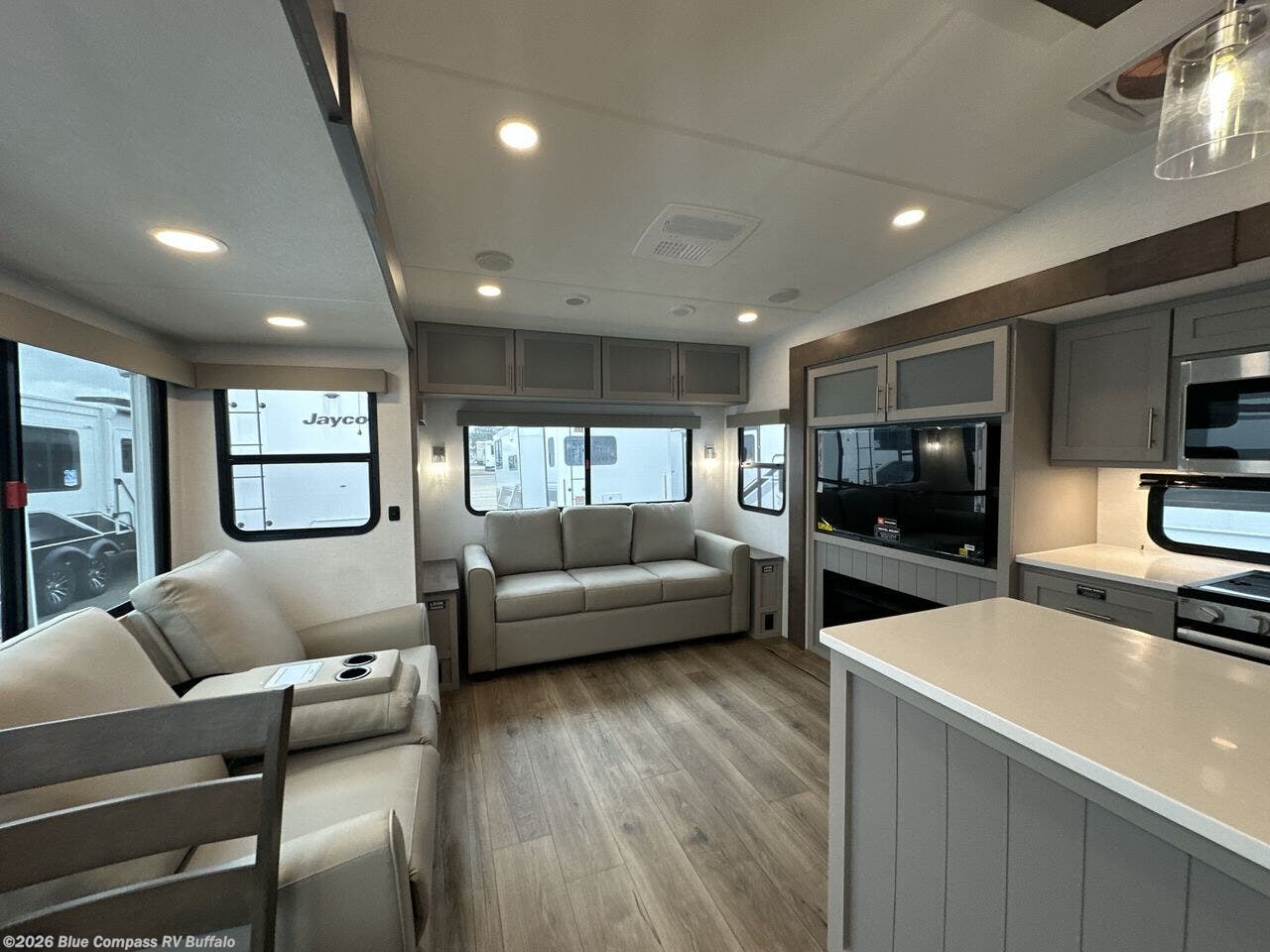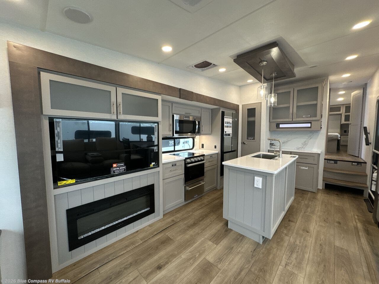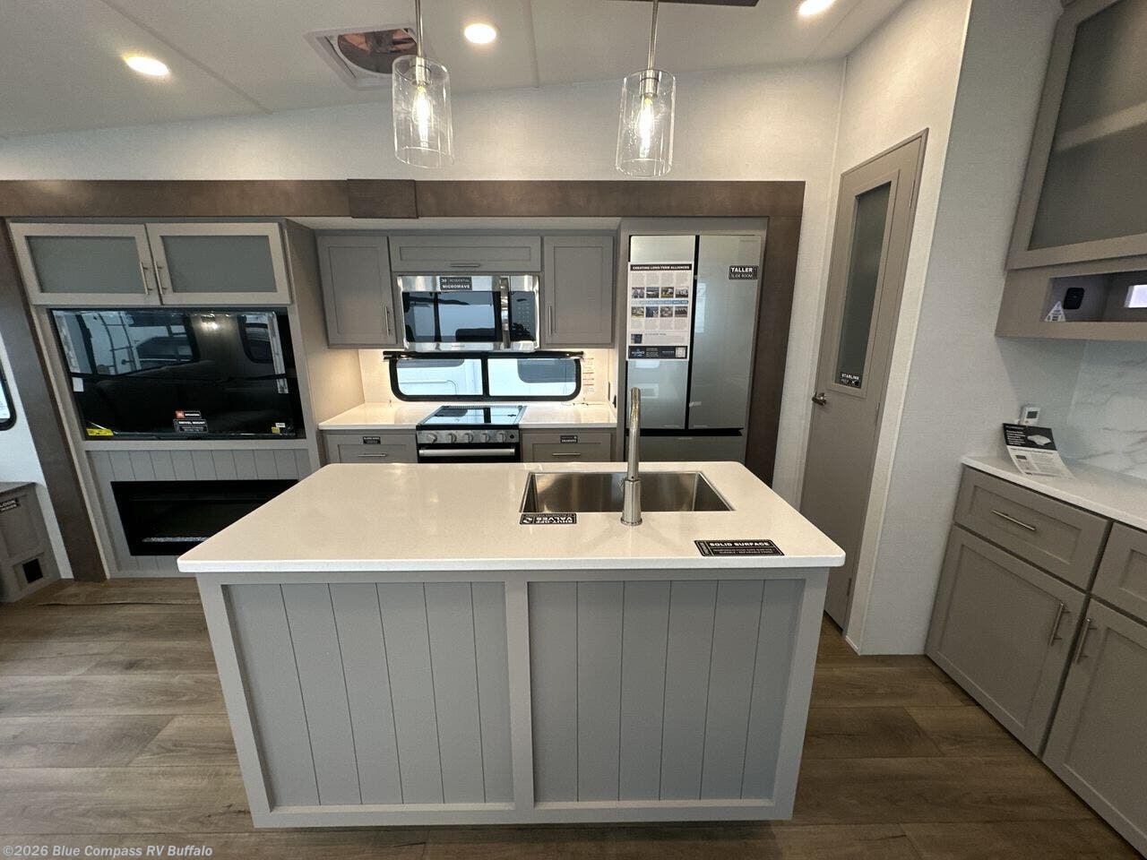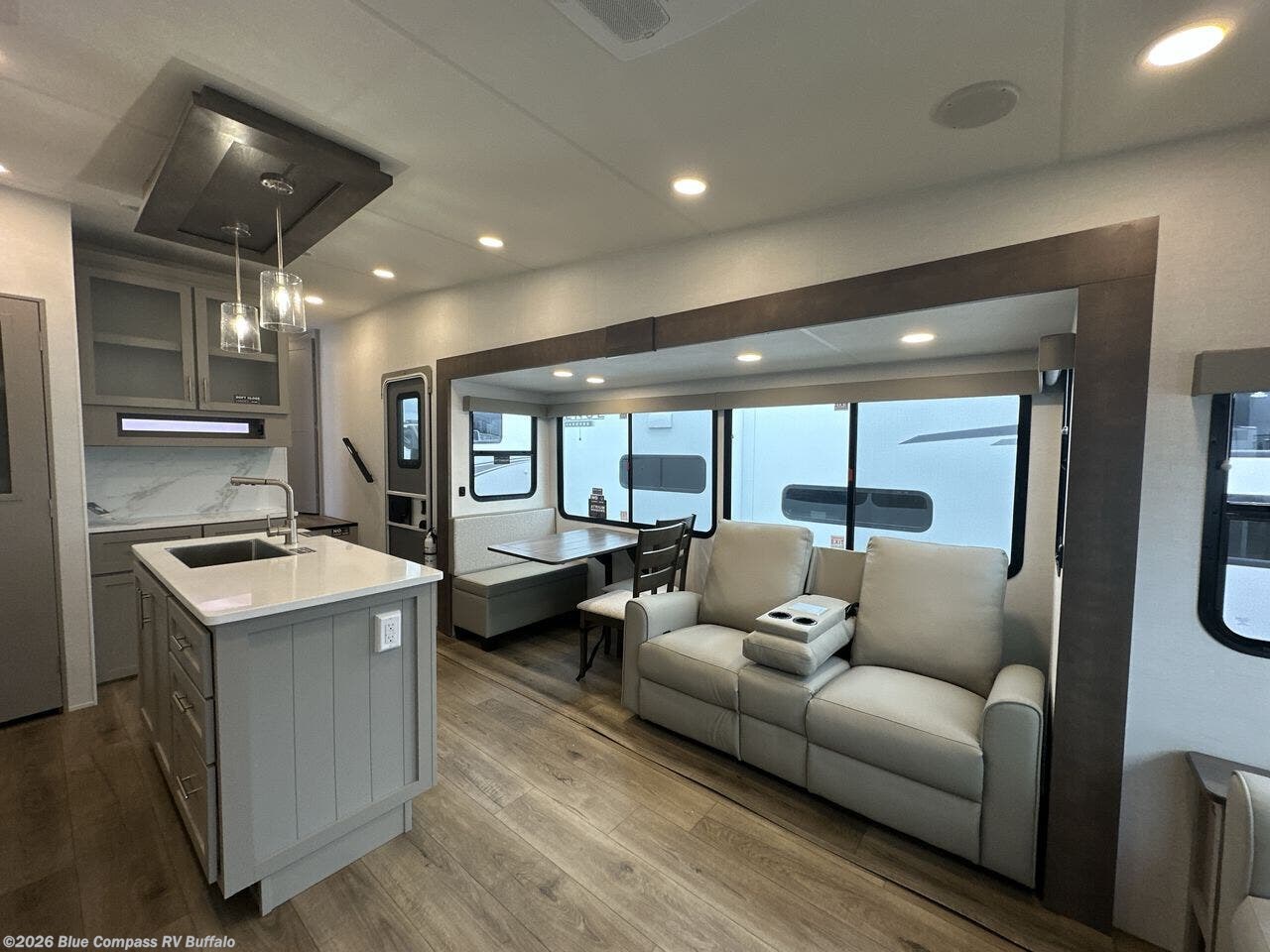 A benchmark chassis creates a space saver upper deck with each one of these Avenue All-Access fifth wheels by Alliance RV! The 101 in. wide-body construction gives you more room to walk around and the flush slide out floors throughout prevent any tripping. There are composite sidewalls inside and out, and PVC roof for extreme durability. You are sure to love no carpet throughout making each Avenue All-Access easy to clean and allergen free, not to mention pet friendly. You can maximize your space throughout with innovative storage solutions like the hidden storage behind the TV, inside the end tables, ottoman, and dinette chairs. These units also include the OTG Solar Package with a 200 watt solar panel, 15 amp MPPT charger, multiple outlets, and more to keep you powered up!
