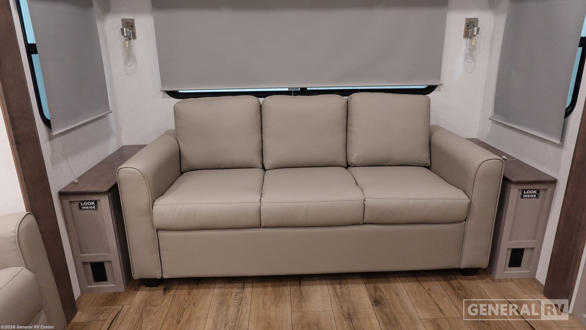 **Alliance RV Avenue All-Access 29RL fifth wheel highlights:** * Front Private Bedroom * Kitchen Island * Hidden Storage * Sleeper Sofa * Dual Recliner Theater Seat For the couple that enjoys adventures, this rear living coach has everything you need to travel comfortably and take along a couple of friends! The front private bedroom has an Olympic queen bed with nightstands on either side for your personal belongings, and a wardrobe to keep your clothes looking nice. Freshen up each morning in the full bathroom with a 30" x 36" shower, and grab a towel stored close by in the linen closet. Now that you're ready for the day, you can head to the kitchen and create a hearty breakfast with the full kitchen amenities. You will appreciate having a 10 cu. ft. 12V refrigerator and three burner cooktop, plus there is a center island with plenty of counter space and a sink to make food prep even easier. Spend your evenings in true relaxation in the dual recliner theater seats across from the swing mount 50" HDTV with hidden storage behind. You will also love the pantry and hutch in the kitchen area for storing all of your dishes and non-perishables. Dine at the floating table with two chairs along with a moveable ottoman featuring storage. A benchmark chassis creates a space saver upper deck with each one of these Avenue All-Access fifth wheels by Alliance RV! The 101 in. wide-body construction gives you more room to walk around and the flush slide out floors throughout prevent any tripping. There are composite sidewalls inside and out, and PVC roof for extreme durability. You are sure to love no carpet throughout making each Avenue All-Access easy to clean and allergen free, not to mention pet friendly. You can maximize your space throughout with innovative storage solutions like the hidden storage behind the TV, inside the end tables, ottoman, and dinette chairs. These units also include the OTG Solar Package with a 200 watt solar panel, 15 amp MPPT charger, multiple outlets, and more to keep you powered up!