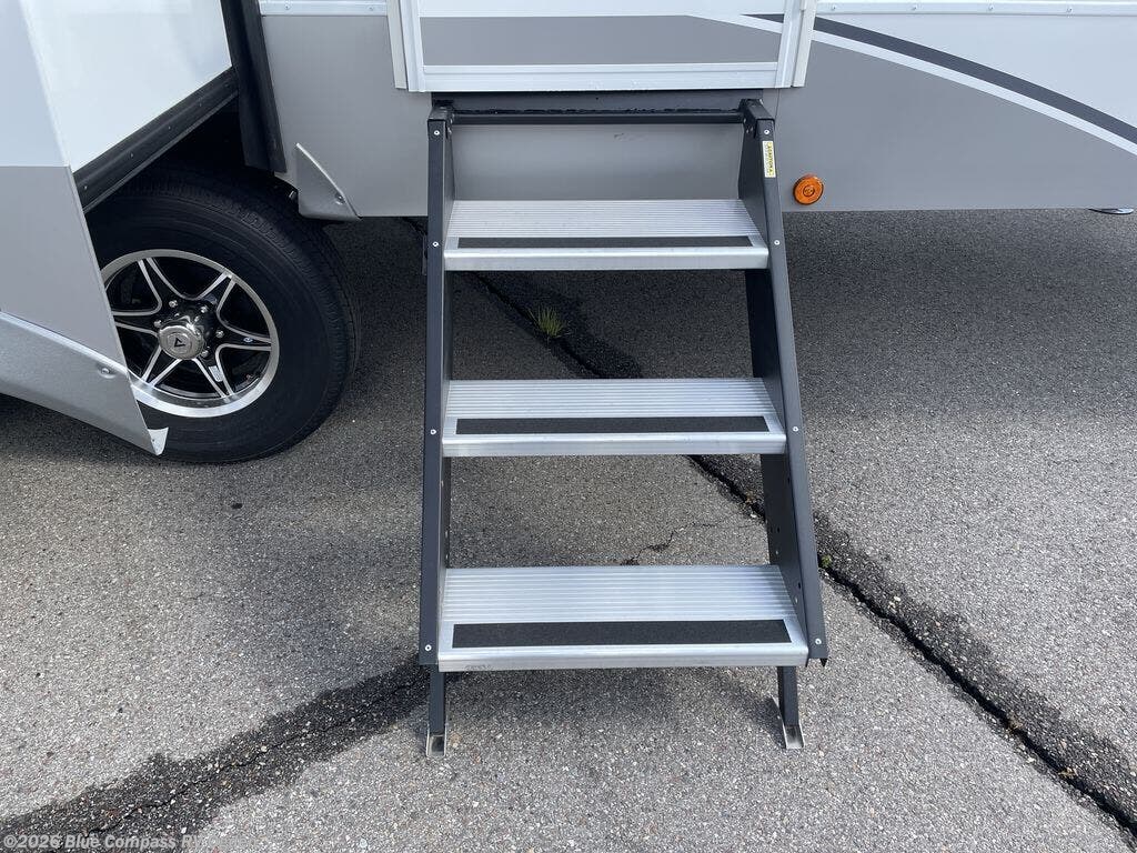 A benchmark chassis creates a space saver upper deck with each one of these Avenue All-Access fifth wheels by Alliance RV! The 101 in. wide-body construction gives you more room to walk around and the flush slide out floors throughout prevent any tripping. There are composite sidewalls inside and out, and PVC roof for extreme durability. You are sure to love no carpet throughout making each Avenue All-Access easy to clean and allergen free, not to mention pet friendly. You can maximize your space throughout with innovative storage solutions like the hidden storage behind the TV, inside the end tables, ottoman, and dinette chairs. These units also include the OTG Solar Package with a 200 watt solar panel, 15 amp MPPT charger, multiple outlets, and more to keep you powered up!