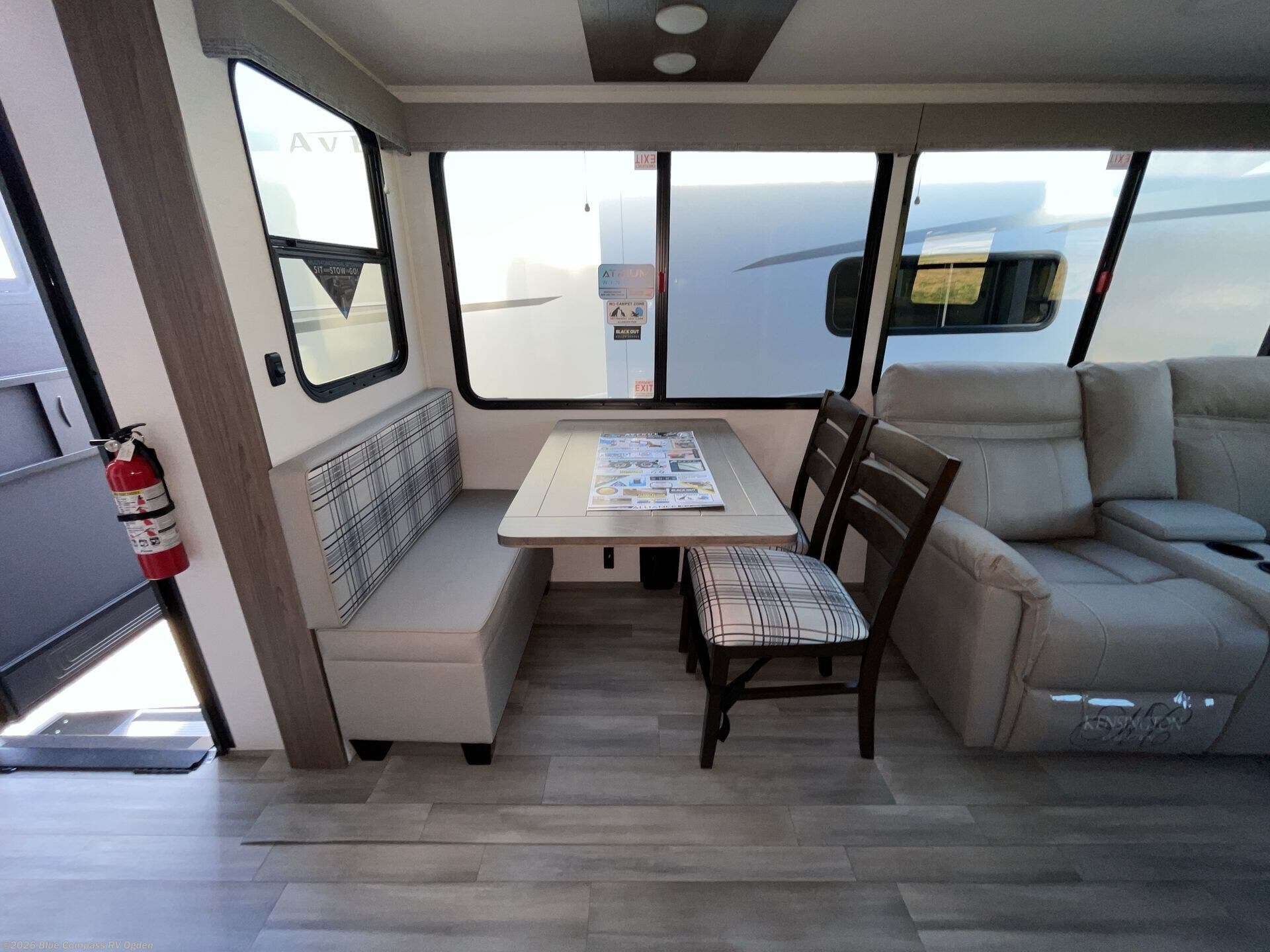 A benchmark chassis creates a space saver upper deck with each one of these Avenue All-Access fifth wheels by Alliance RV! The 101 in. wide-body construction gives you more room to walk around and the flush slide out floors throughout prevent any tripping. There are composite sidewalls inside and out, and PVC roof for extreme durability. You are sure to love no carpet throughout making each Avenue All-Access easy to clean and allergen free, not to mention pet friendly. You can maximize your space throughout with innovative storage solutions like the hidden storage behind the TV, inside the end tables, ottoman, and dinette chairs. These units also include the OTG Solar Package with a 200 watt solar panel, 15 amp MPPT charger, multiple outlets, and more to keep you powered up!
