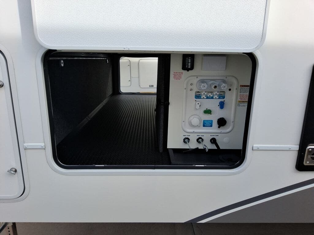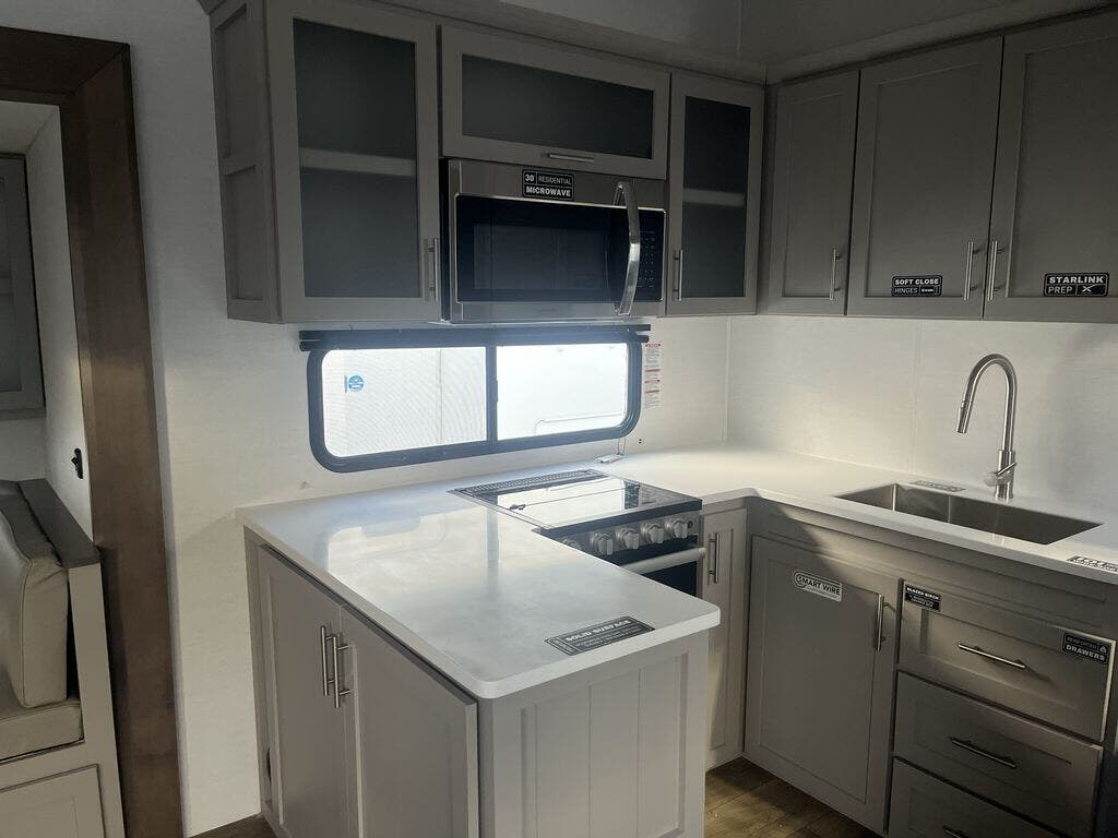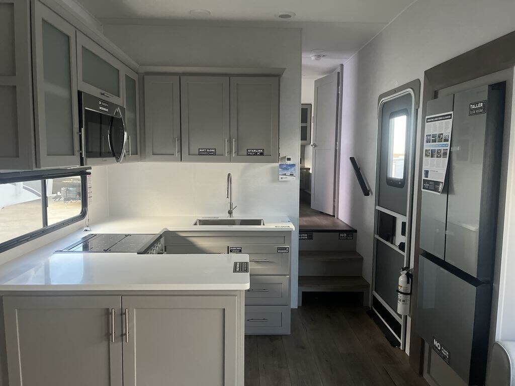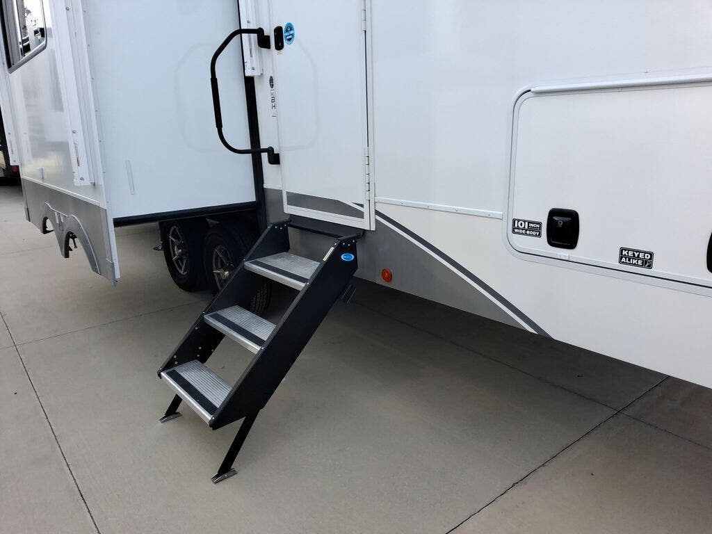 A benchmark chassis creates a space saver upper deck with each one of these Avenue All-Access fifth wheels by Alliance RV! The 101 in. wide-body construction gives you more room to walk around and the flush slide out floors throughout prevent any tripping. There are Azdel composite sidewalls inside and out, and a seamless fully walkable PVC roof for extreme durability and zero maintenance. You are sure to love no carpet throughout making each Avenue All-Access easy to clean and allergen free, not to mention pet friendly. You can maximize your space throughout with innovative storage solutions like the hidden storage behind the TV, inside the end tables, ottoman, and dinette chairs. These units also include the OTG Solar Package with a 200 watt solar panel, 15 amp MPPT charger, multiple outlets, and more to keep you powered up!