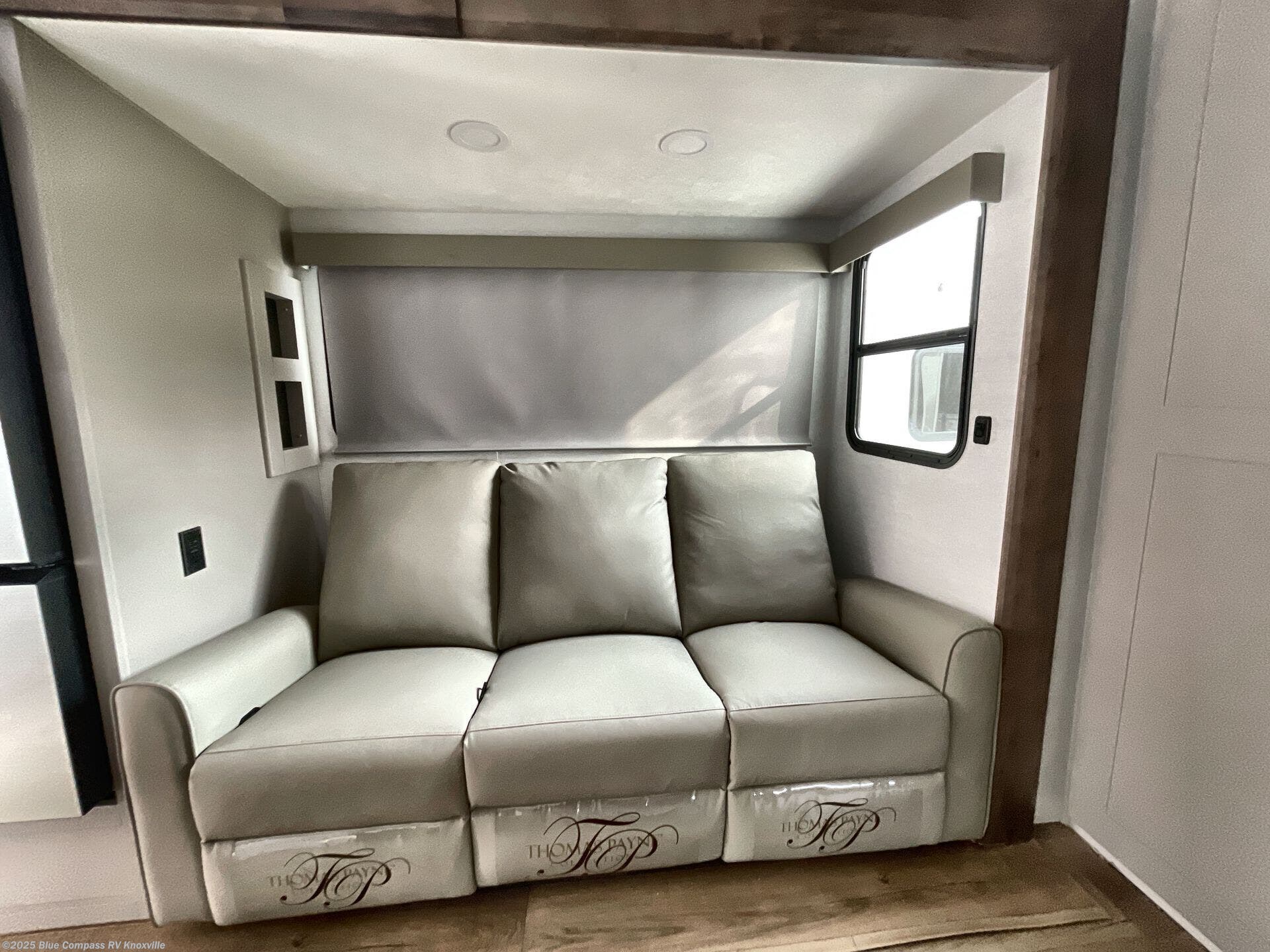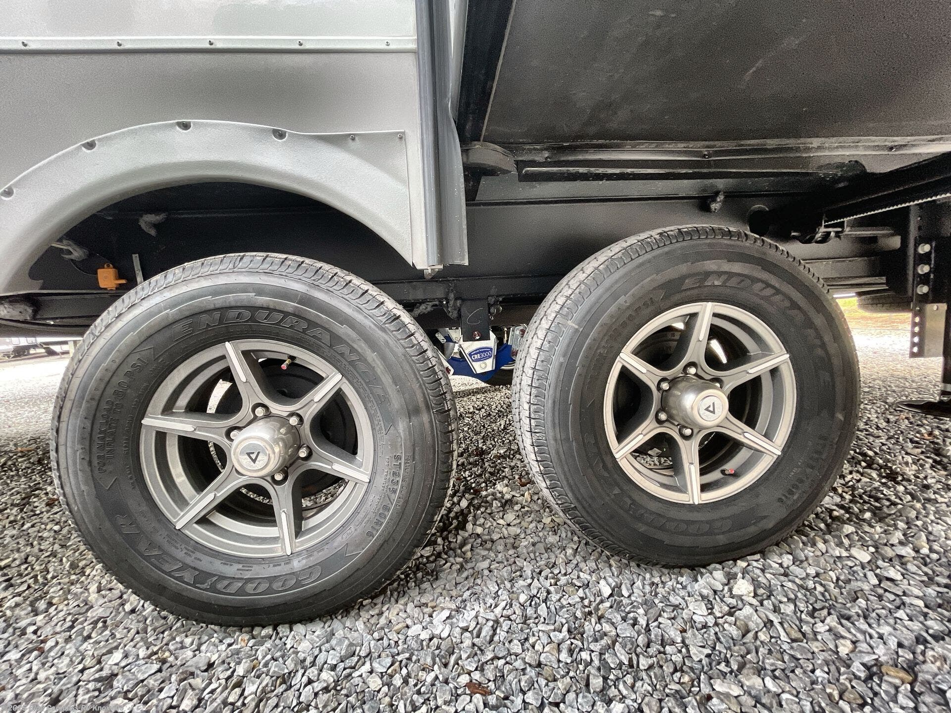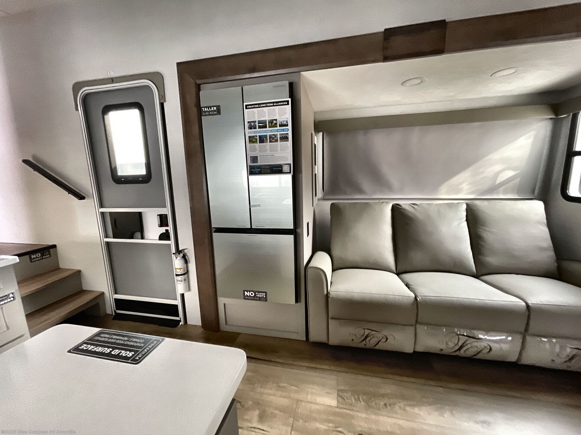 A benchmark chassis creates a space saver upper deck with each one of these Avenue All-Access fifth wheels by Alliance RV! The 101 in. wide-body construction gives you more room to walk around and the flush slide out floors throughout prevent any tripping. There are composite sidewalls inside and out, and a seamless fully walkable PVC roof for extreme durability and zero maintenance. You are sure to love no carpet throughout making each Avenue All-Access easy to clean and allergen free, not to mention pet friendly. You can maximize your space throughout with innovative storage solutions like the hidden storage behind the TV, inside the end tables, ottoman, and dinette chairs. These units also include the OTG Solar Package with a 200 watt solar panel, 15 amp MPPT charger, multiple outlets, and more to keep you powered up!