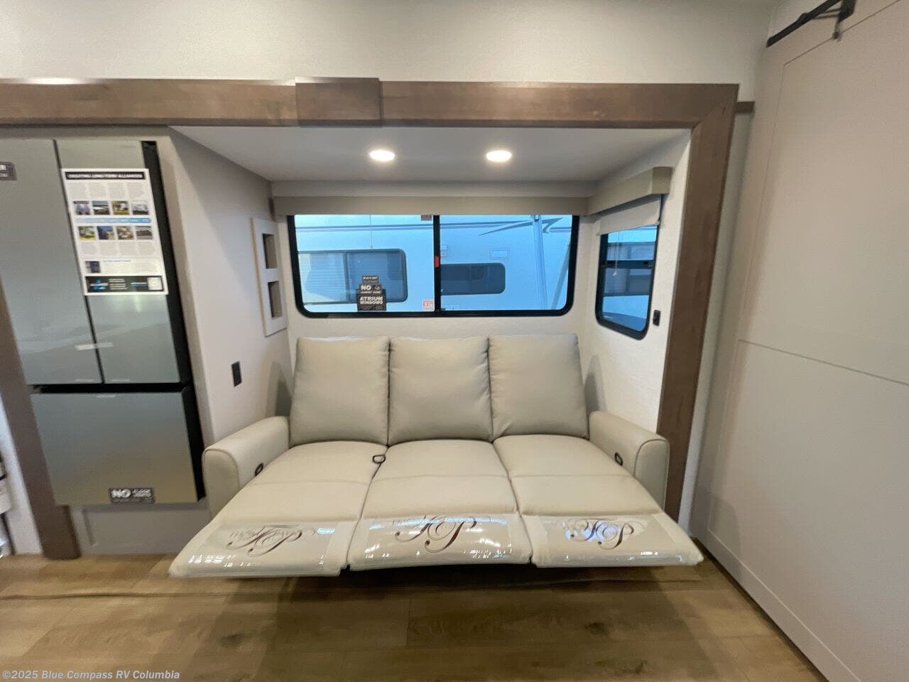 A benchmark chassis creates a space saver upper deck with each one of these Avenue All-Access fifth wheels by Alliance RV! The 101 in. wide-body construction gives you more room to walk around and the flush slide out floors throughout prevent any tripping. There are composite sidewalls inside and out, and a seamless fully walkable PVC roof for extreme durability and zero maintenance. You are sure to love no carpet throughout making each Avenue All-Access easy to clean and allergen free, not to mention pet friendly. You can maximize your space throughout with innovative storage solutions like the hidden storage behind the TV, inside the end tables, ottoman, and dinette chairs. These units also include the OTG Solar Package with a 200 watt solar panel, 15 amp MPPT charger, multiple outlets, and more to keep you powered up!