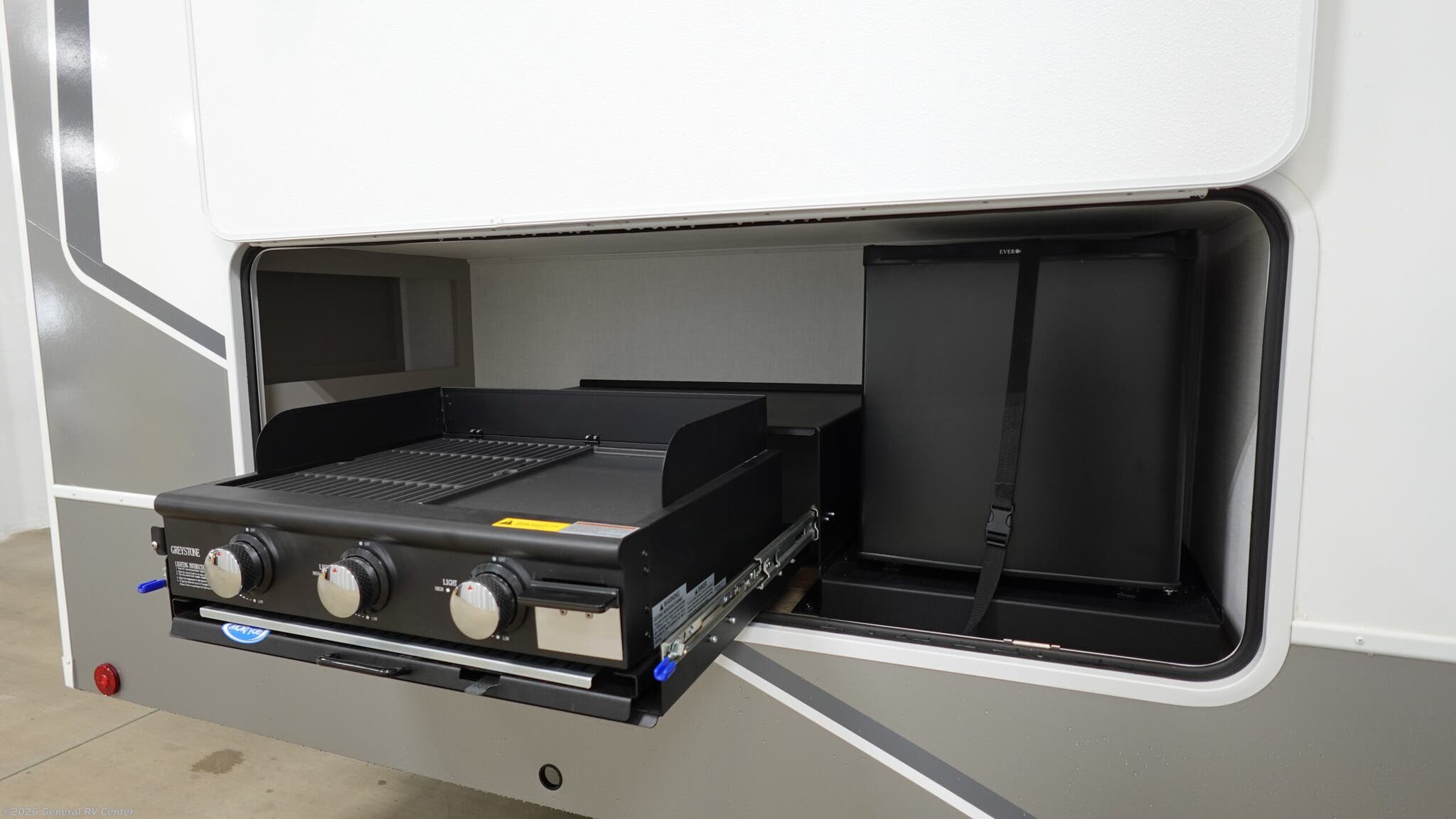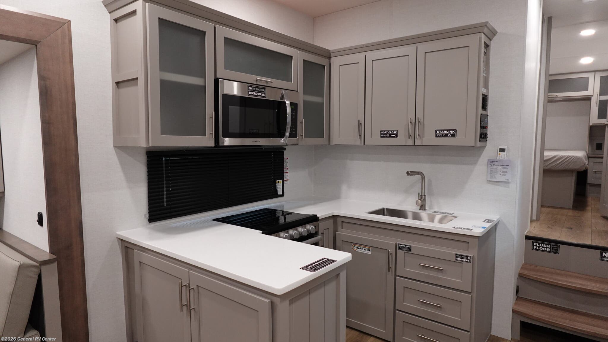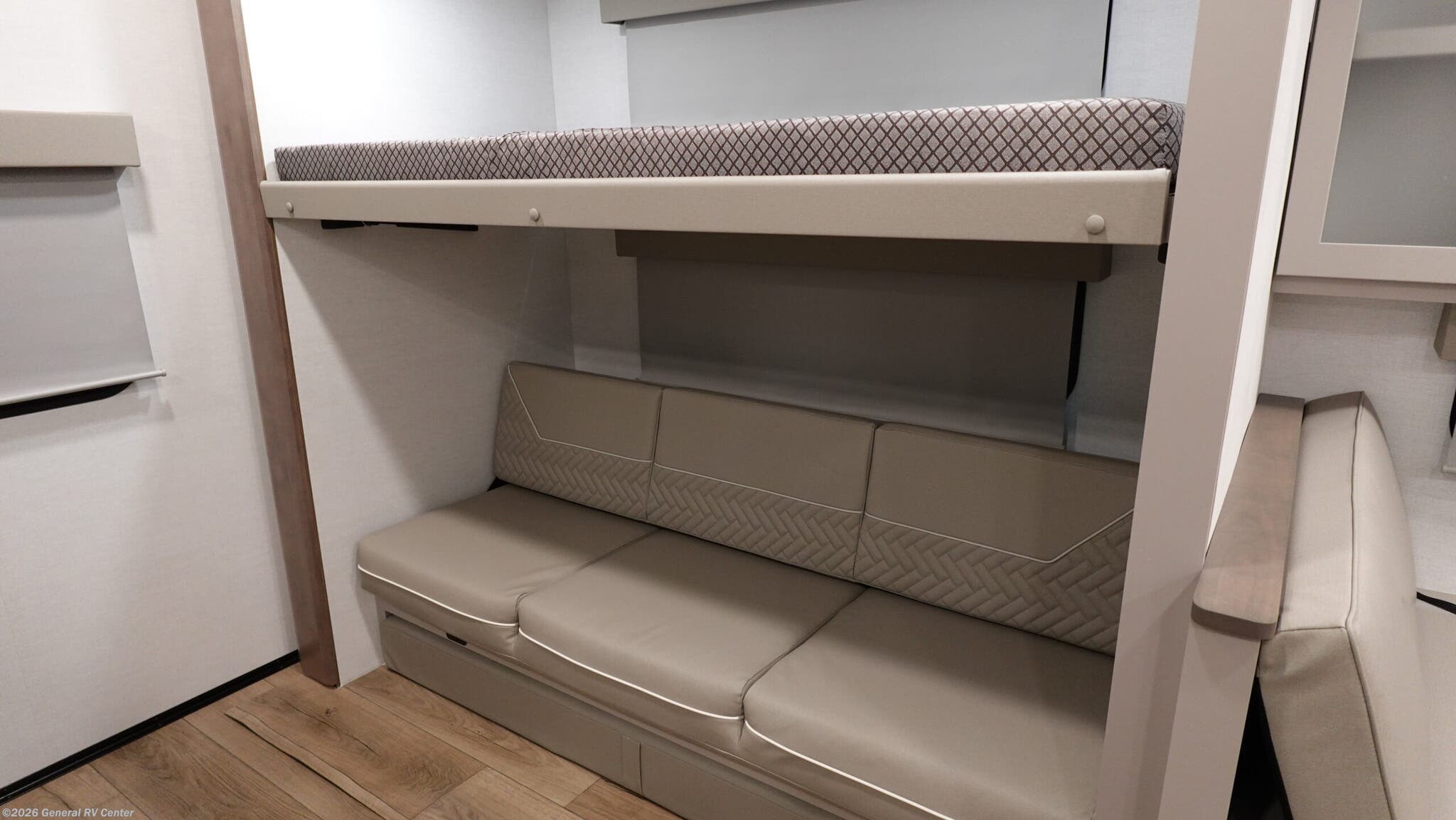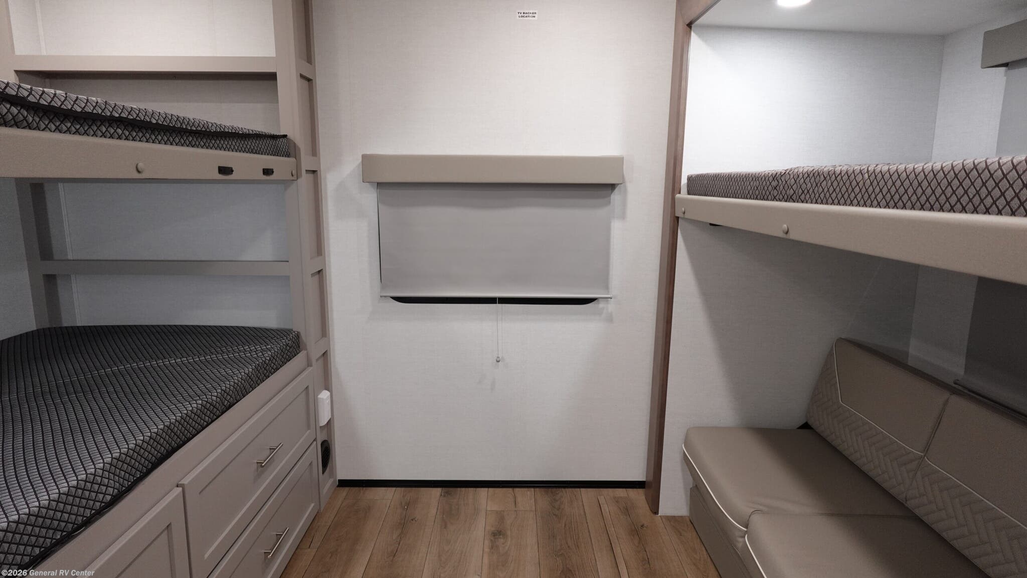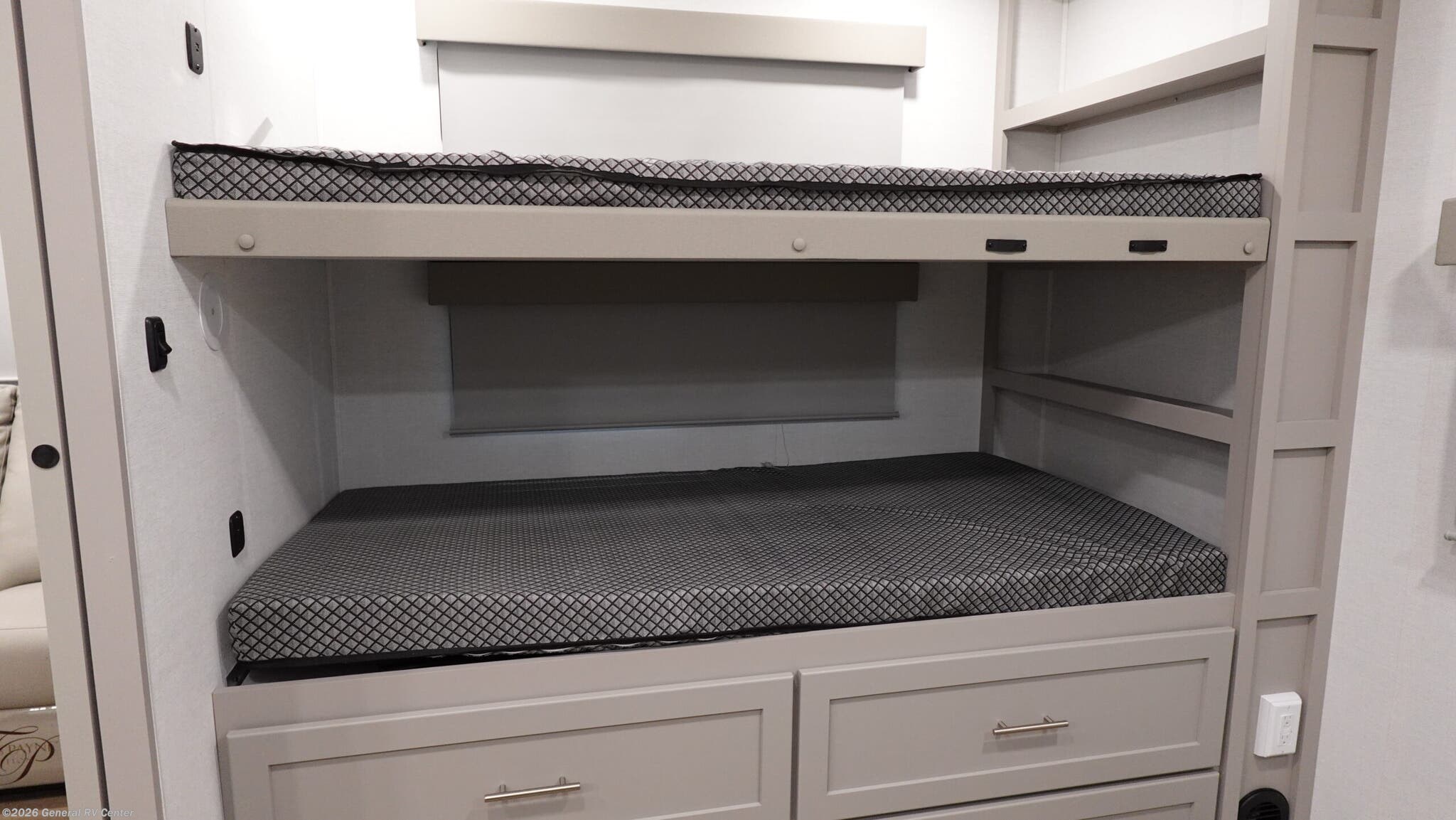 The 2026 Alliance RV Avenue All-Access 30BH is your gateway to adventure and comfort, offering a spacious and inviting design perfect for family getaways. This model comfortably sleeps up to eight, with a cozy king bed and three bunks that promise restful nights for everyone. The dual slide-outs create an expansive living area, allowing for a seamless flow between the kitchen, dining, and entertainment spaces. The living room features a 50-inch HDTV, ideal for relaxing movie nights after a day of exploration. With a 10 cu. ft. 12V refrigerator and a three-burner cooktop, the kitchen is fully equipped to handle your culinary needs on the road. Designed with convenience in mind, the Avenue 30BH includes a standard 30" x 36" shower, ensuring you feel refreshed and ready for the day. The RV is also prepped for a washer and dryer, adding a touch of home to your travels. Outside, you'll find two awnings providing ample shade, perfect for enjoying the great outdoors. The ample storage solutions ensure you have room for all your gear, making this RV a perfect blend of functionality and style. For more details and to experience this RV firsthand, visit your nearest General RV dealership.