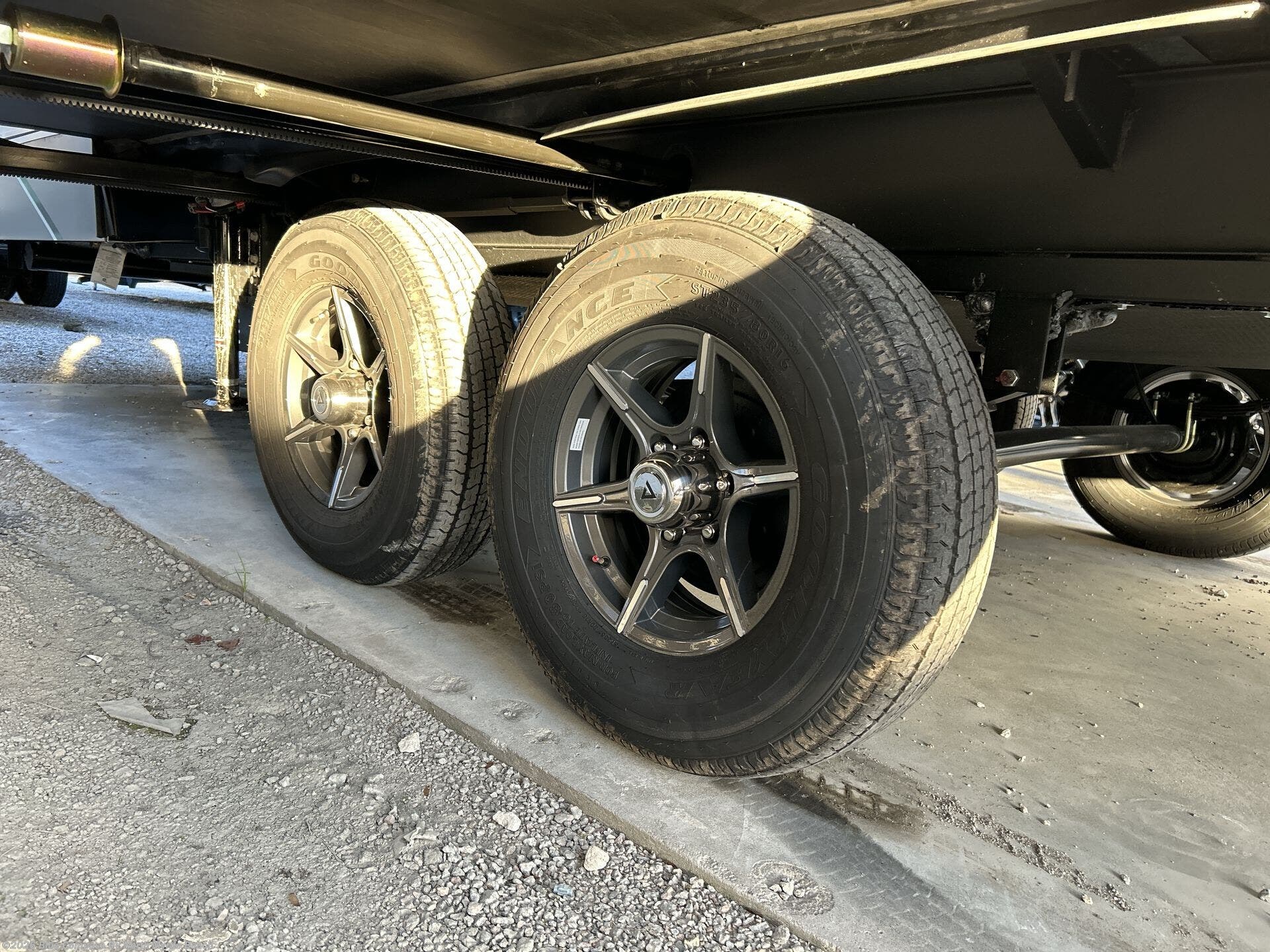 A benchmark chassis creates a space saver upper deck with each one of these Avenue All-Access fifth wheels by Alliance RV! The 101 in. wide-body construction gives you more room to walk around and the flush slide out floors throughout prevent any tripping. There are composite sidewalls inside and out, and a seamless fully walkable PVC roof for extreme durability and zero maintenance. You are sure to love no carpet throughout making each Avenue All-Access easy to clean and allergen free, not to mention pet friendly. You can maximize your space throughout with innovative storage solutions like the hidden storage behind the TV, inside the end tables, ottoman, and dinette chairs. These units also include the OTG Solar Package with a 200 watt solar panel, 15 amp MPPT charger, multiple outlets, and more to keep you powered up!