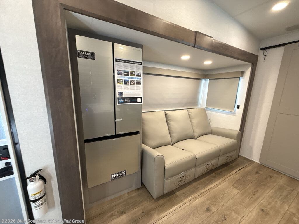 A benchmark chassis creates a space saver upper deck with each one of these Avenue All-Access fifth wheels by Alliance RV! The 101 in. wide-body construction gives you more room to walk around and the flush slide out floors throughout prevent any tripping. There are composite sidewalls inside and out, and a seamless fully walkable PVC roof for extreme durability and zero maintenance. You are sure to love no carpet throughout making each Avenue All-Access easy to clean and allergen free, not to mention pet friendly. You can maximize your space throughout with innovative storage solutions like the hidden storage behind the TV, inside the end tables, ottoman, and dinette chairs. These units also include the OTG Solar Package with a 200 watt solar panel, 15 amp MPPT charger, multiple outlets, and more to keep you powered up!