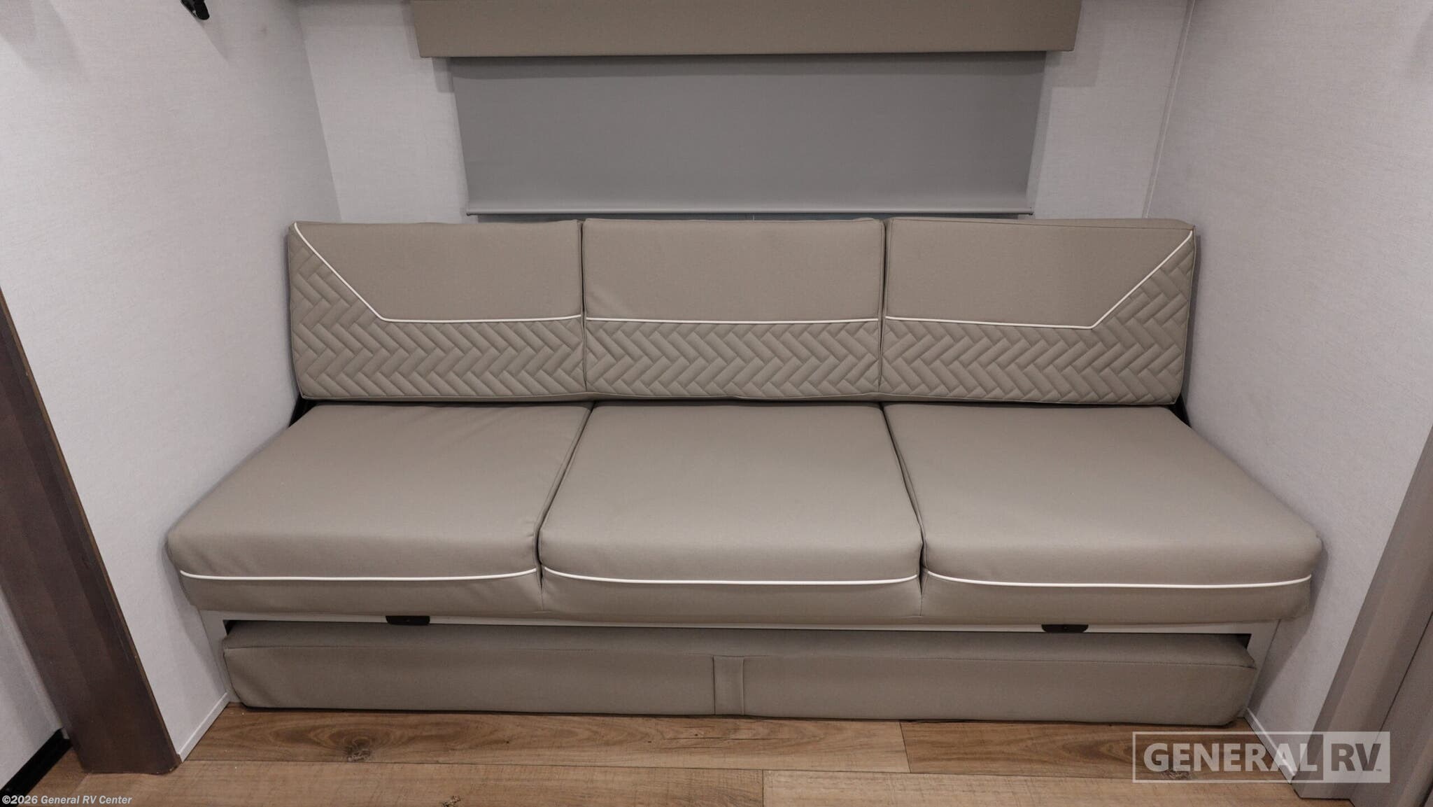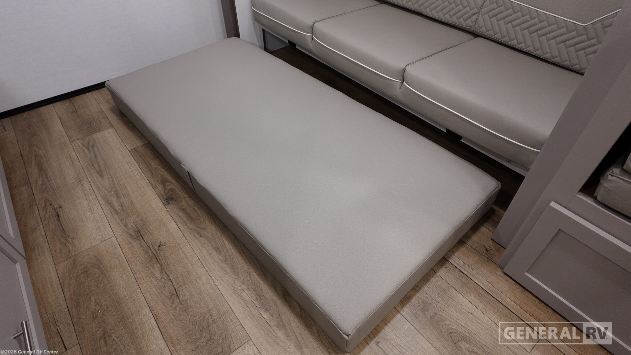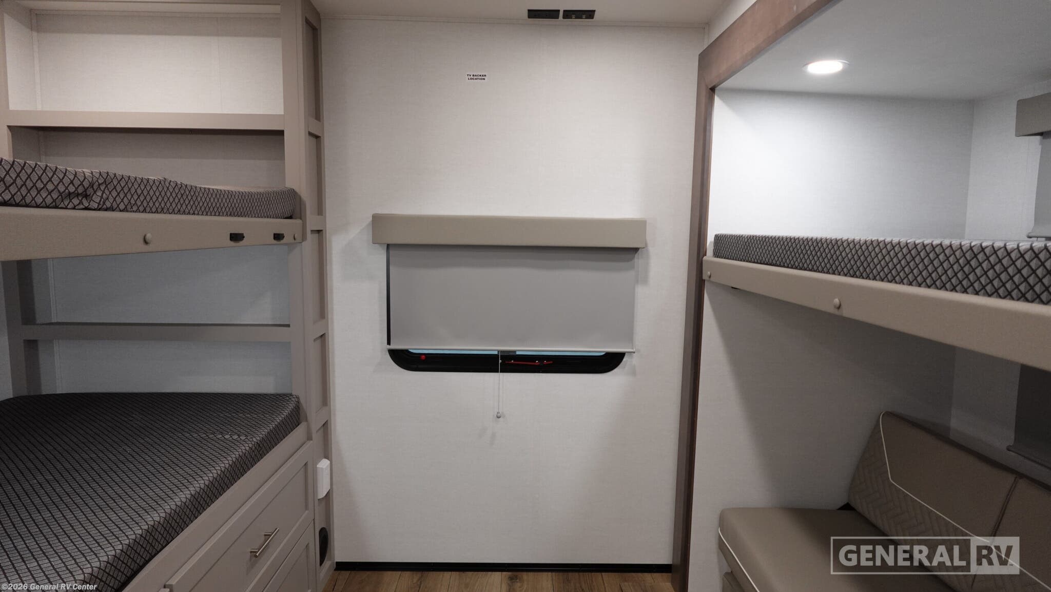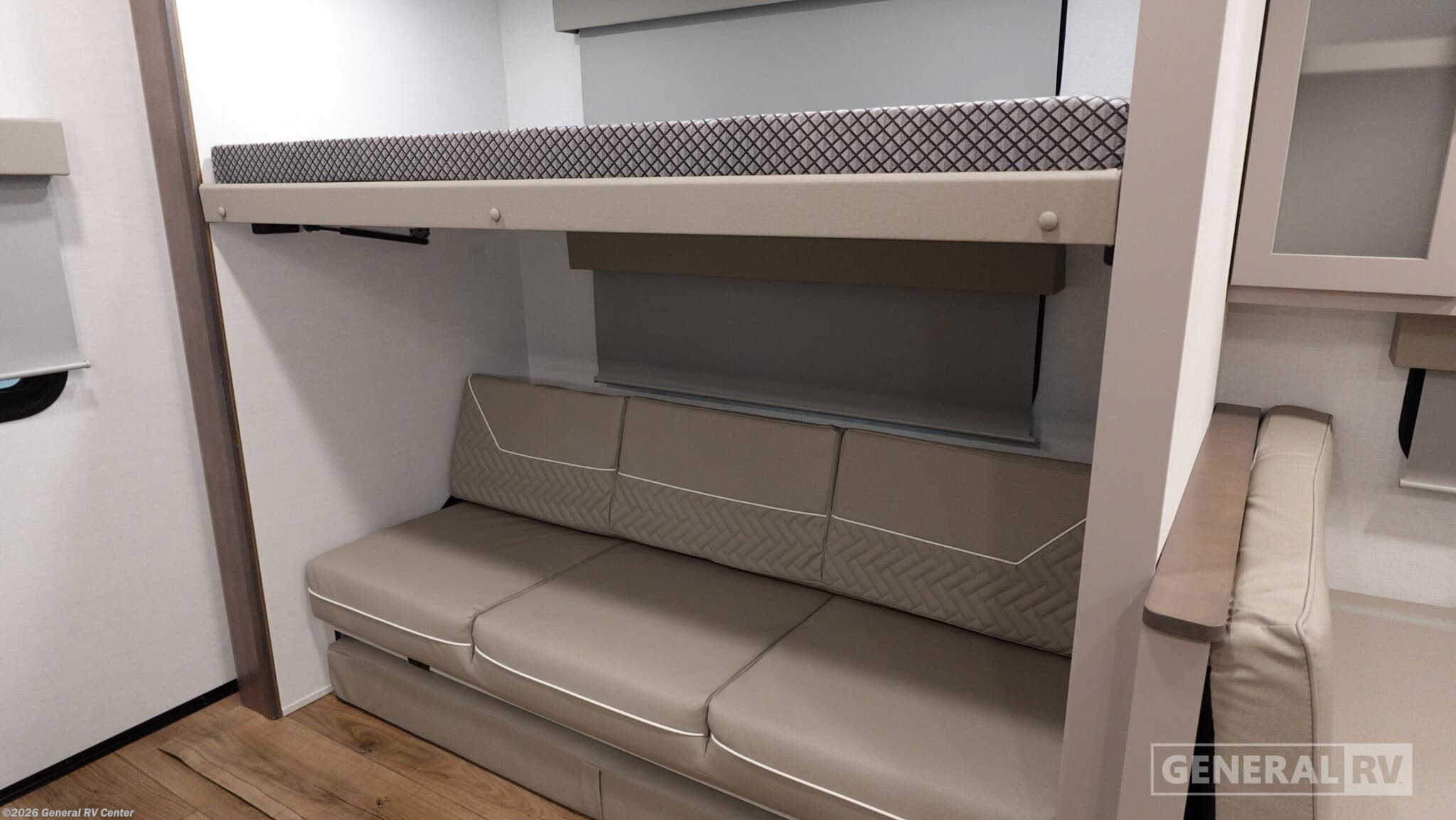 Alliance RV Avenue All-Access fifth wheel 30BH highlights: Rear Bunkhouse U-Shaped Kitchen Two Awnings If you've been searching for a fifth wheel with more sleeping space, this is the one! You will find an Olympic queen bed in the front private bedroom, along with a wardrobe with washer and dryer prep and overhead storage for your things. Your guests can take the rear bunkhouse that includes 40" x 72" bunks across from a slide out with a flip-up bunk and cube sofa below. Everyone can meet in the middle living area and kitchen to relax on the sofa that is in direct view of the 50" Class HDTV. There is also a booth dinette table here to dine together. If the weather is nice, you may just find yourselves outdoors since there are two awnings and an exterior griddle! A benchmark chassis creates a space saver upper deck with each one of these Avenue All-Access fifth wheels by Alliance RV! The 101 in. wide-body construction gives you more room to walk around and the flush slide out floors throughout prevent any tripping. There are composite sidewalls inside and out, and a seamless fully walkable PVC roof for extreme durability and zero maintenance. You are sure to love no carpet throughout making each Avenue All-Access easy to clean and allergen free, not to mention pet friendly. You can maximize your space throughout with innovative storage solutions like the hidden storage behind the TV, inside the end tables, ottoman, and dinette chairs. These units also include the OTG Solar Package with a 200 watt solar panel, 15 amp MPPT charger, multiple outlets, and more to keep you powered up!