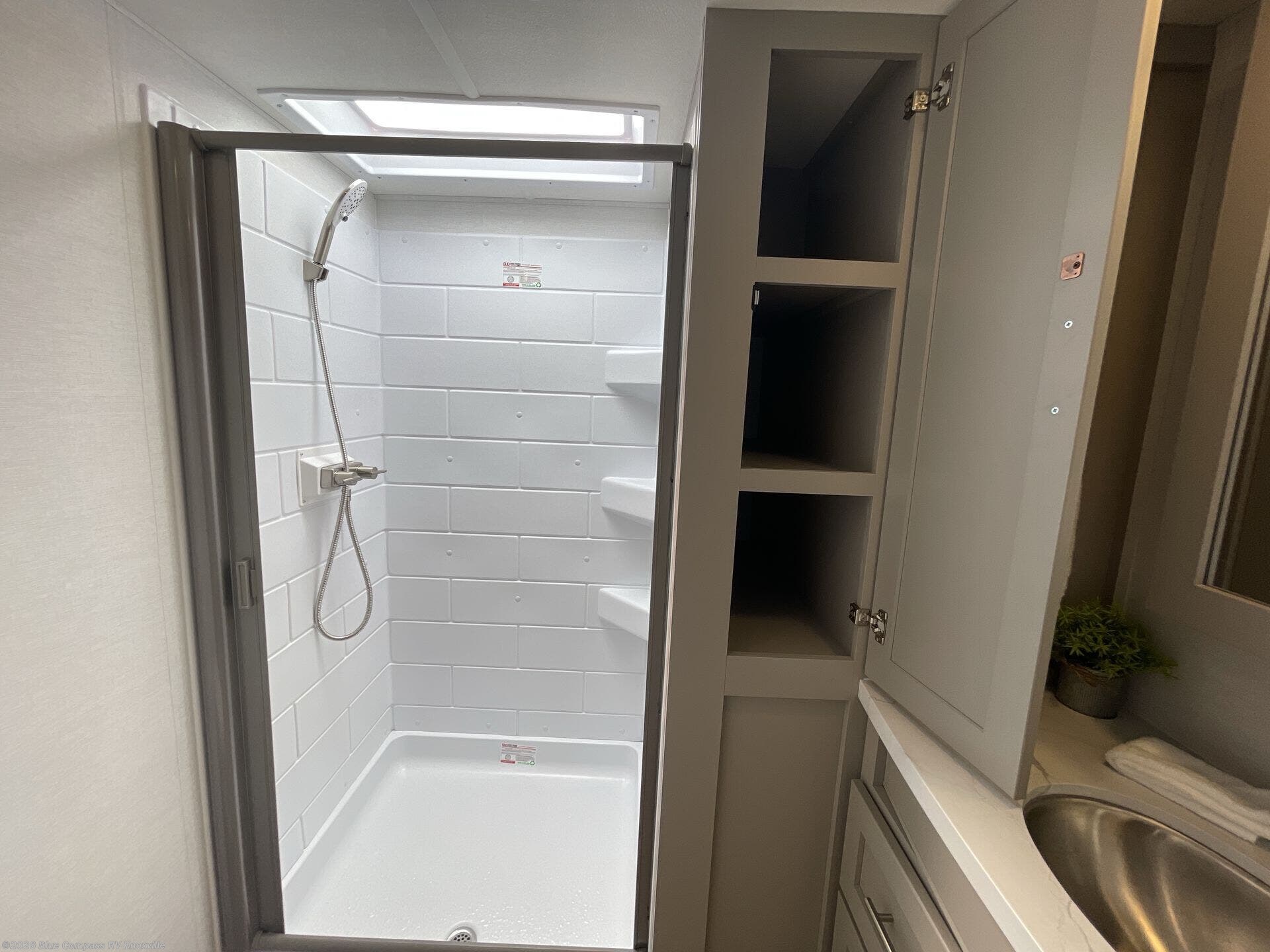 A benchmark chassis creates a space saver upper deck with each one of these Avenue All-Access fifth wheels by Alliance RV! The 101 in. wide-body construction gives you more room to walk around and the flush slide out floors throughout prevent any tripping. There are composite sidewalls inside and out, and a seamless fully walkable PVC roof for extreme durability and zero maintenance. You are sure to love no carpet throughout making each Avenue All-Access easy to clean and allergen free, not to mention pet friendly. You can maximize your space throughout with innovative storage solutions like the hidden storage behind the TV, inside the end tables, ottoman, and dinette chairs. These units also include the OTG Solar Package with a 200 watt solar panel, 15 amp MPPT charger, multiple outlets, and more to keep you powered up!