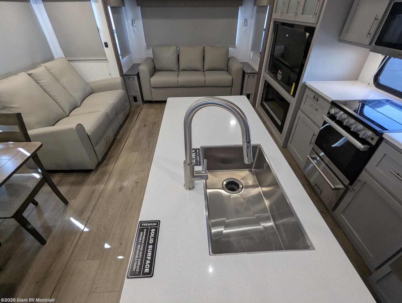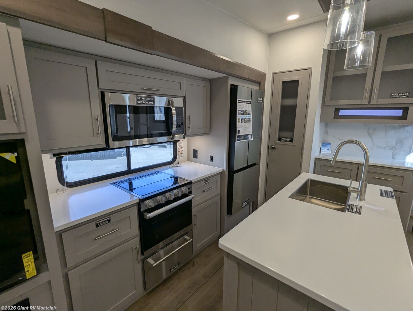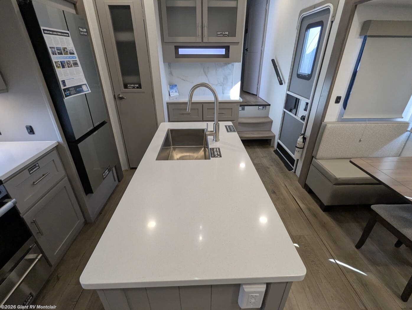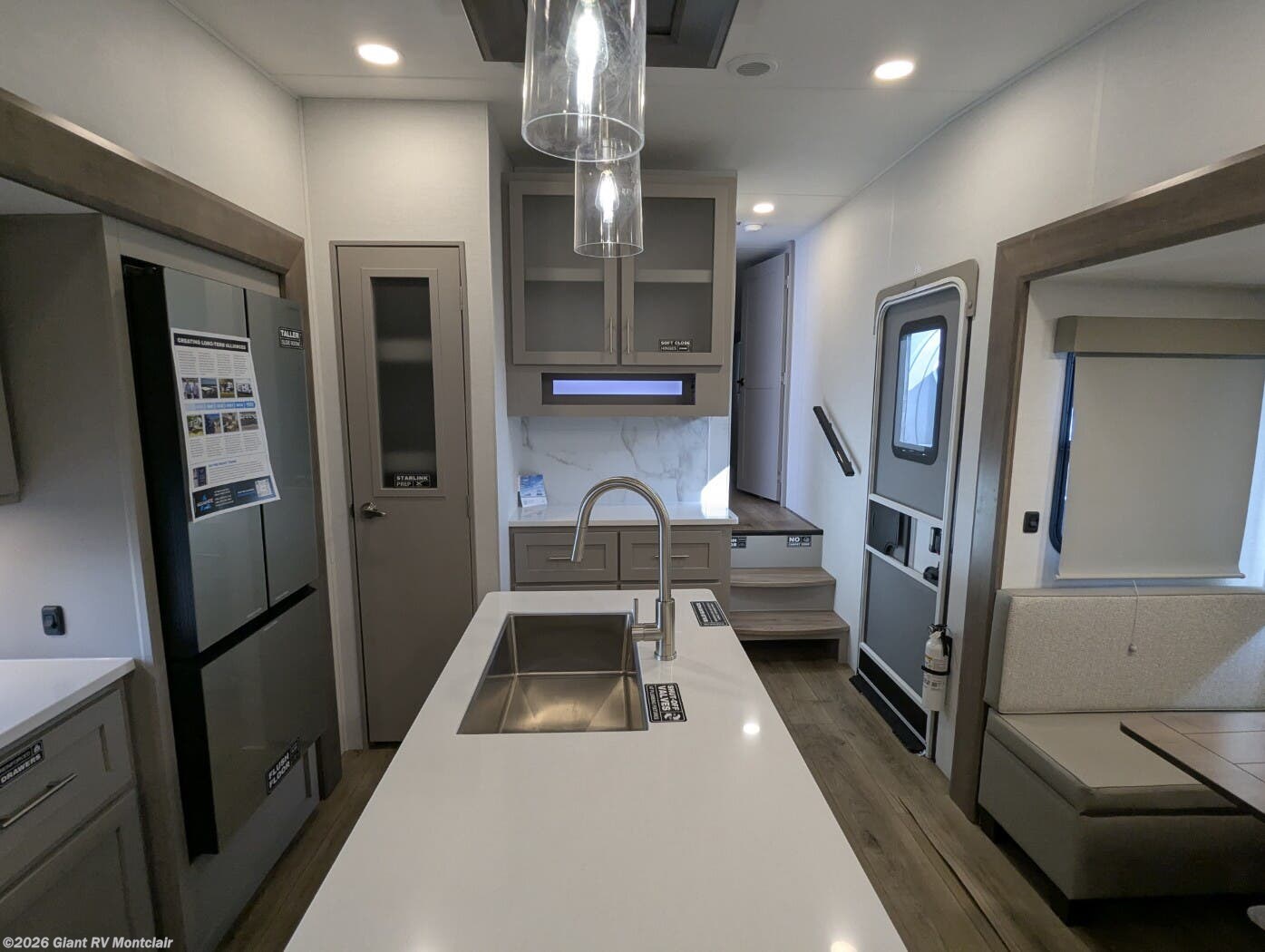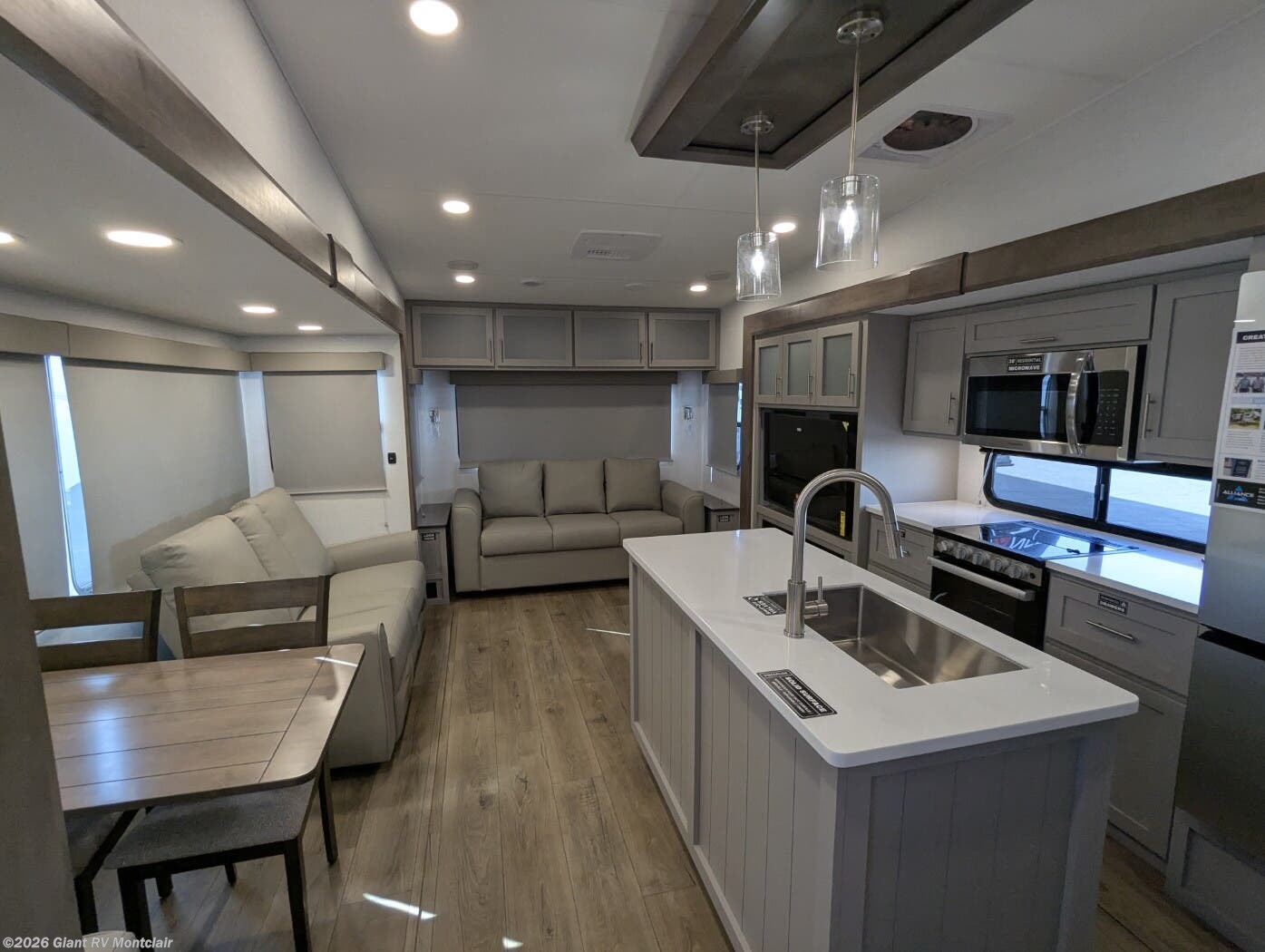 - Kitchen Island & Modern Galley with 10 cu. ft. 12 V refrigerator and abundant storage for full-scale meal prep.