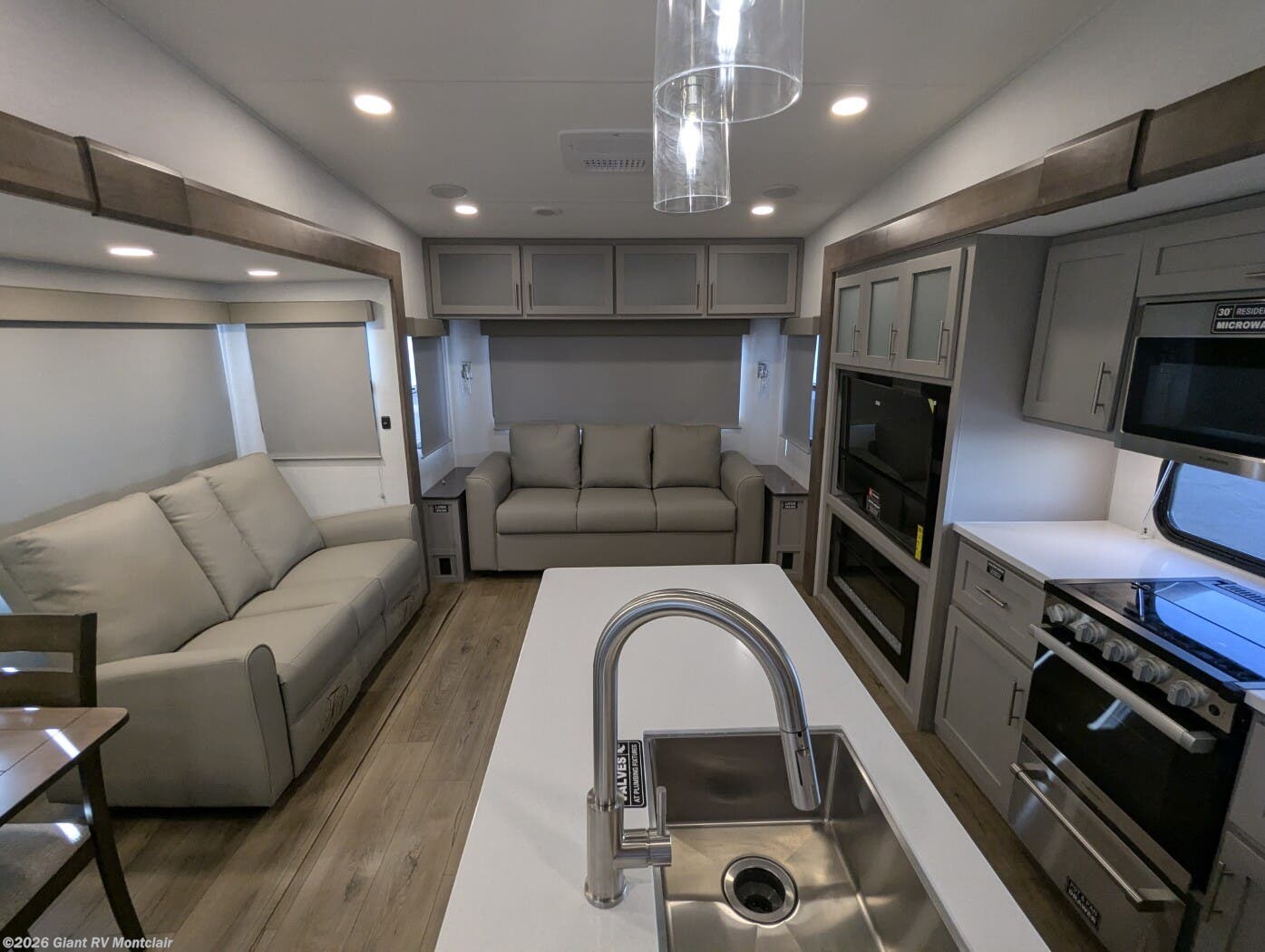 - Rear Living Layout with dual recliner theater seating and sleeper sofa—ideal for relaxing or entertaining.