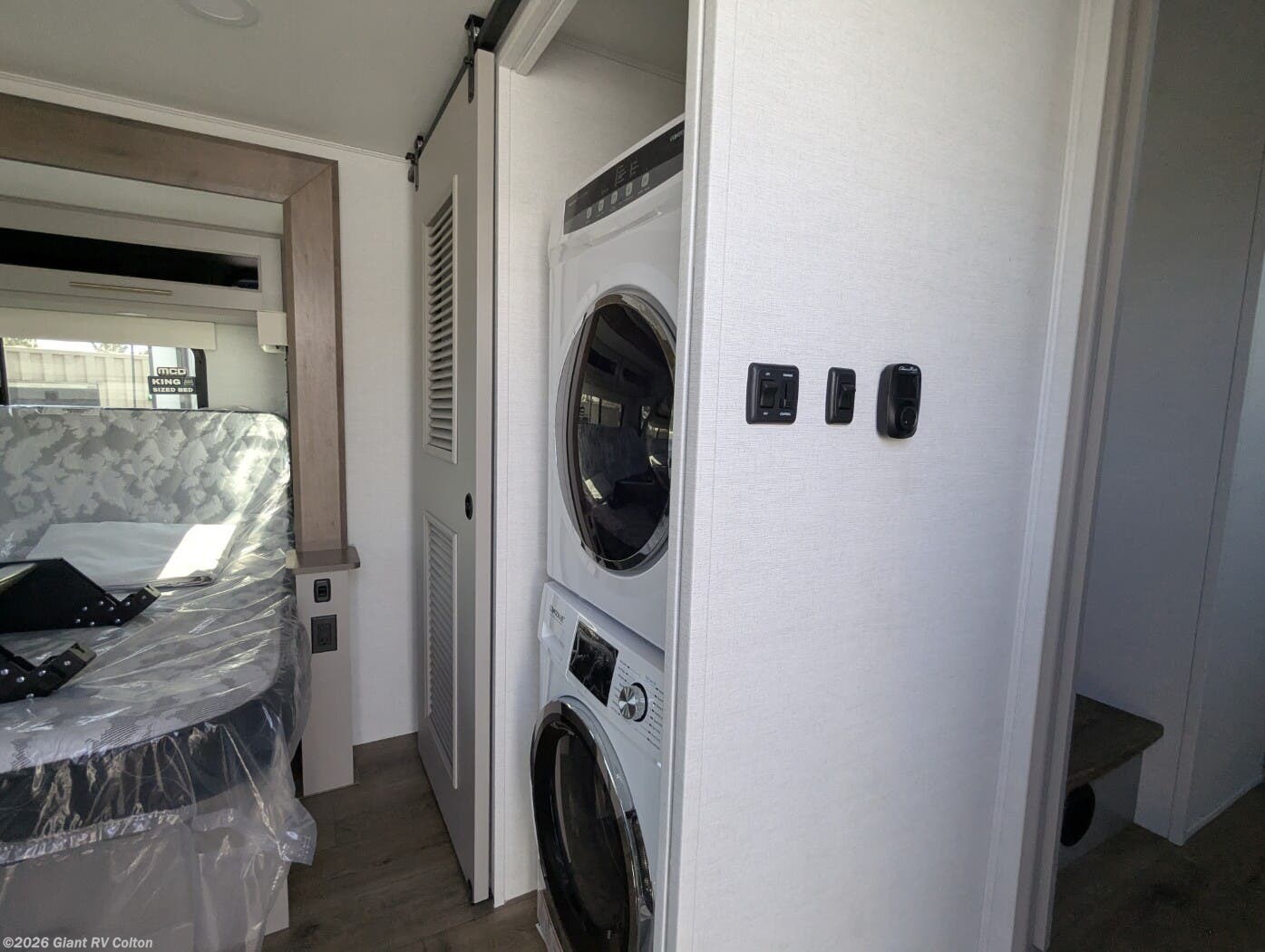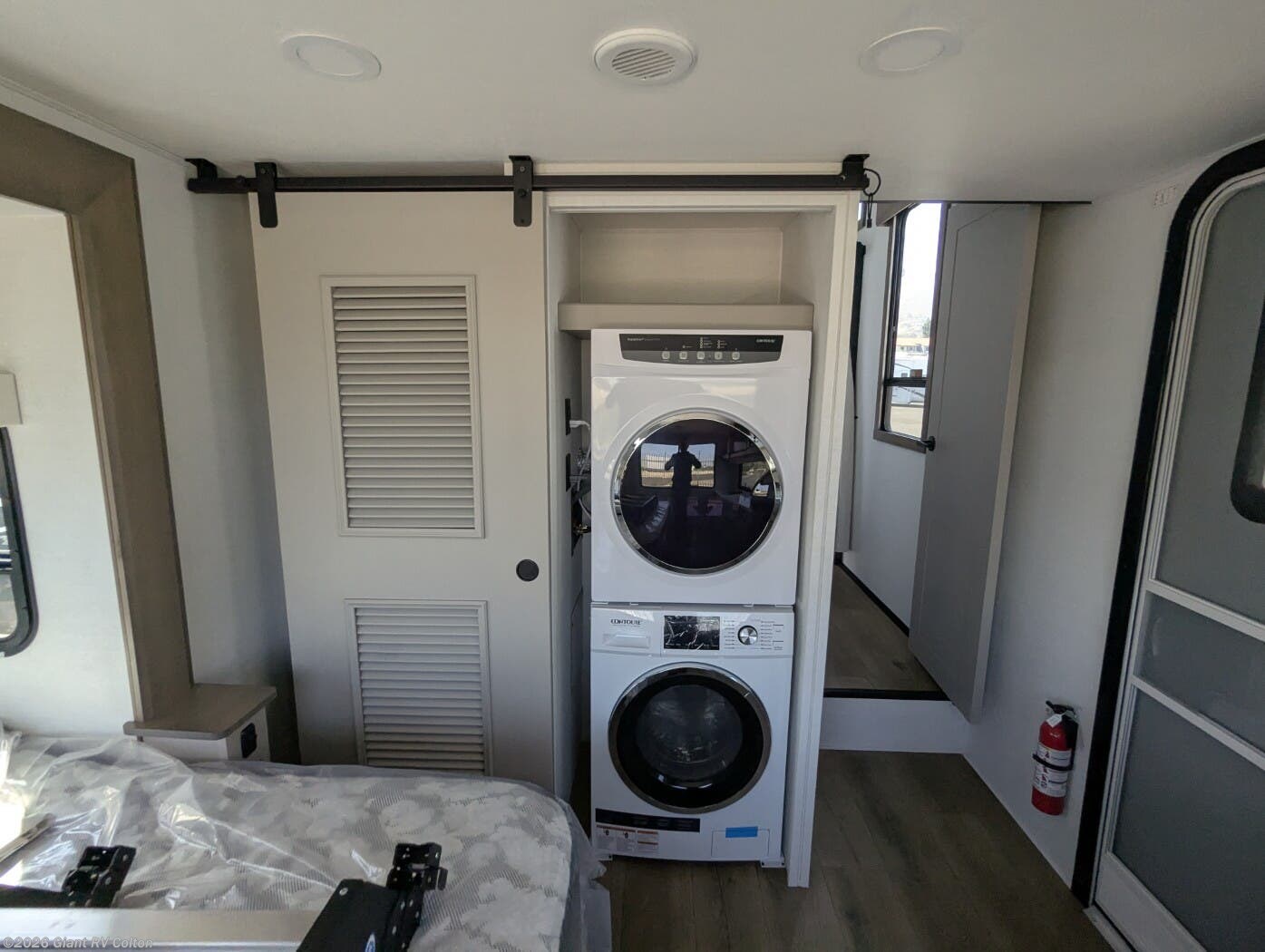 - Adventure-Ready Features: Includes dual fireplaces, a 60,000 BTU furnace, and stackable washer/dryer for year-round camping comfort.