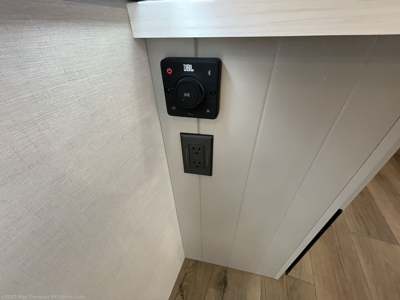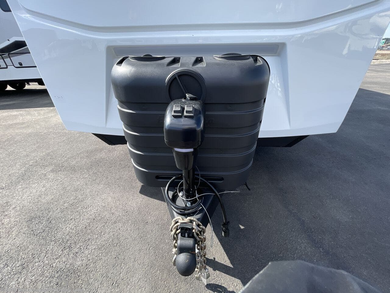 With any Benchmark destination trailer by Alliance RV, you will enjoy luxury features at every turn! The high gloss fiberglass exterior is ultra sleek, and the Azdel composite fiberglass sidewalls add durability so you can camp for years to come. You'll also find a residential exterior garden hose connection outside, along with a powder coated aluminum rear ladder, and an auxiliary LP tank hook up if you want to bring your grill along. Head inside to find hardwood cabinetry, solid surface countertops throughout, oversized windows in all rooms, and MCD roller shades throughout. The 45,000 BTU A/C and 60,000 BTU furnace will keep you comfortable year around, and there is a stackable washer and dryer to make full-time RV living easier than ever!