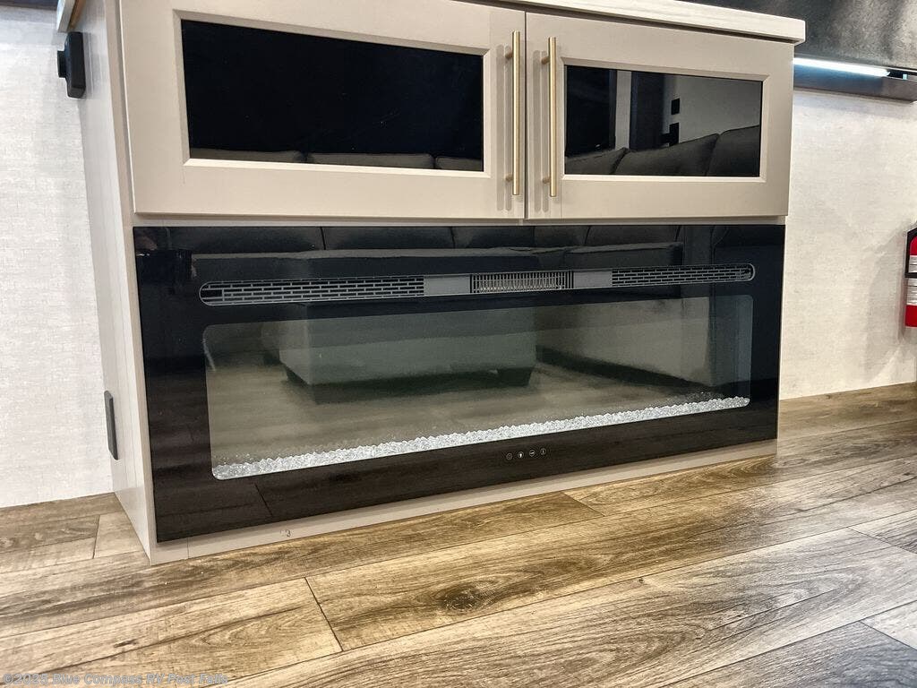 This destination trailer is perfect for a big crowd since it has one Power Tilting king bed, three mattress and an L- shape sofa. Experience the in-home feeling with the amazing kitchen and living room, furnished with a Kitchen island, L- shape sofa and a residential 110 V fridge. Also, you can sense the extreme coziness thanks to the dual fire places and get 24/7 entertainment due to the four TVs along the trailer. Plenty of place can be found in the front and rear loft bedrooms with three wardrobes in total. Lastly the two full bathrooms will allow you to comfortably take a shower after a long day.