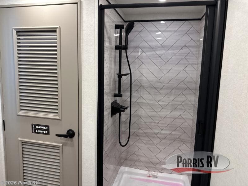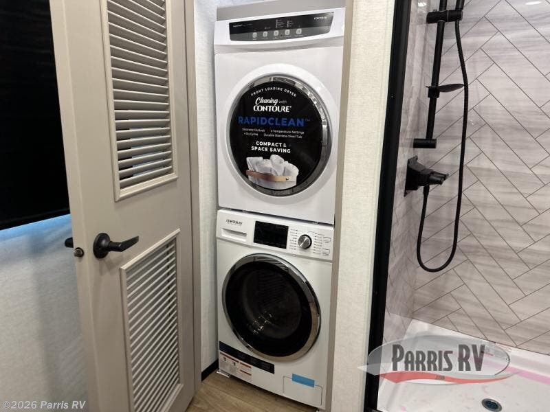 With any Benchmark destination trailer by Alliance RV, you will enjoy luxury features at every turn! The high gloss fiberglass exterior is ultra sleek, and the Azdel composite fiberglass sidewalls add durability so you can camp for years to come. You'll also find a residential exterior garden hose connection outside, along with a powder coated aluminum rear ladder, and an auxiliary LP tank hook up if you want to bring your grill along. Head inside to find hardwood cabinetry, solid surface countertops throughout, oversized windows in all rooms, and MCD roller shades throughout. The 45,000 BTU A/C and 60,000 BTU furnace will keep you comfortable year around, and there is a stackable washer and dryer to make full-time RV living easier than ever!