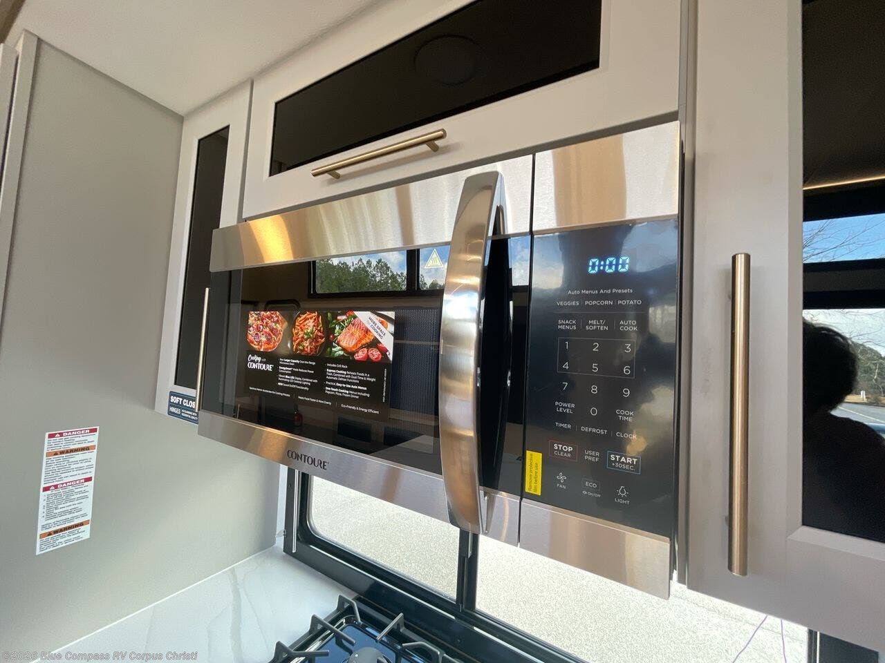 With any Benchmark destination trailer by Alliance RV, you will enjoy luxury features at every turn! The high gloss fiberglass exterior is ultra sleek, and the Azdel composite fiberglass sidewalls add durability so you can camp for years to come. You'll also find a residential exterior garden hose connection outside, along with a powder coated aluminum rear ladder, and an auxiliary LP tank hook up if you want to bring your grill along. Head inside to find hardwood cabinetry, solid surface countertops throughout, oversized windows in all rooms, and MCD roller shades throughout. The 45,000 BTU A/C and 60,000 BTU furnace will keep you comfortable year around, and there is a stackable washer and dryer to make full-time RV living easier than ever!